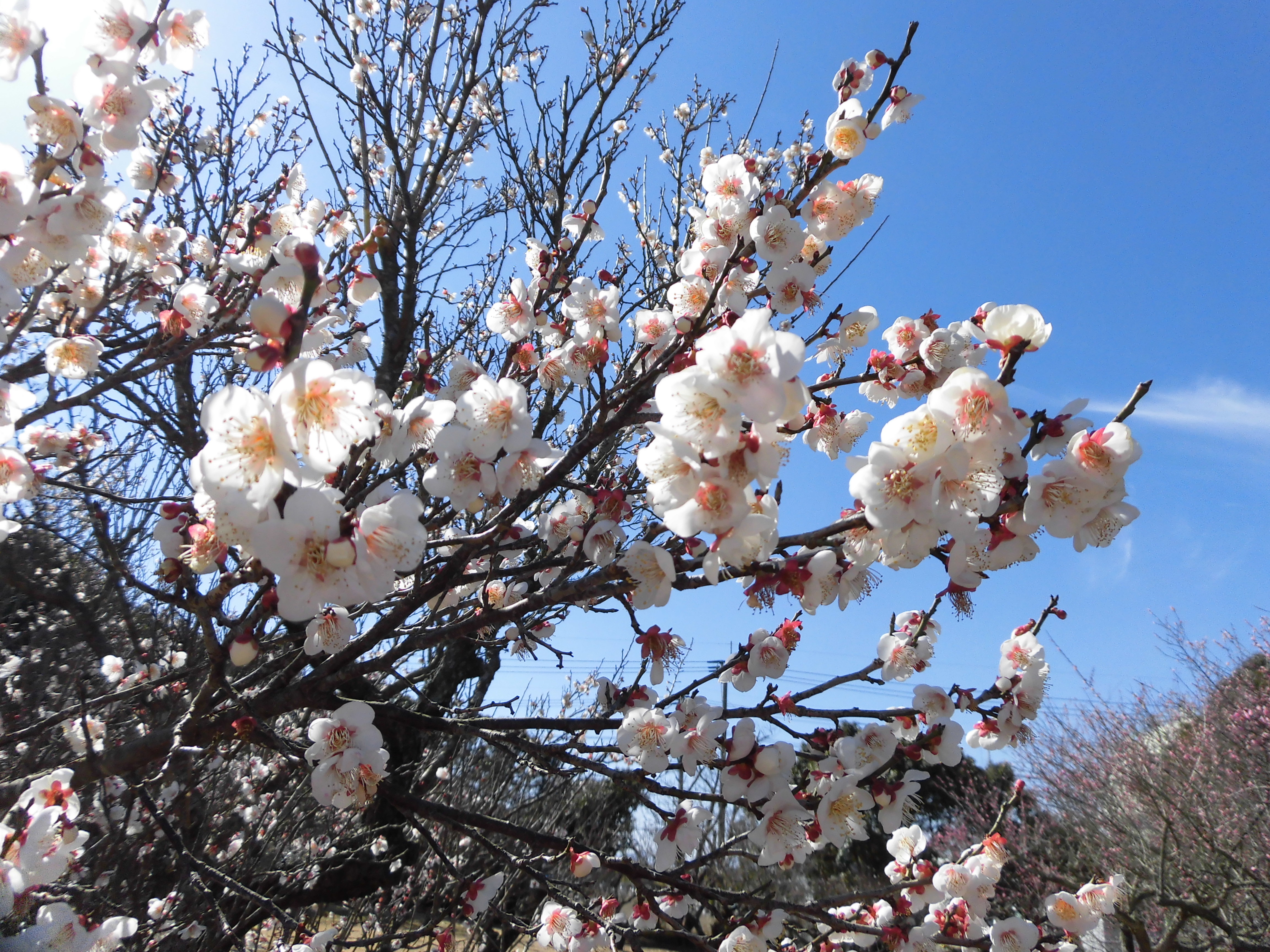 鳥がさえずりピンクや白の梅の花が咲き乱れ気持ちよかったです。