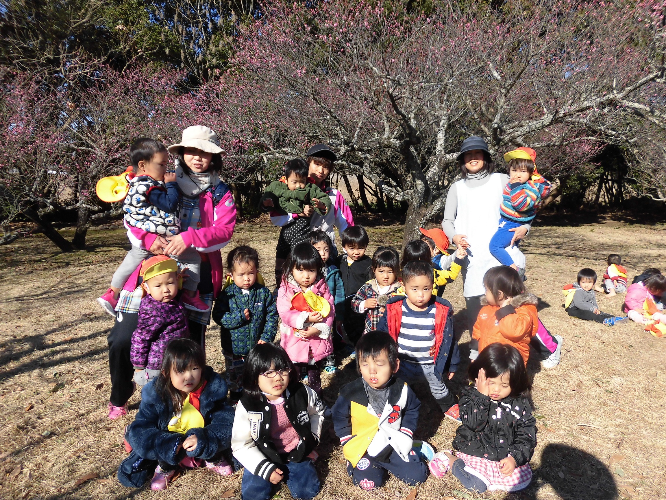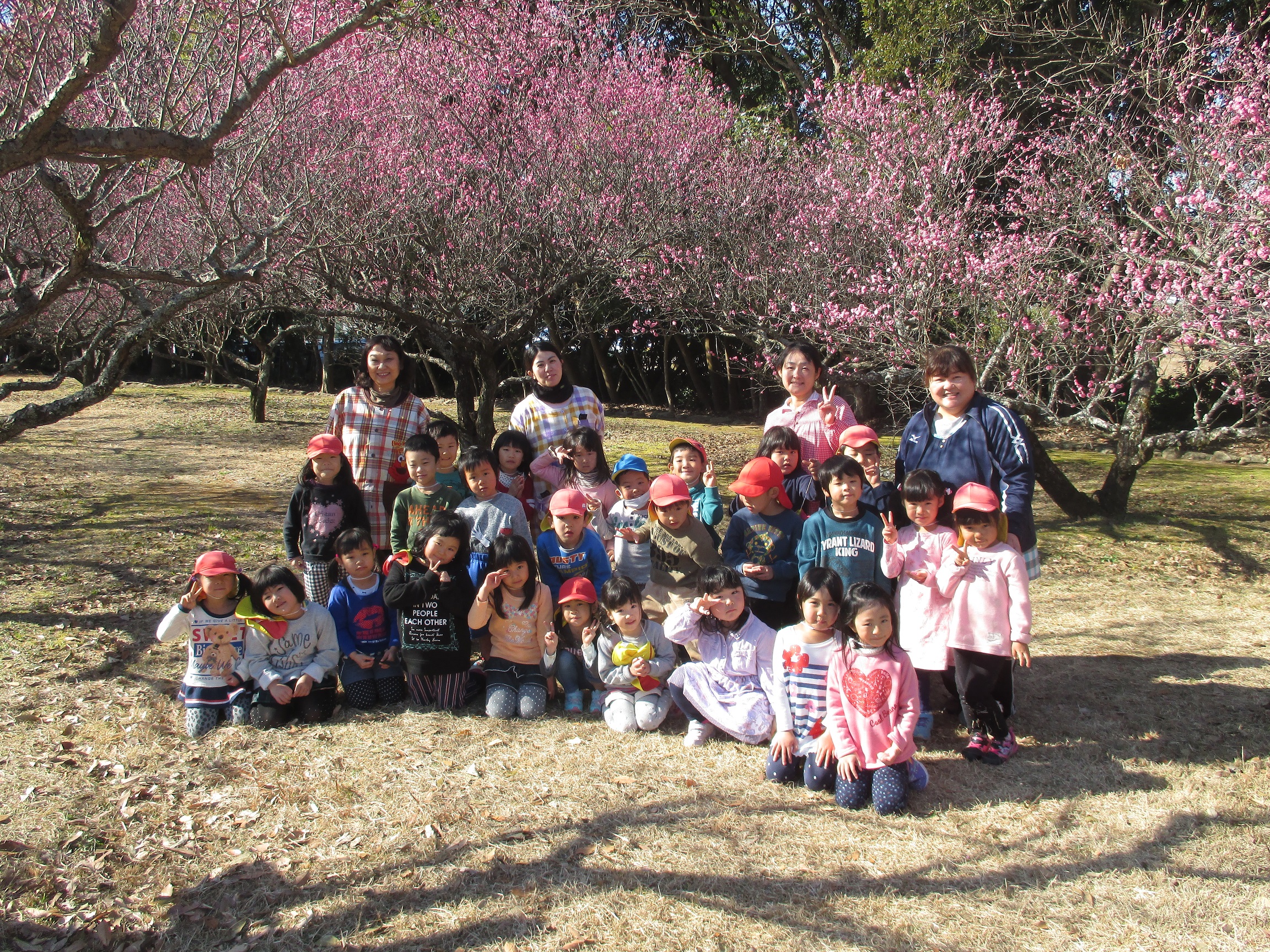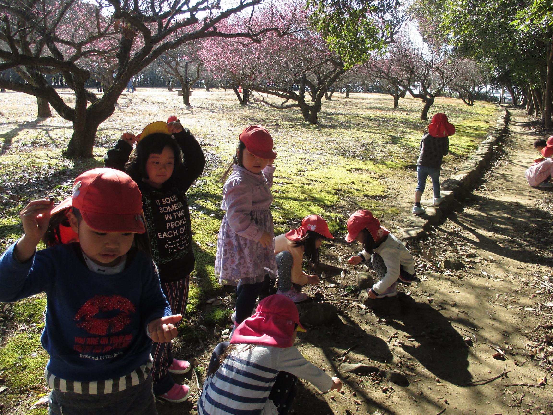 花びらを拾ったり、並んでじゃんけんゲームをして楽しみました。