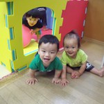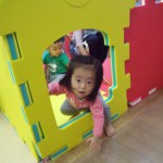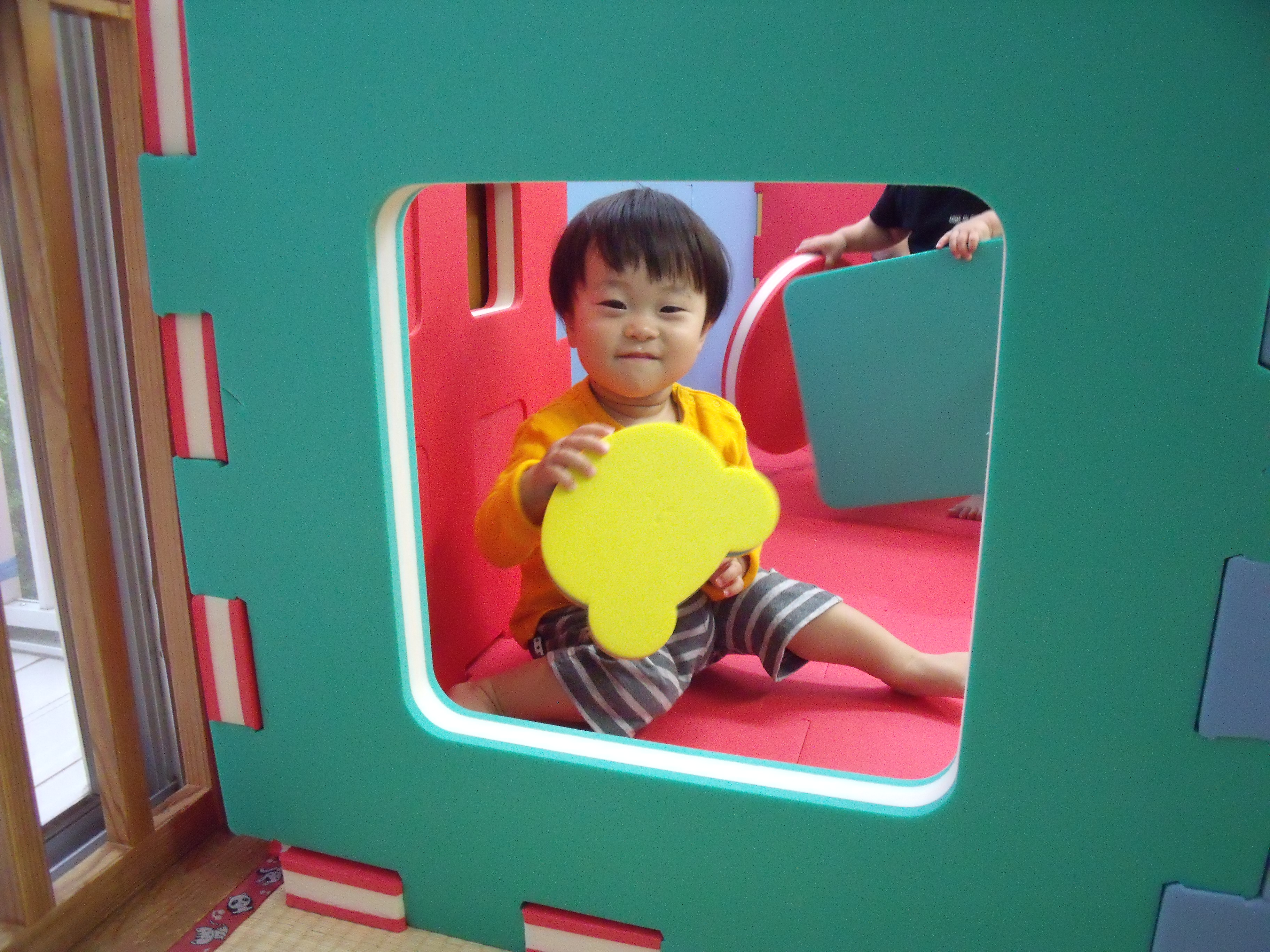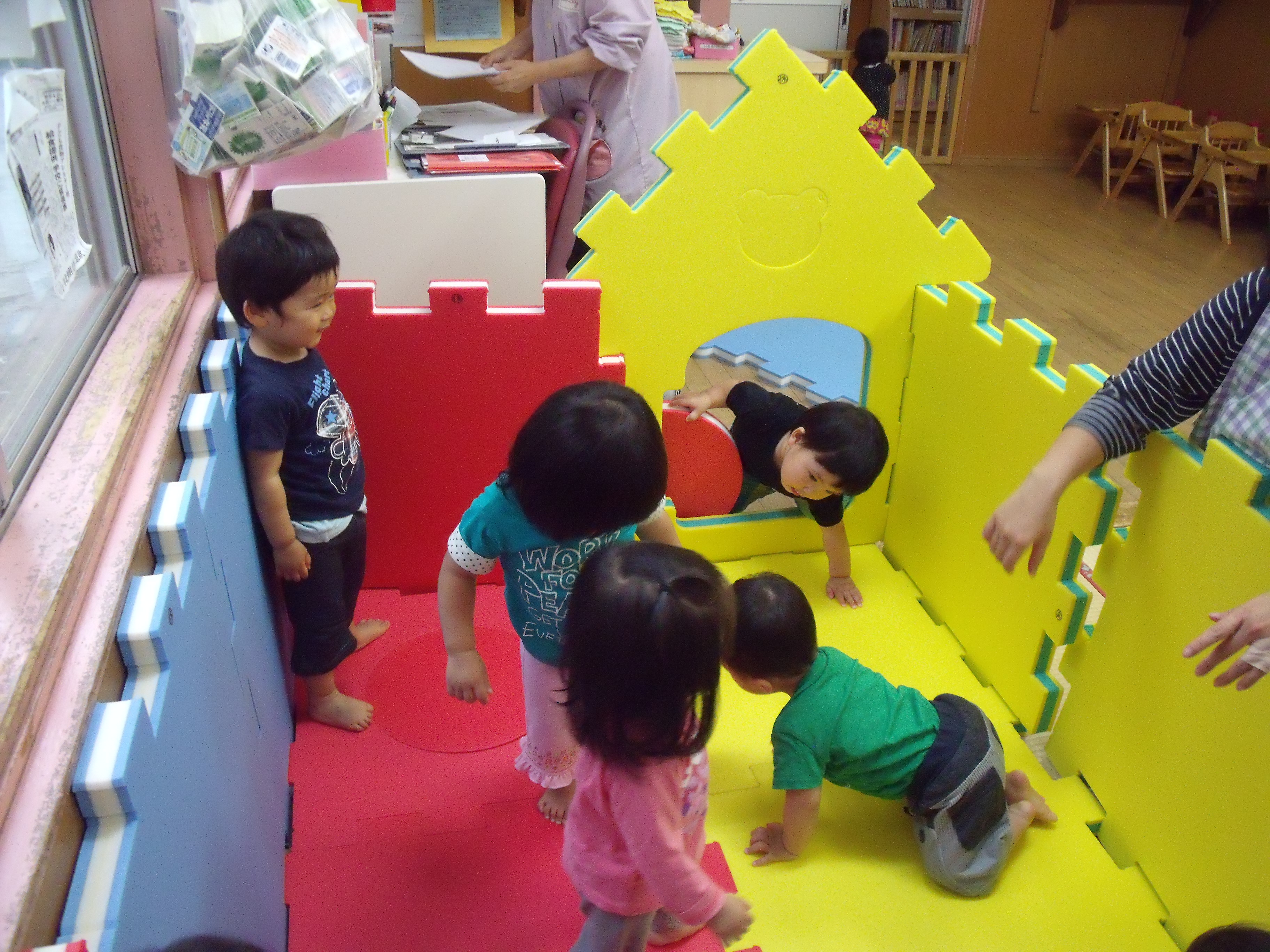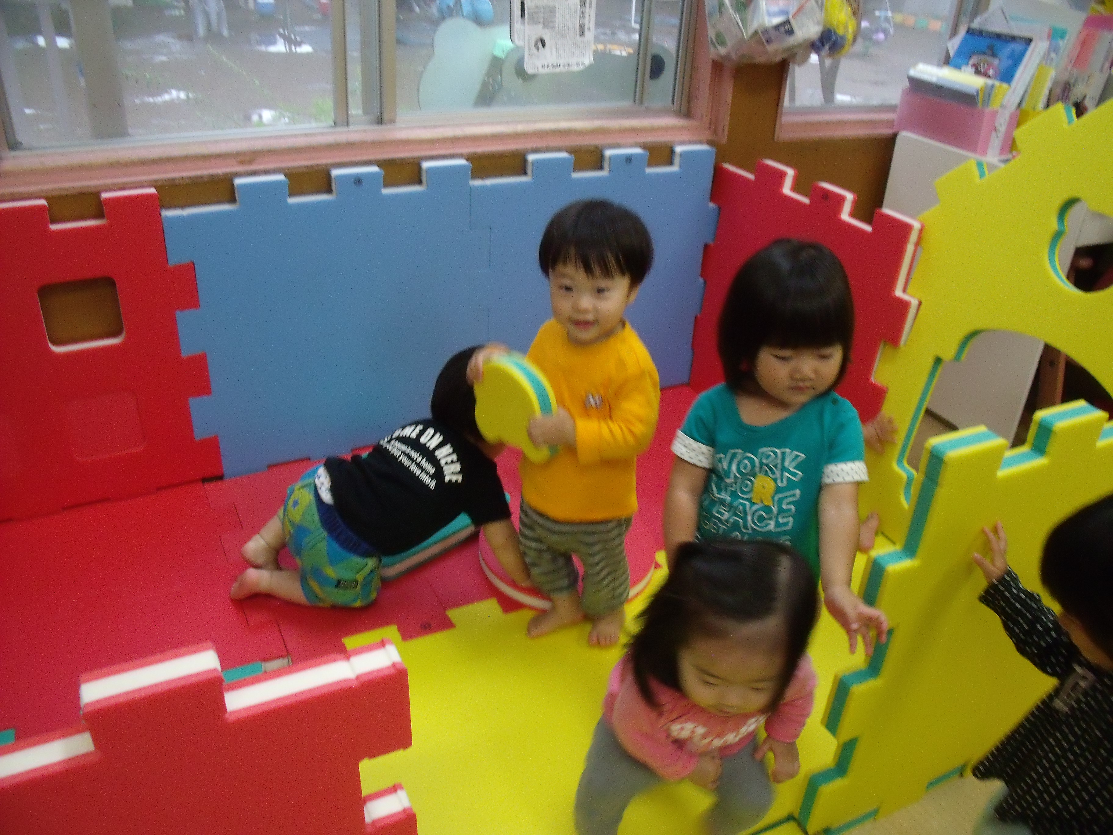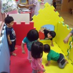 ひよこ組とりす組さんが、大型ソフトブロックを使ってミニハウスをつくりました。