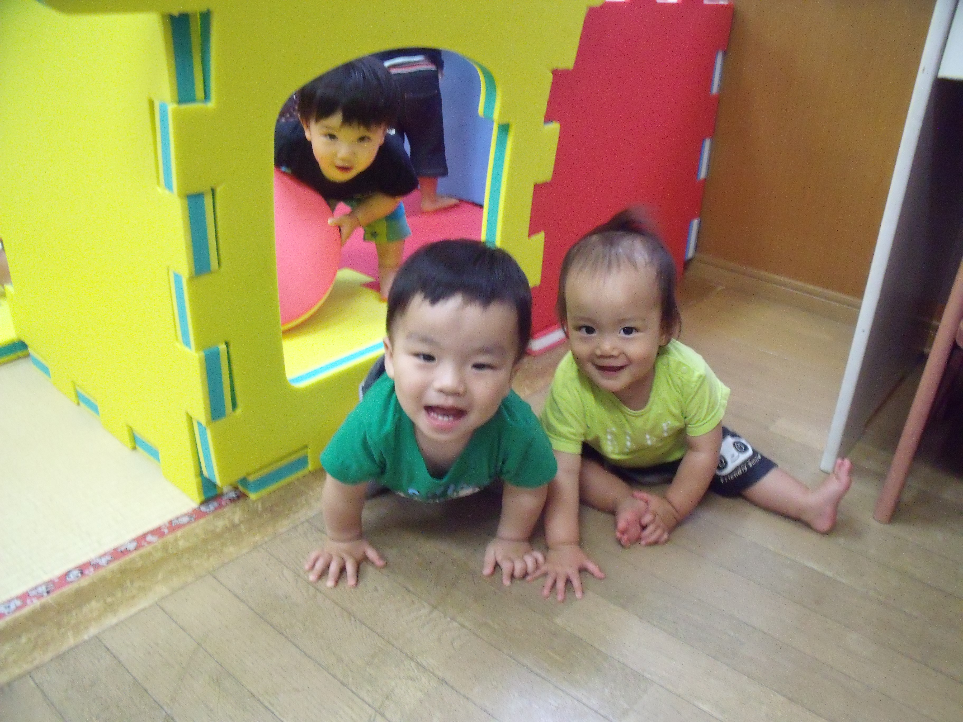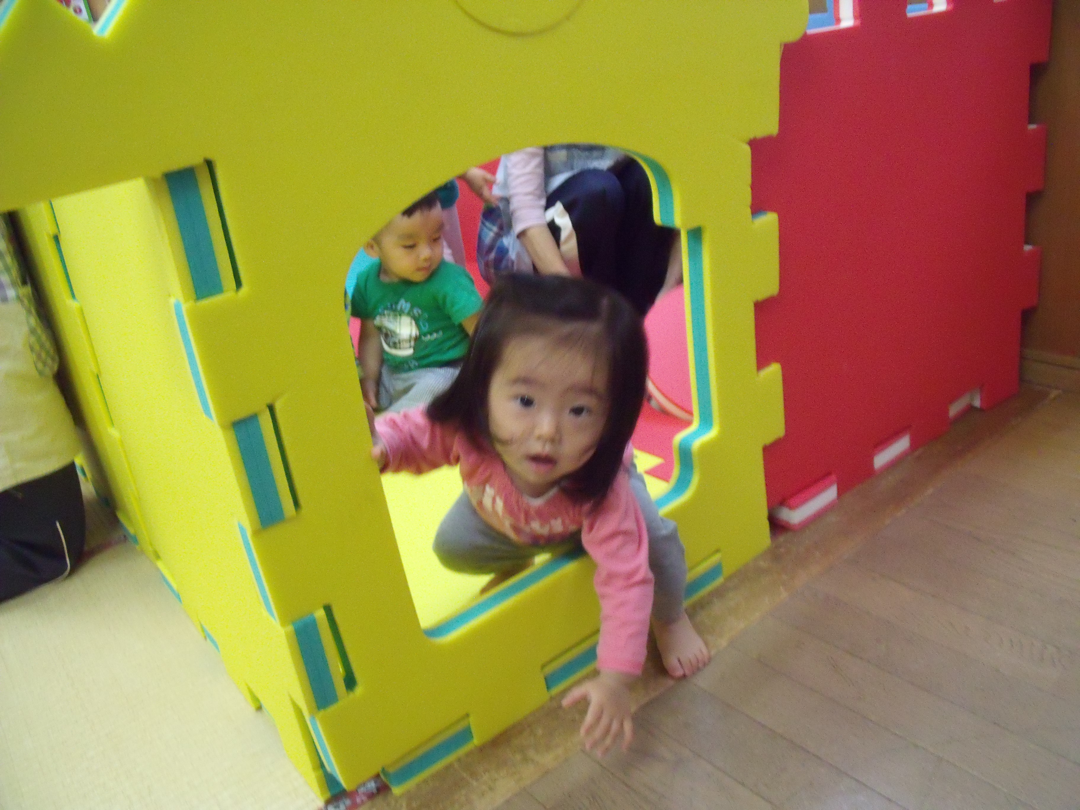 出入り口はここかな? みんなで仲良く遊びました。