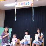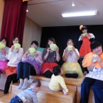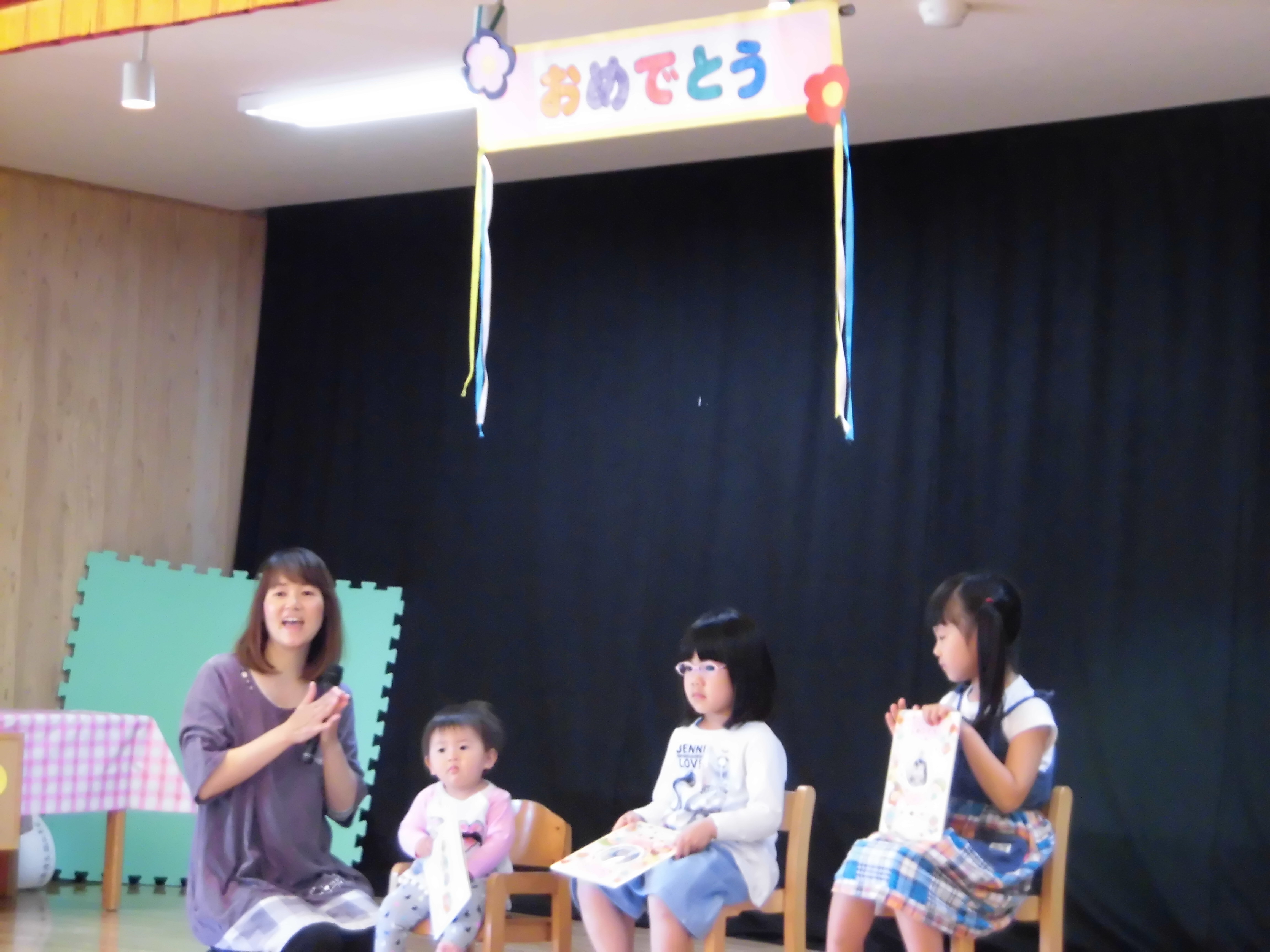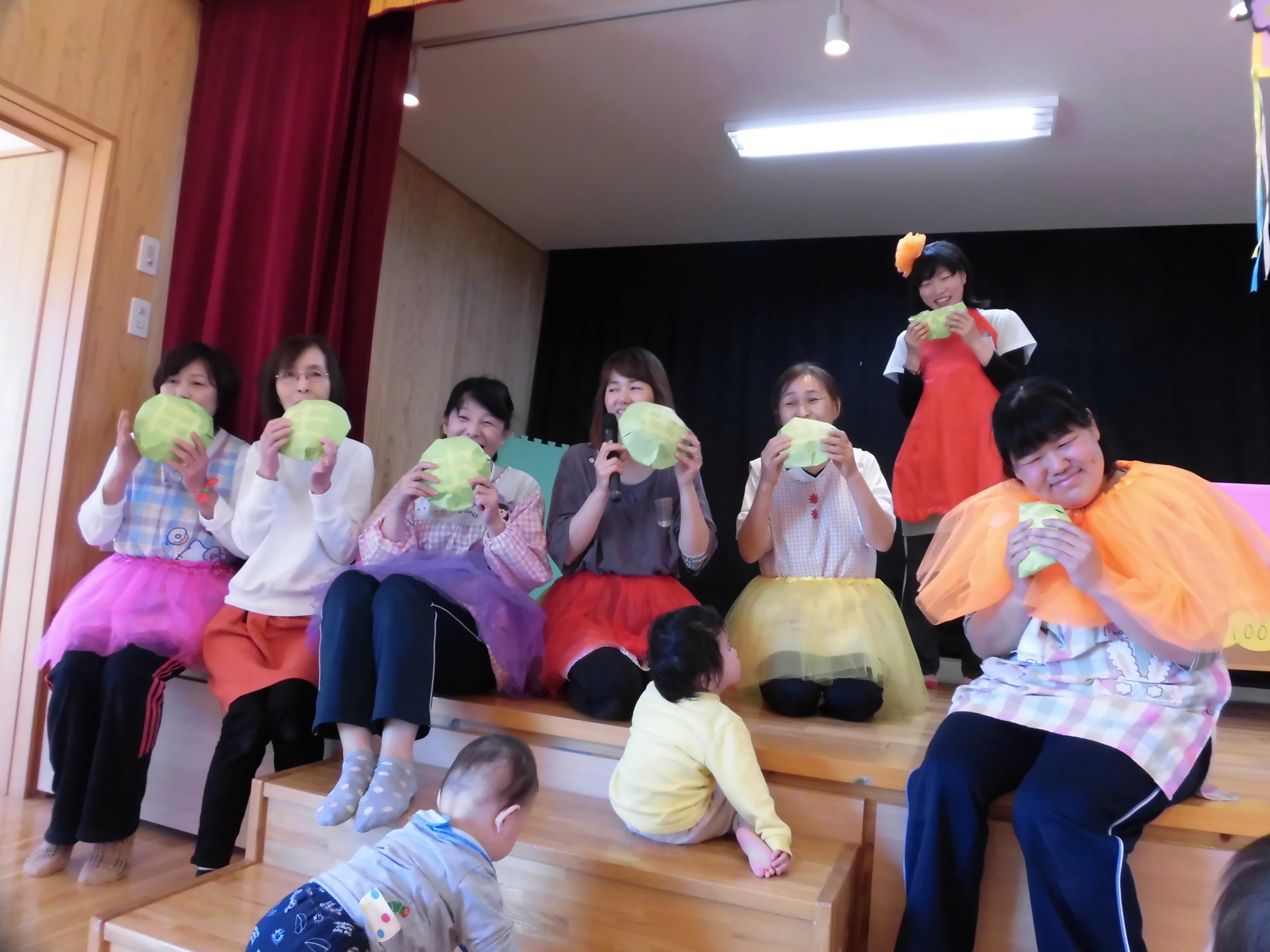 4月の誕生会 4月19日(水) 子どもたちが楽しみにしている誕生会。 職員による劇の出し物は「メロンパン屋さん」でした。劇の中でメロンパンをパクパク食べるシーンがあると、01歳クラスの子どもたちが興味津々でステージに上がってきました。 最後まで集中して見ることができ、誕生会ランチも美味しくいただきました。