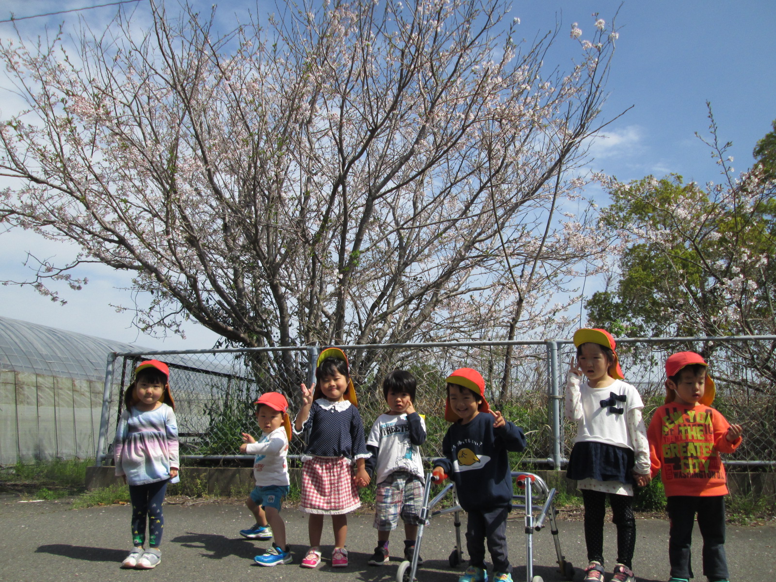 桜が咲きました 4月12日(水) 春の風が吹いて気持ちが良かったのでお花見に行きました。 桜の花の木の下で花びらが、ひらひらと舞い降りてくると子どもたちは嬉しそうに花びらを拾い集め、集めた花びらでごっこ遊びを楽しみました。 フローランテやエントランス広場にもたくさんお花が咲いていますので、お散歩を計画していきたいと思います。