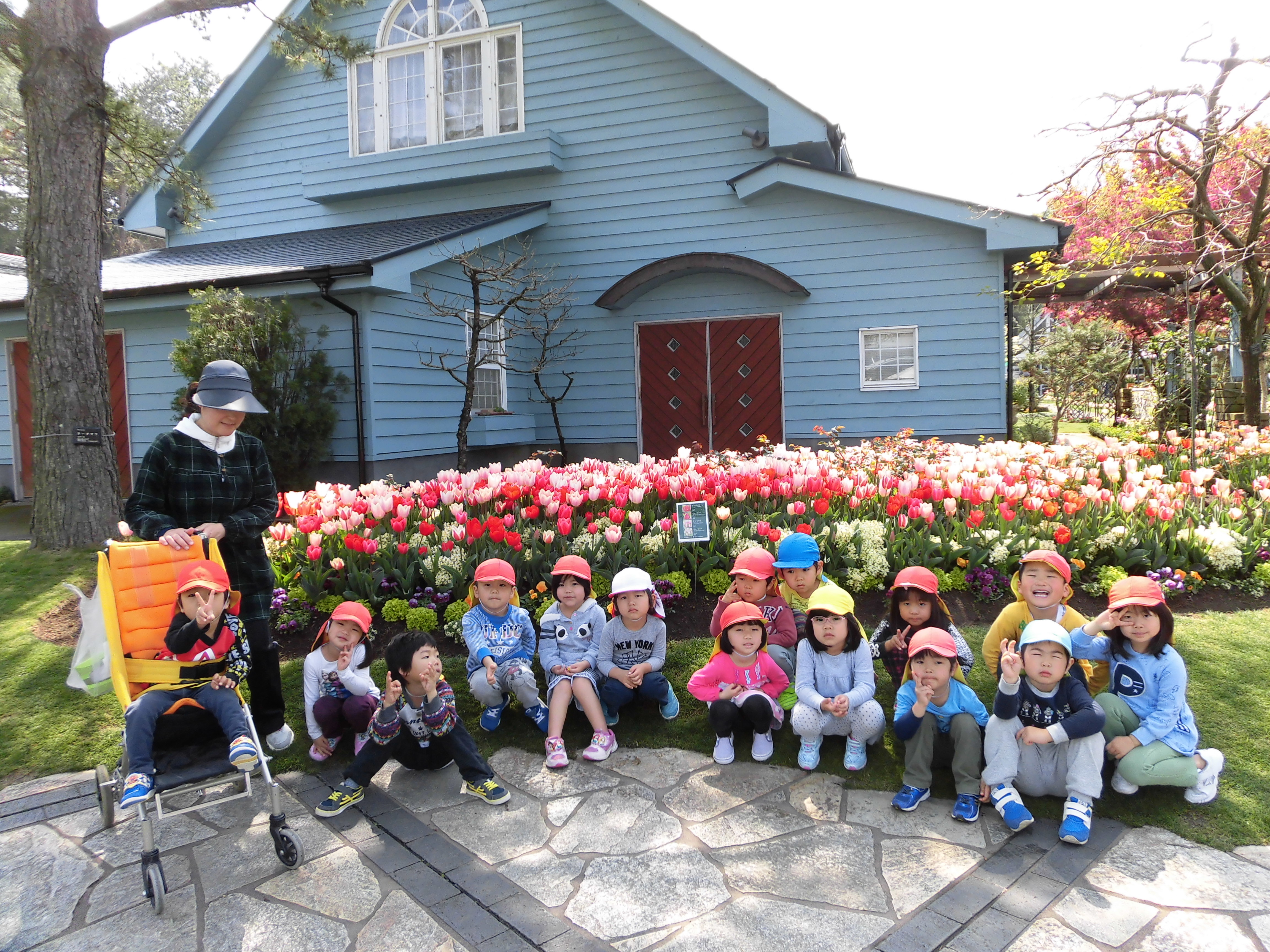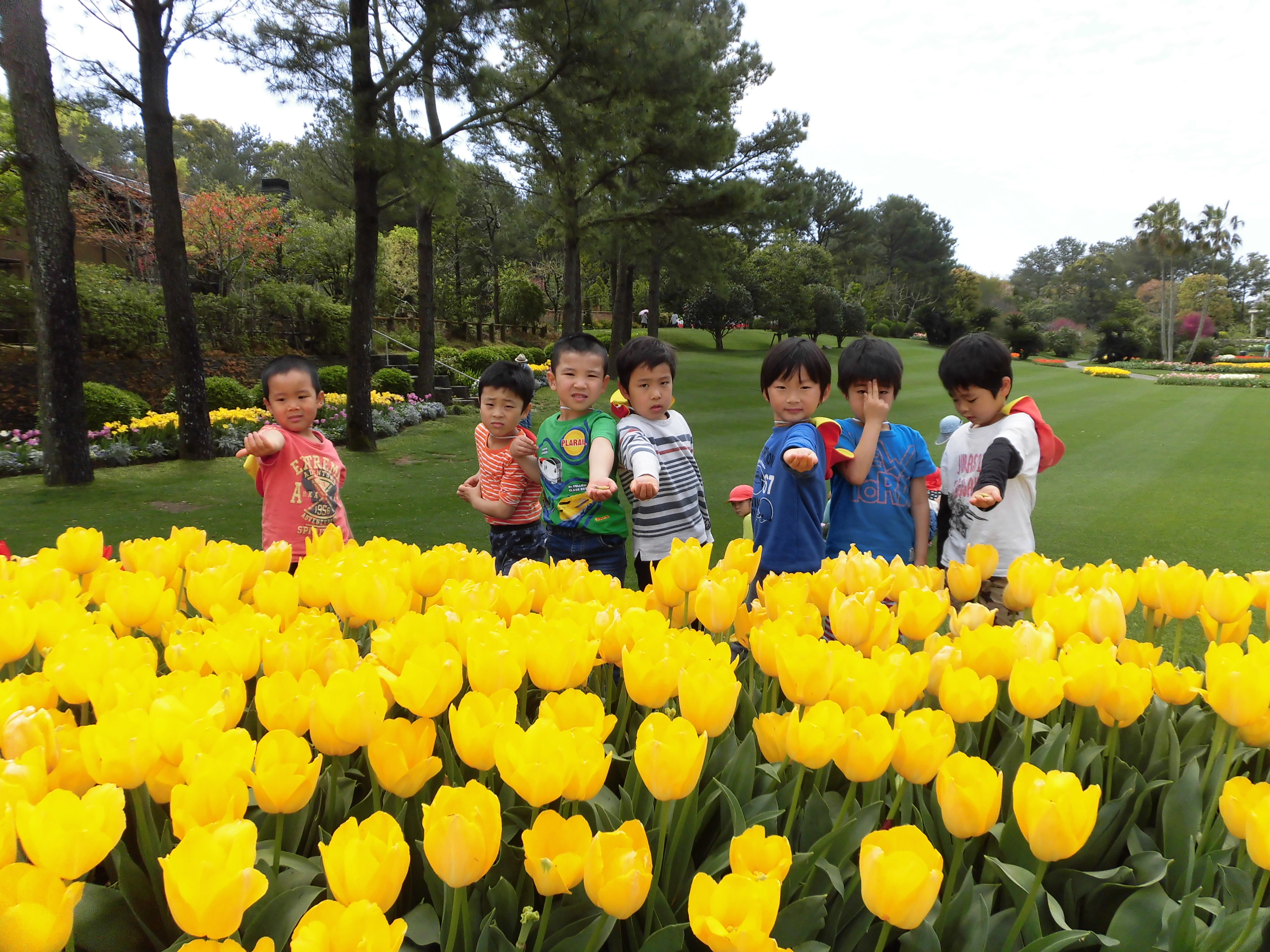 フローランテ 3月30日(木) フローランテに散歩に行きました。 赤や黄色、ピンクのチューリップや桃の花が咲き乱れ、甘い香りが・・・。 3歳以上の子どもたちは、「可愛いお花だね。」「黄色いお花が咲いてるよ。」と友達同士で会話を弾ませながら歩き、1、2歳の子どもたちは、お花を見て指差して「あれあれ。」と笑顔で過ごすことができました。 ゆっくりと楽しく過ごせました。