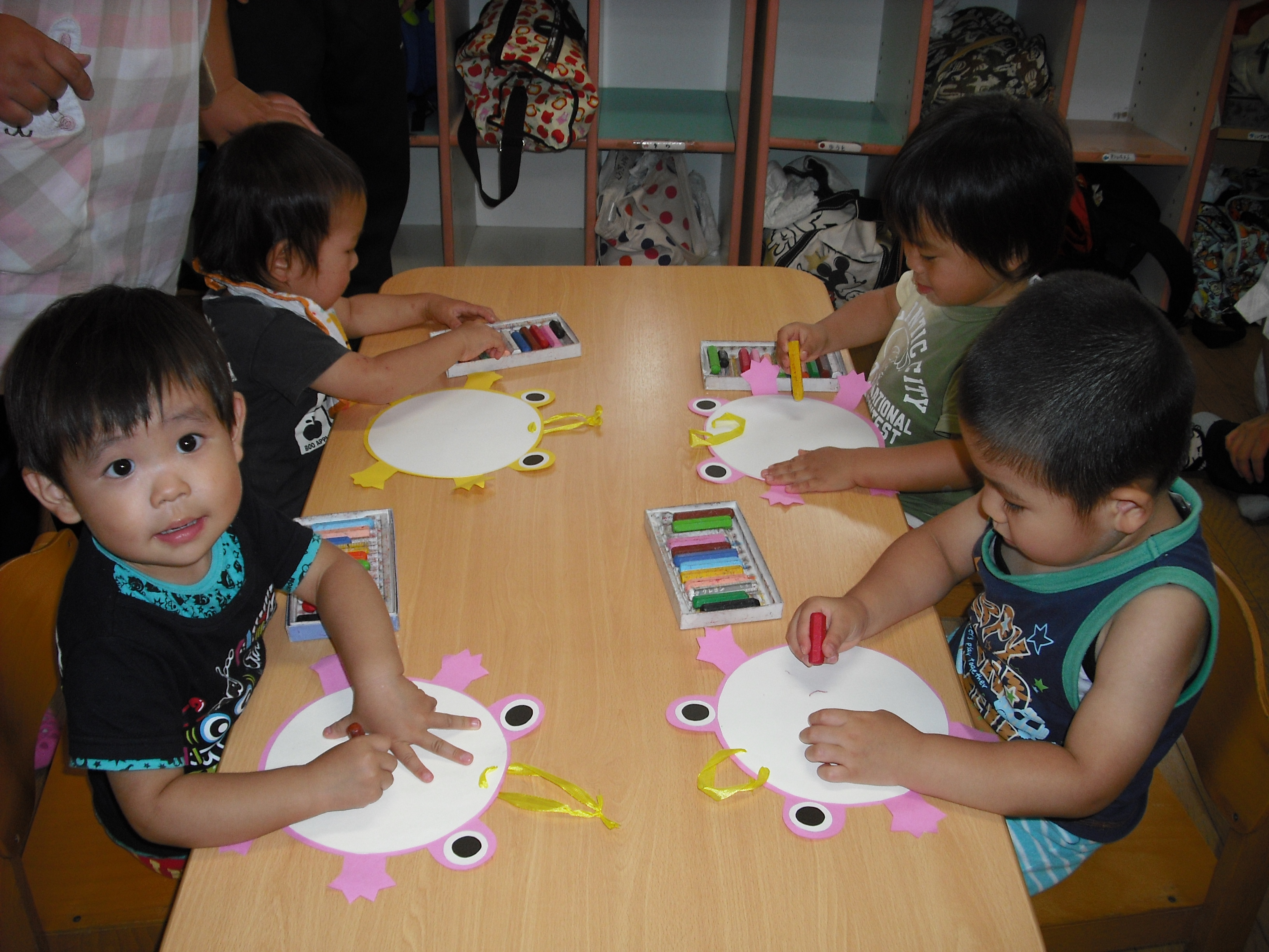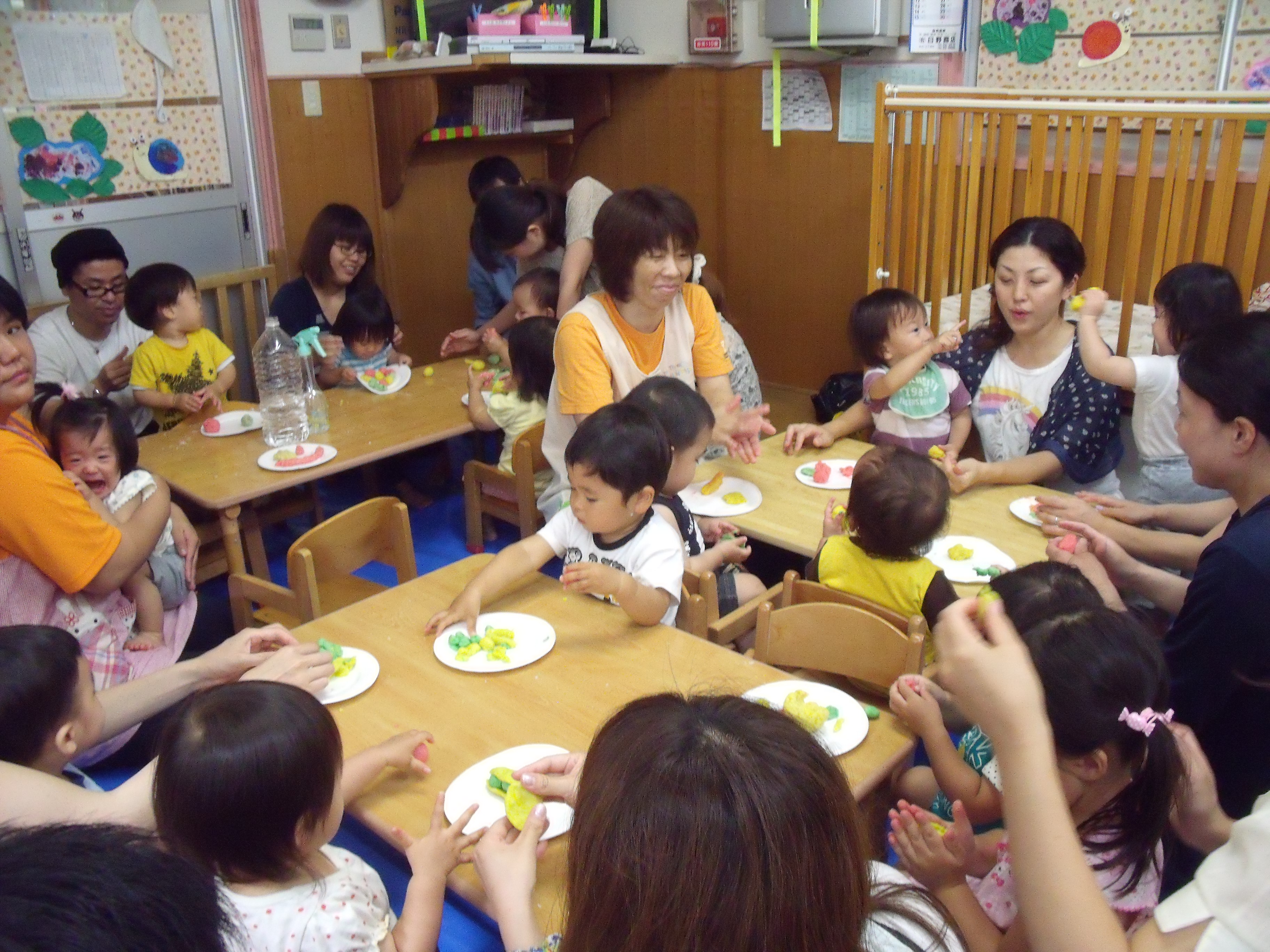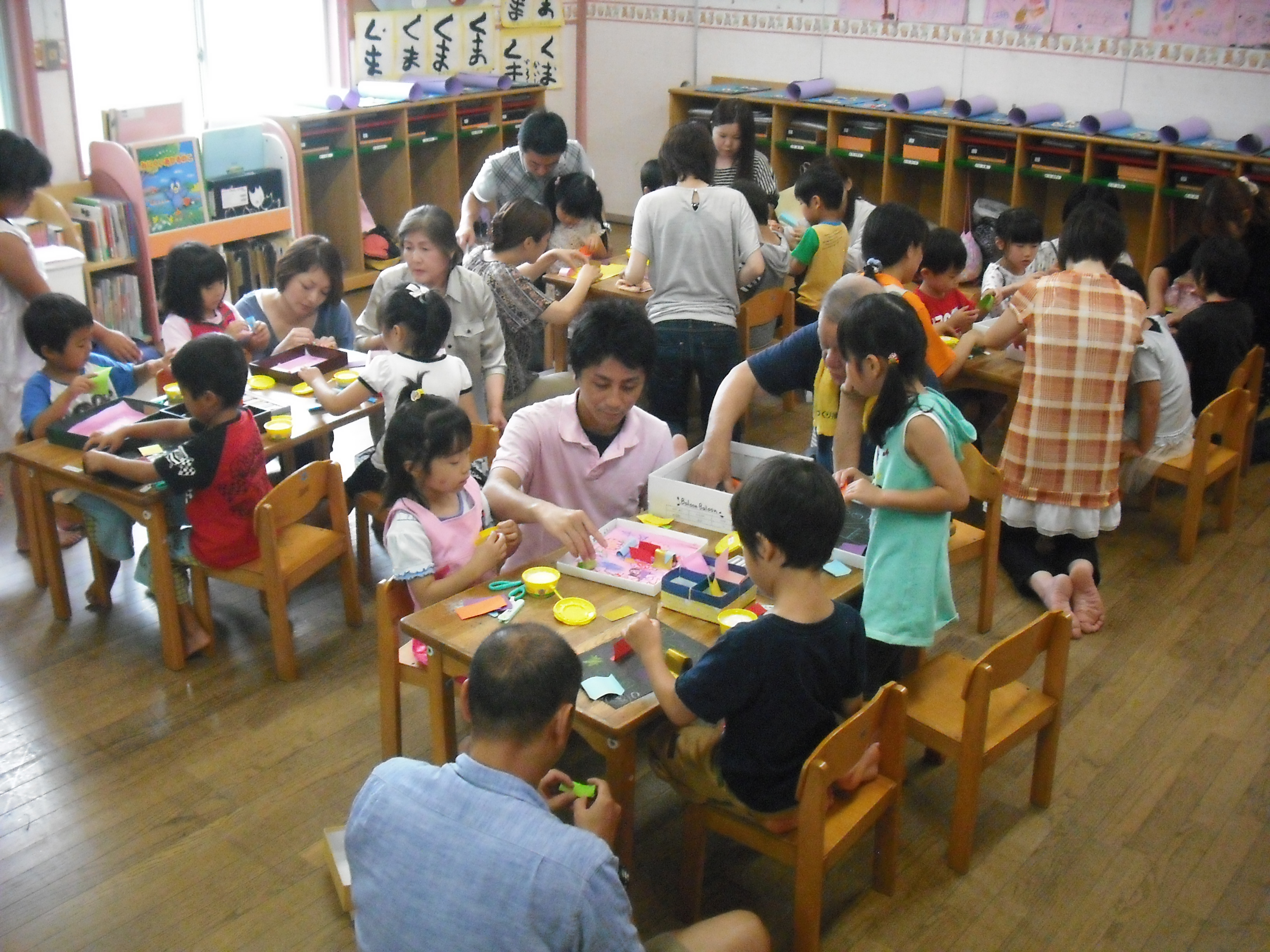 参観日 6月15日(土) 子ども達が楽しみにしていた参観日。 ひよこ組さんは『ふれあい遊び』、りす組さんは『パン粉粘土遊び』、うさぎ組さんは『時計作り』、ぱんだ組さんは『版画遊び』、ぞう組さんは『魚つり遊び』、きりん組さんは『玉転がし遊び』を行いました。 親子で楽しいひとときを過ごすことができ、子ども達はとても嬉しそうでした。