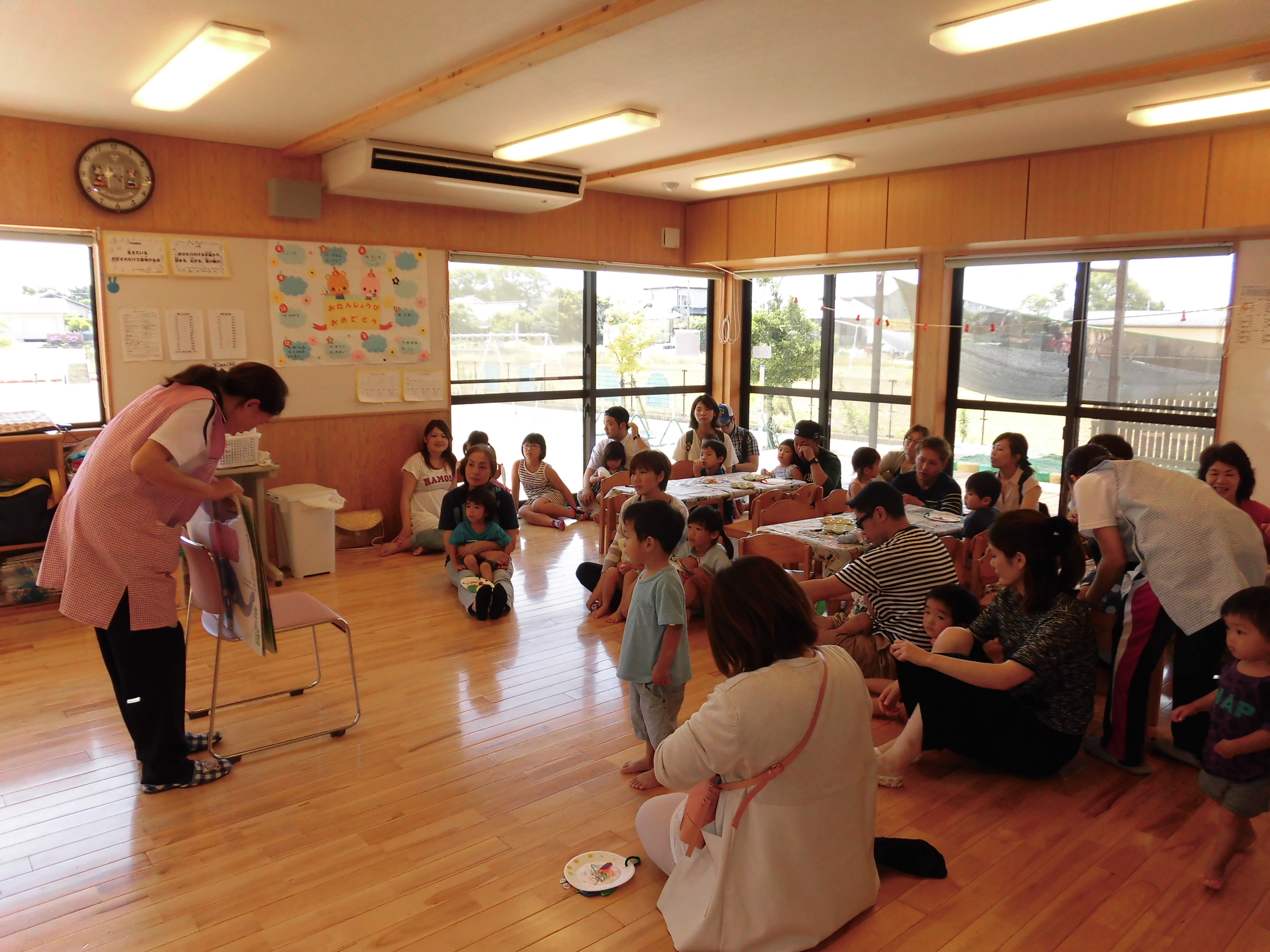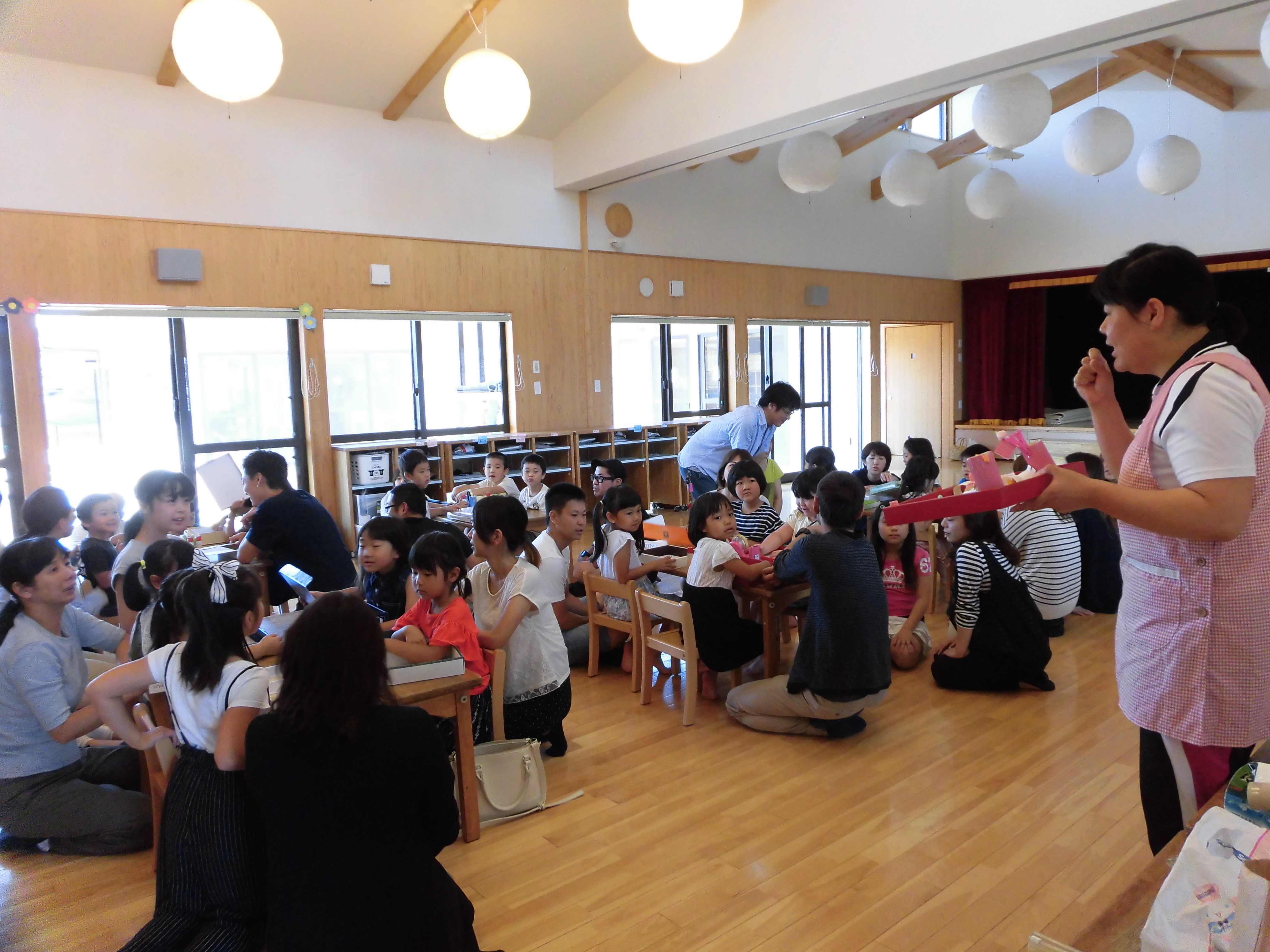 未満児クラスの子どもたちは、保護者の方に甘えながら、以上児クラスは「こんなことができるようになったんだよ。」と自信あふれる表情でゲームや製作を楽しむことができました。