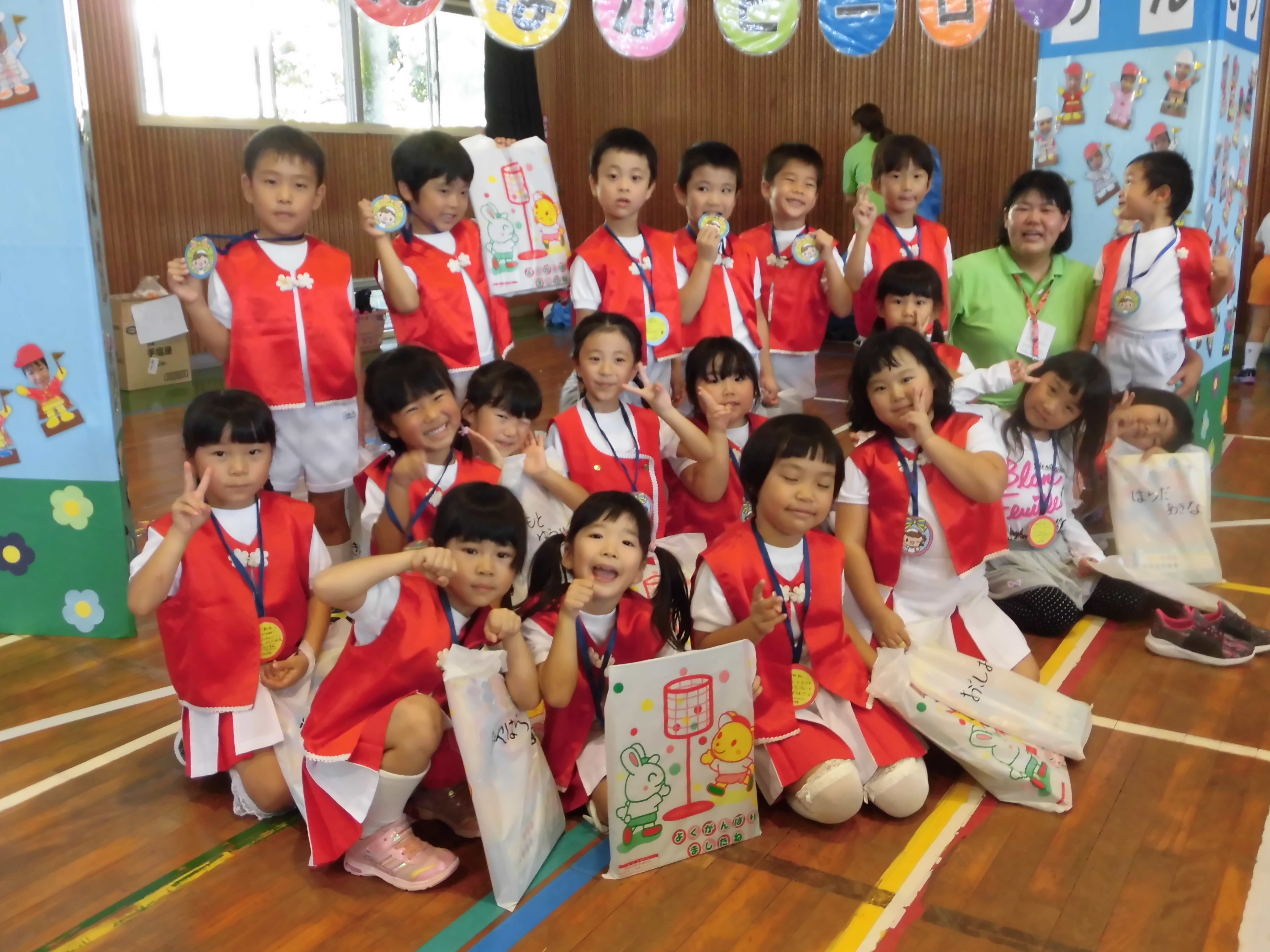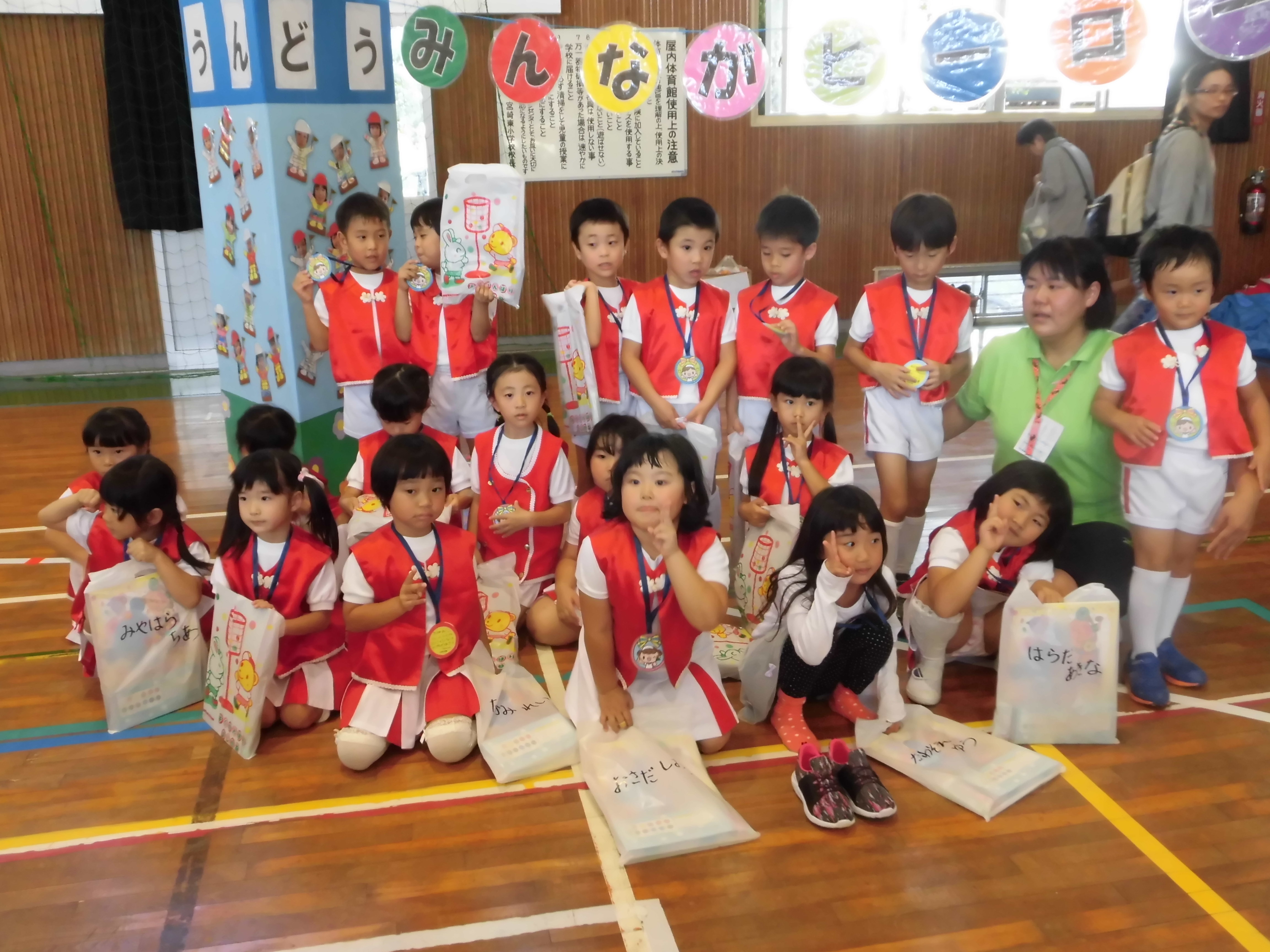 運動会 10月29日(日) 22日(日)の運動会が雨天で延期になったのですが、翌週も台風通過で微妙な天気。 苦渋の決断で東小体育館で以上児クラス(3、4、5歳児)のみの運動会を行いました。 かけっこ、遊戯、団技、マーチングと元気いっぱい披露することができました。これまでの練習の成果を発揮でき、子供たちは満足していました。保護者の方からも「とても良い運動会だった。」とのお言葉をいただきました。ありがとうございました。