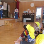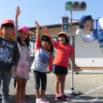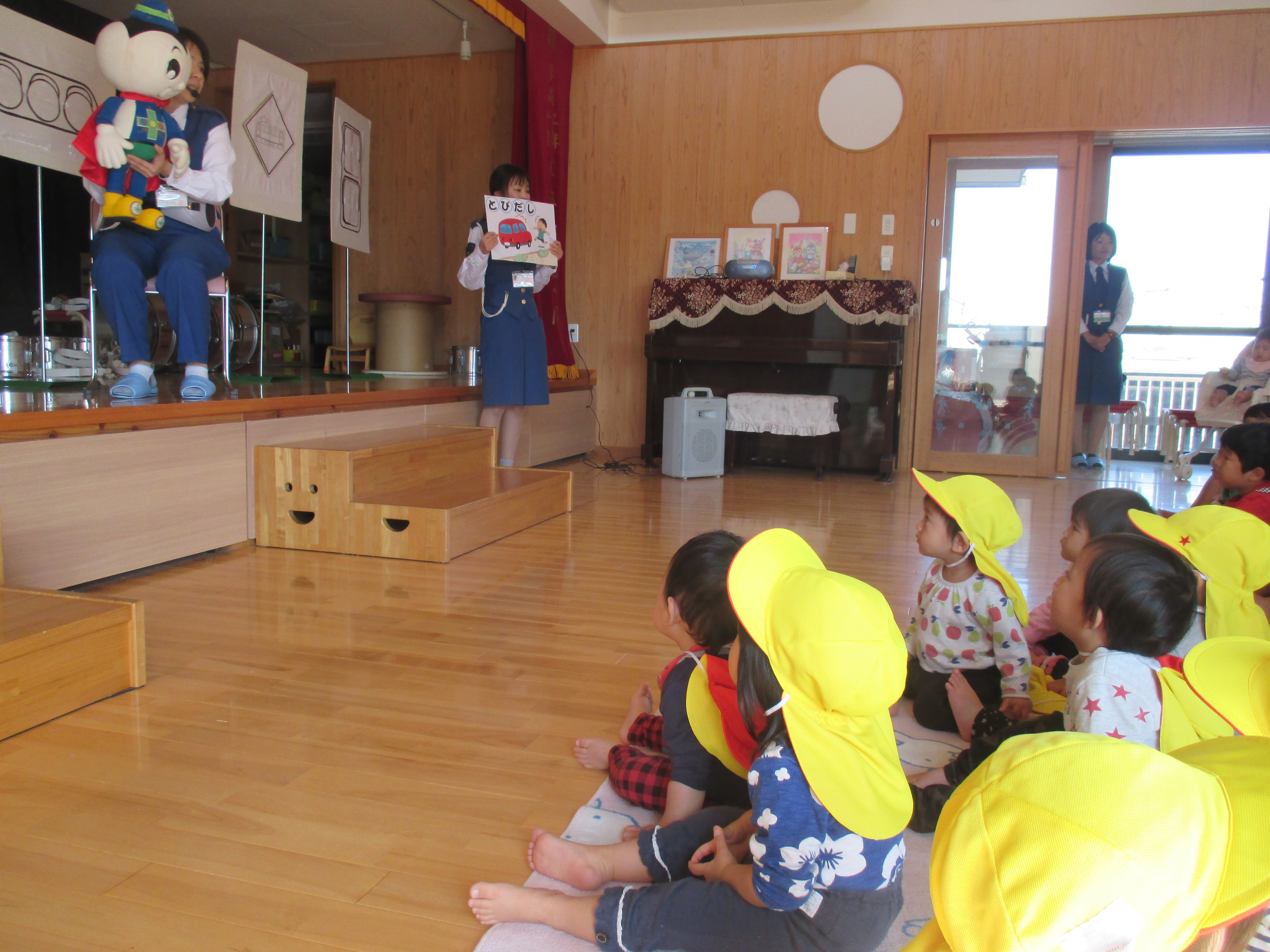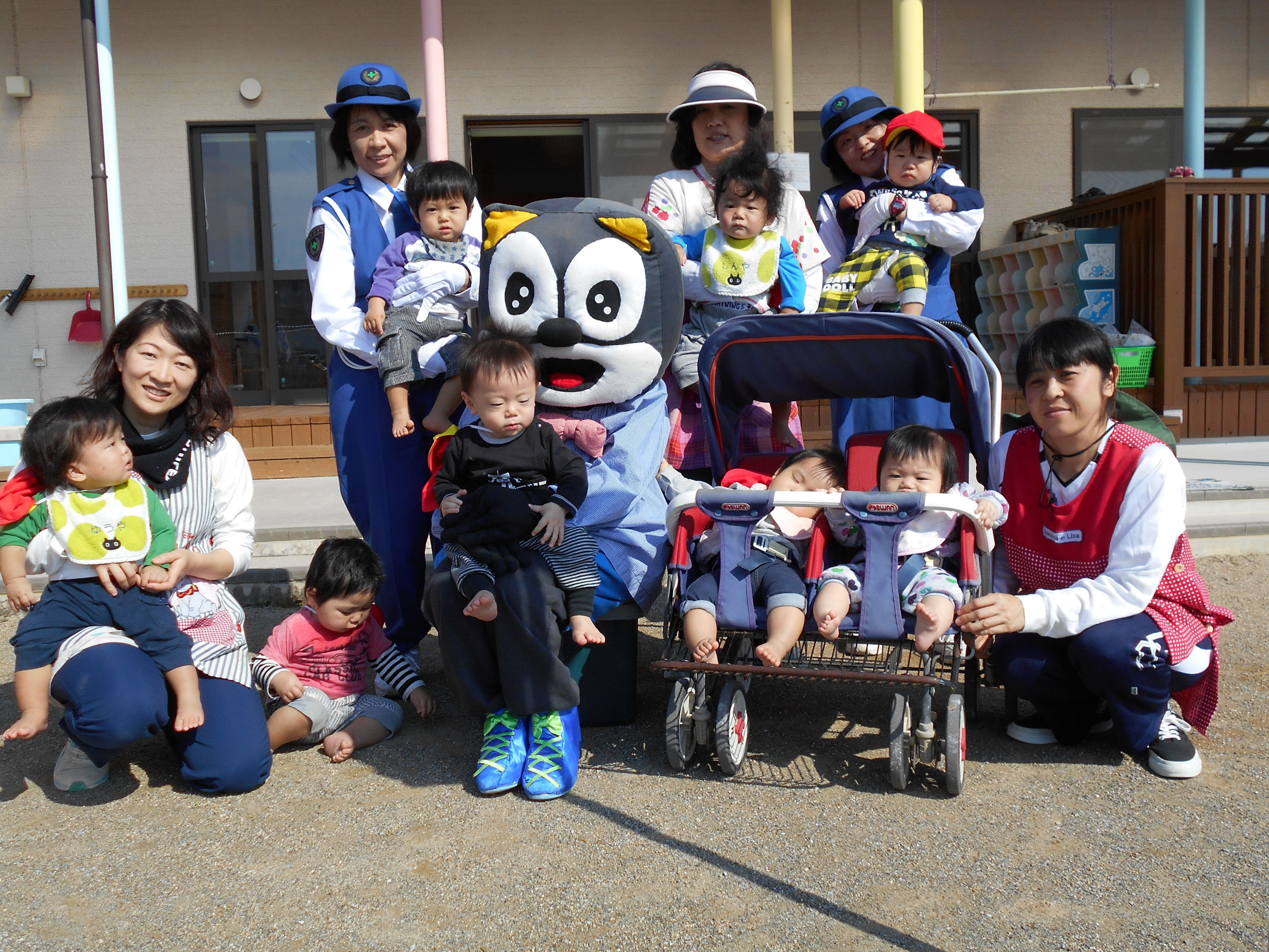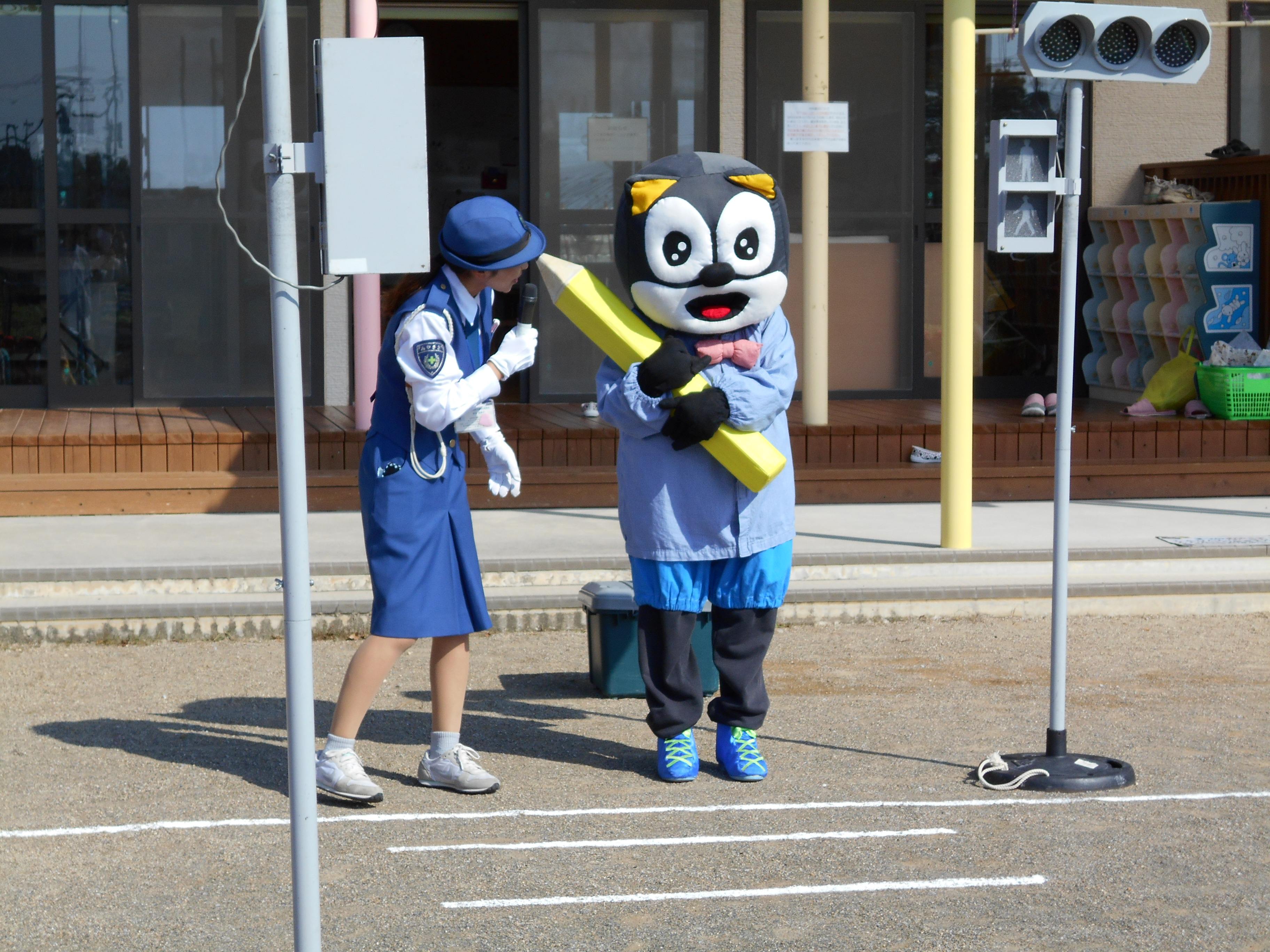 交通指導 11月1日(水) ラッキーくん登場!交通指導がありました。指導員さんから丁寧に交通ルールや横断歩道の渡り方についての指導を受けました。 横断歩道ではしっかりと手をあげて左右を確認しながら歩くことなど、理論と実技を行いながら学ぶことができました。 散歩に出かける時は、交通ルールを守っていきたいと思います。