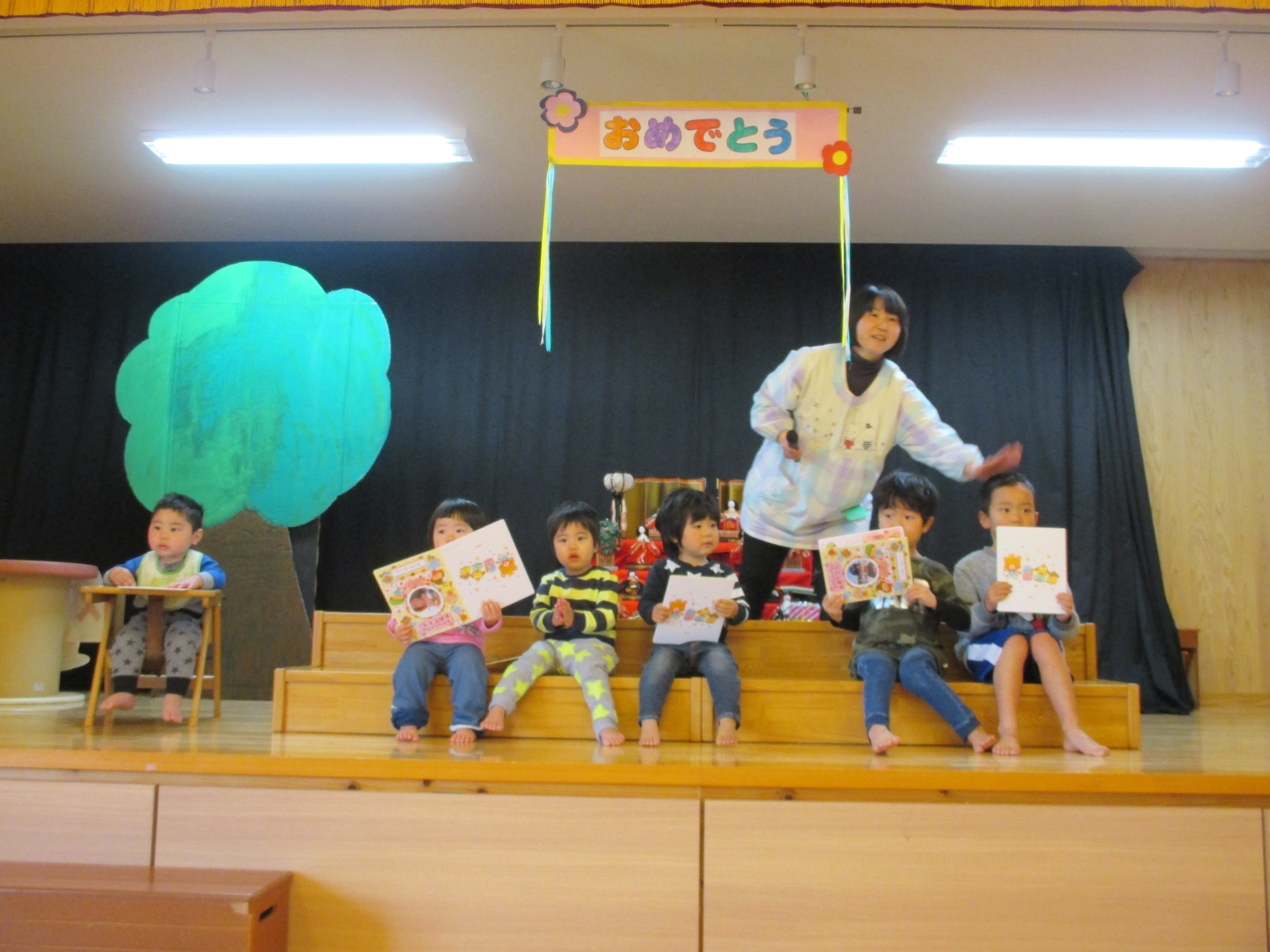 3月の誕生会 3月2日(金) 誕生会に参加しました。 春の歌を歌ったり、保育士による「ひなまつり」の劇を見て楽しみました。保育士の劇を見た後、「私もおひな様になりたい!」のリクエストで子ども達がおひな様に変身しました。 楽しい1日になりました。