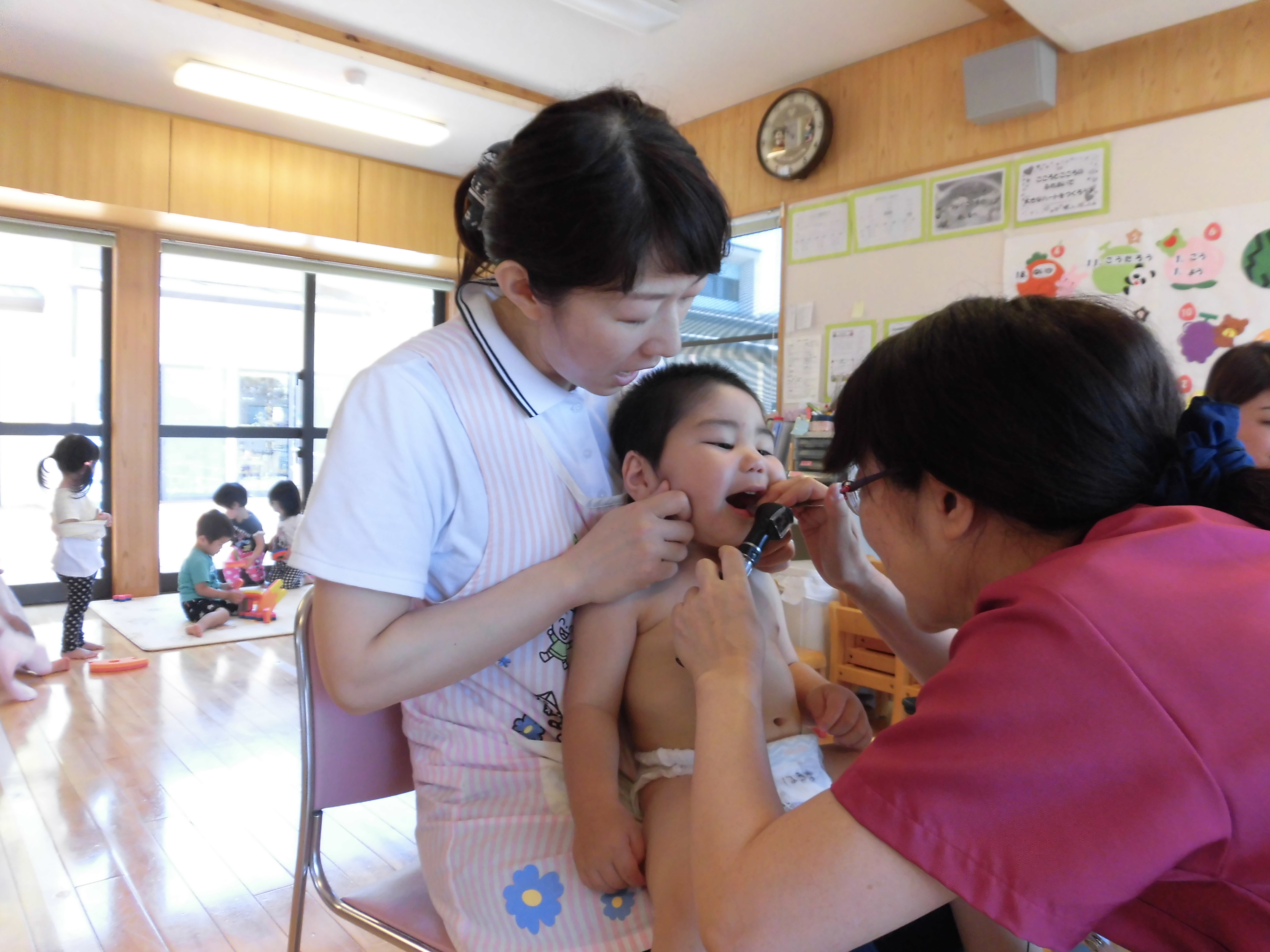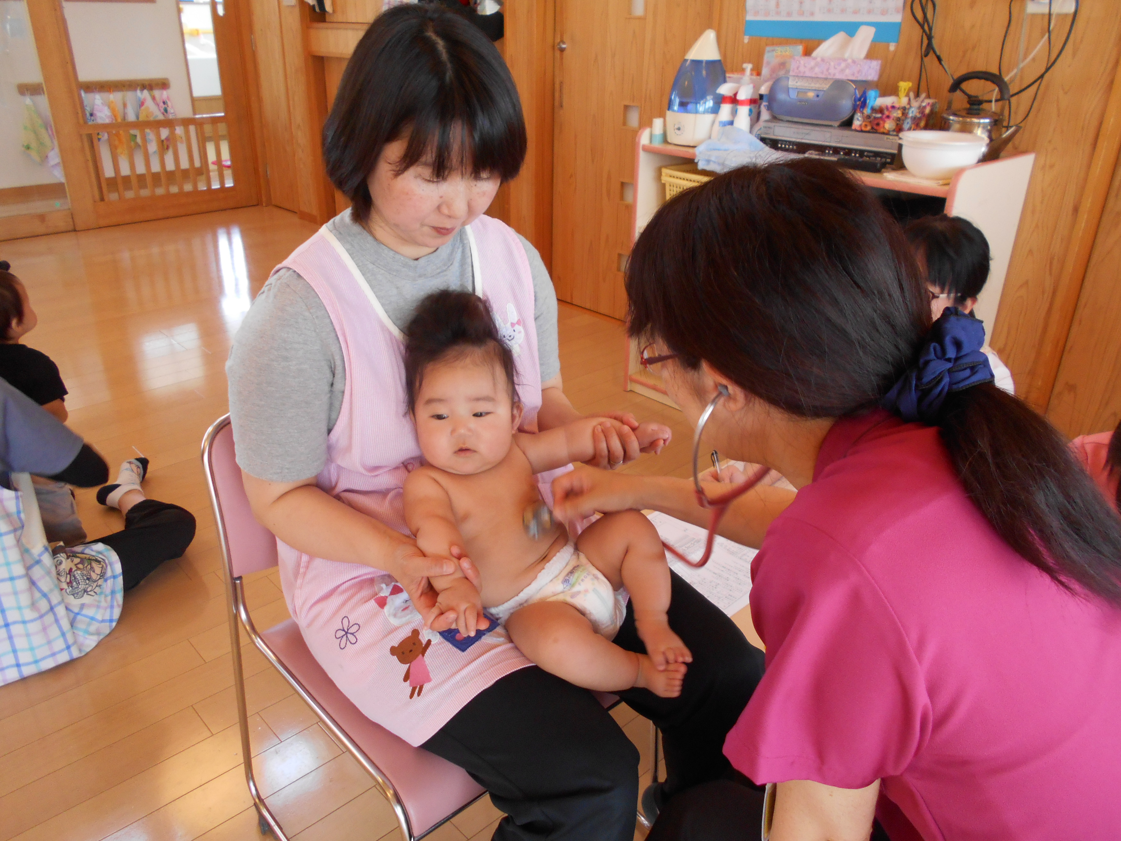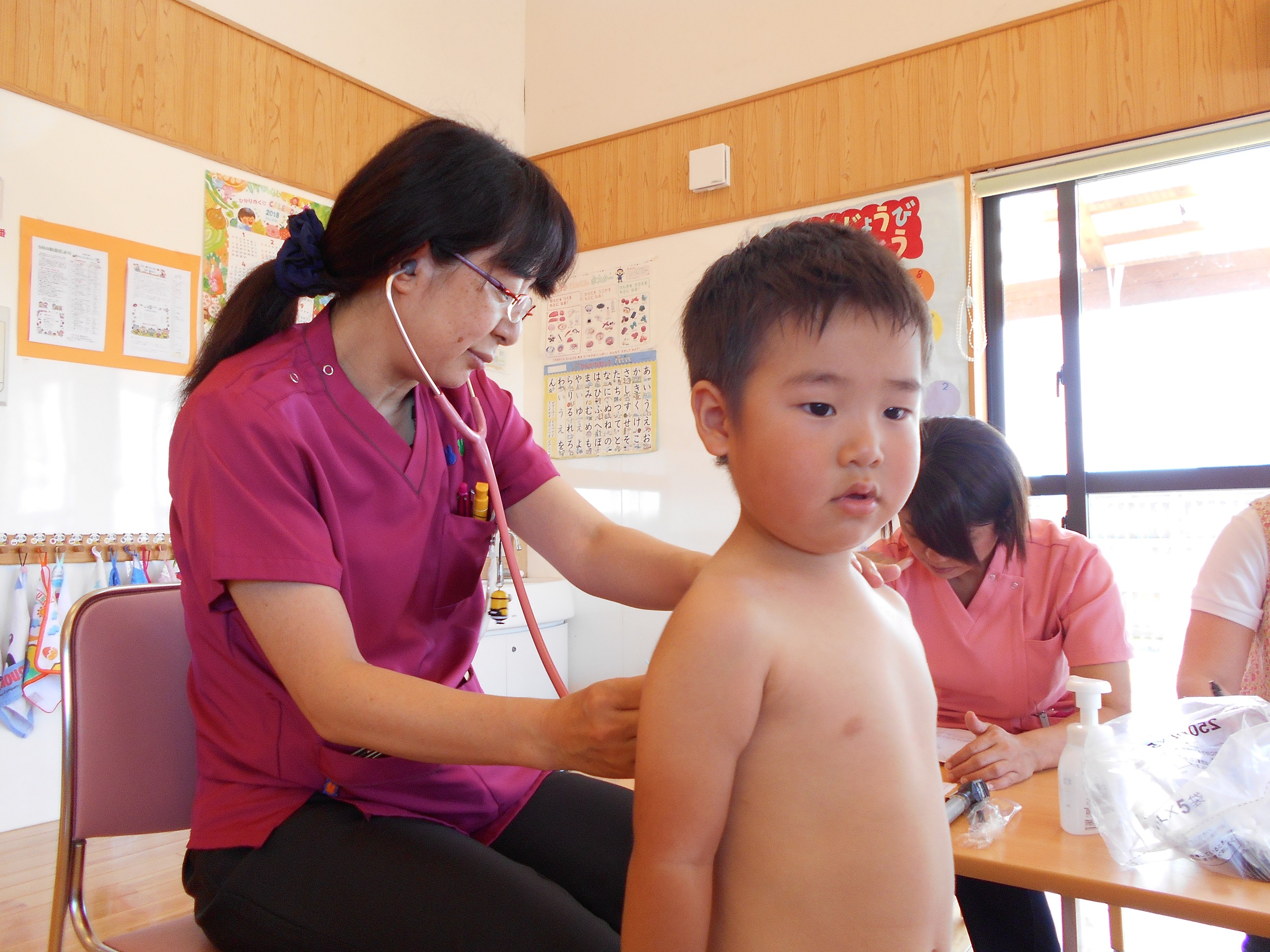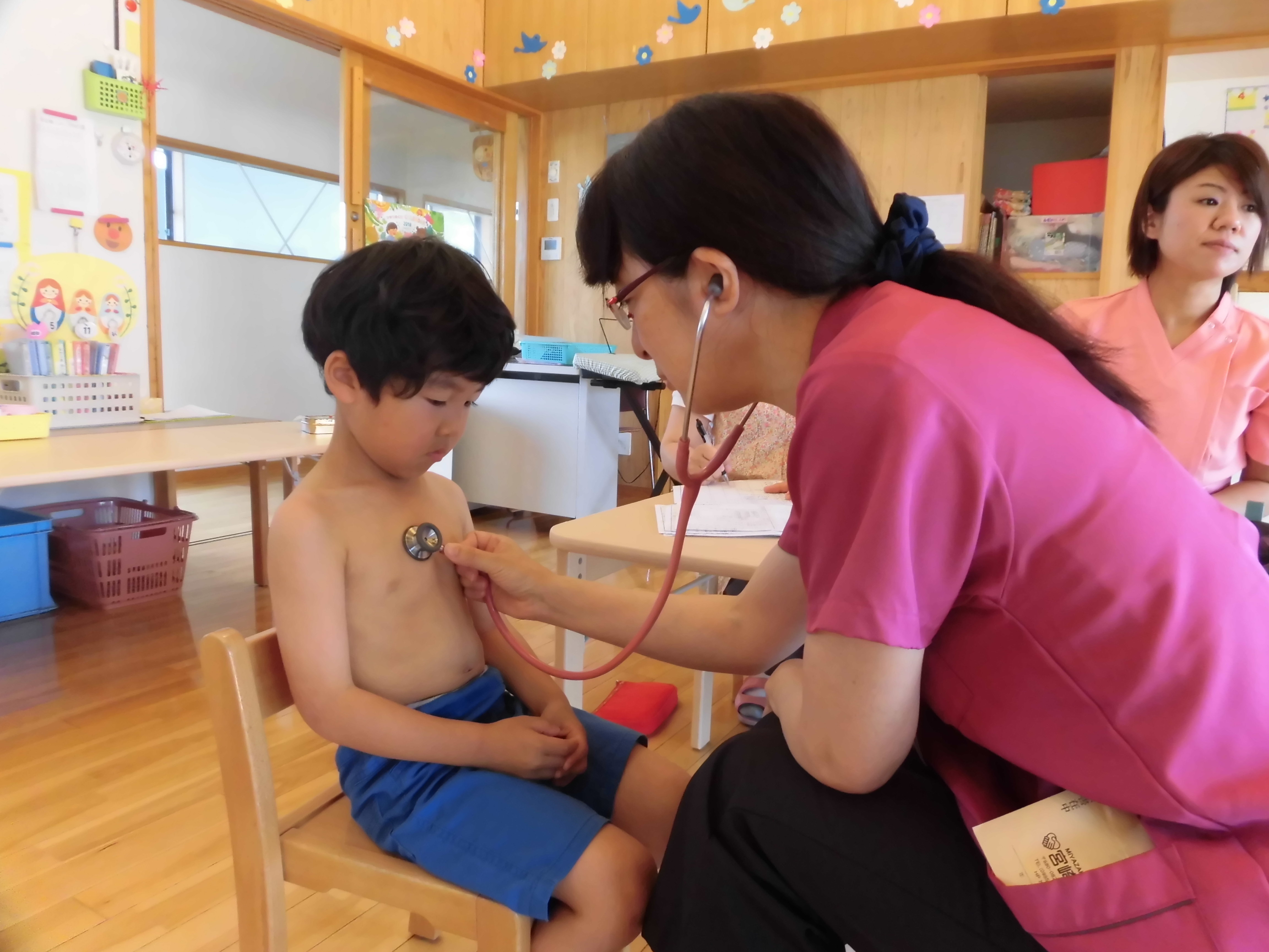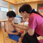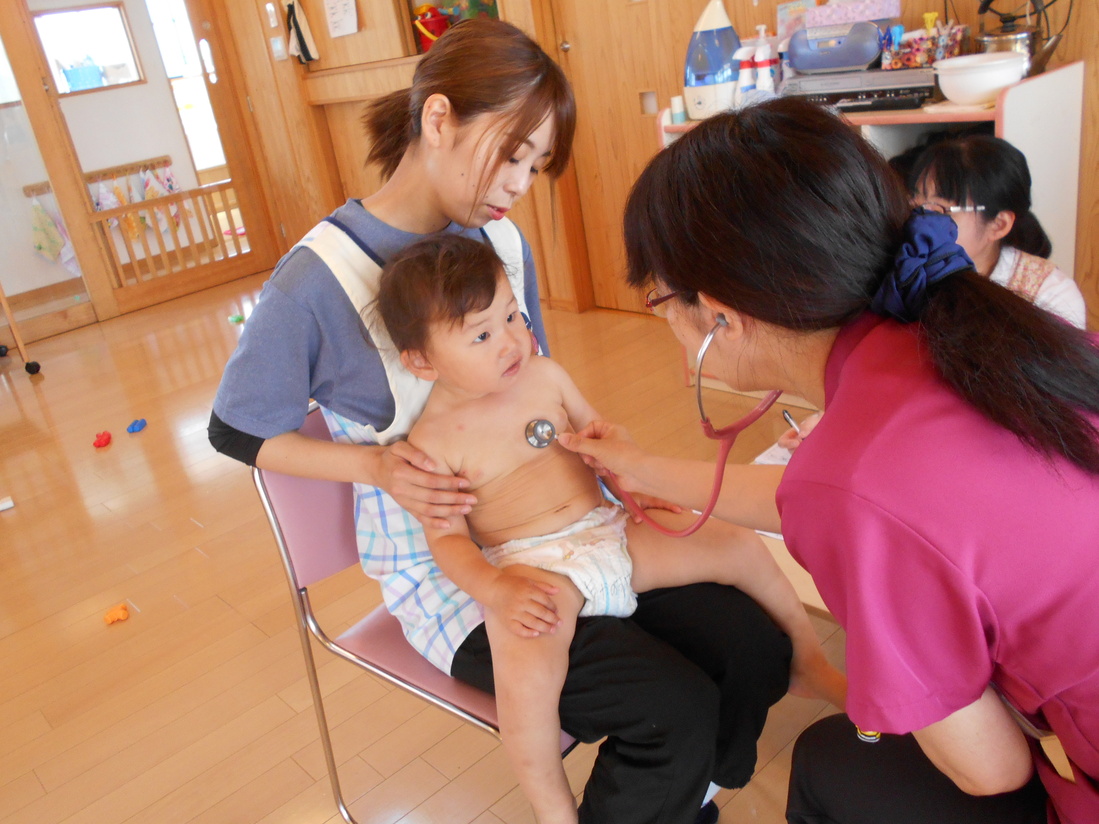 内科健診 5月14日(月) 女医さんから「もしもししようか?」と優しく声かけをしていただいたので、全員落ち着いて健診を受けることができました。 毎回、予防接種を受けるためのアドバイスもいただき、適切な時期に予防接種を受ける方が多くなってきています。 健康が一番ですね。!(^^)!