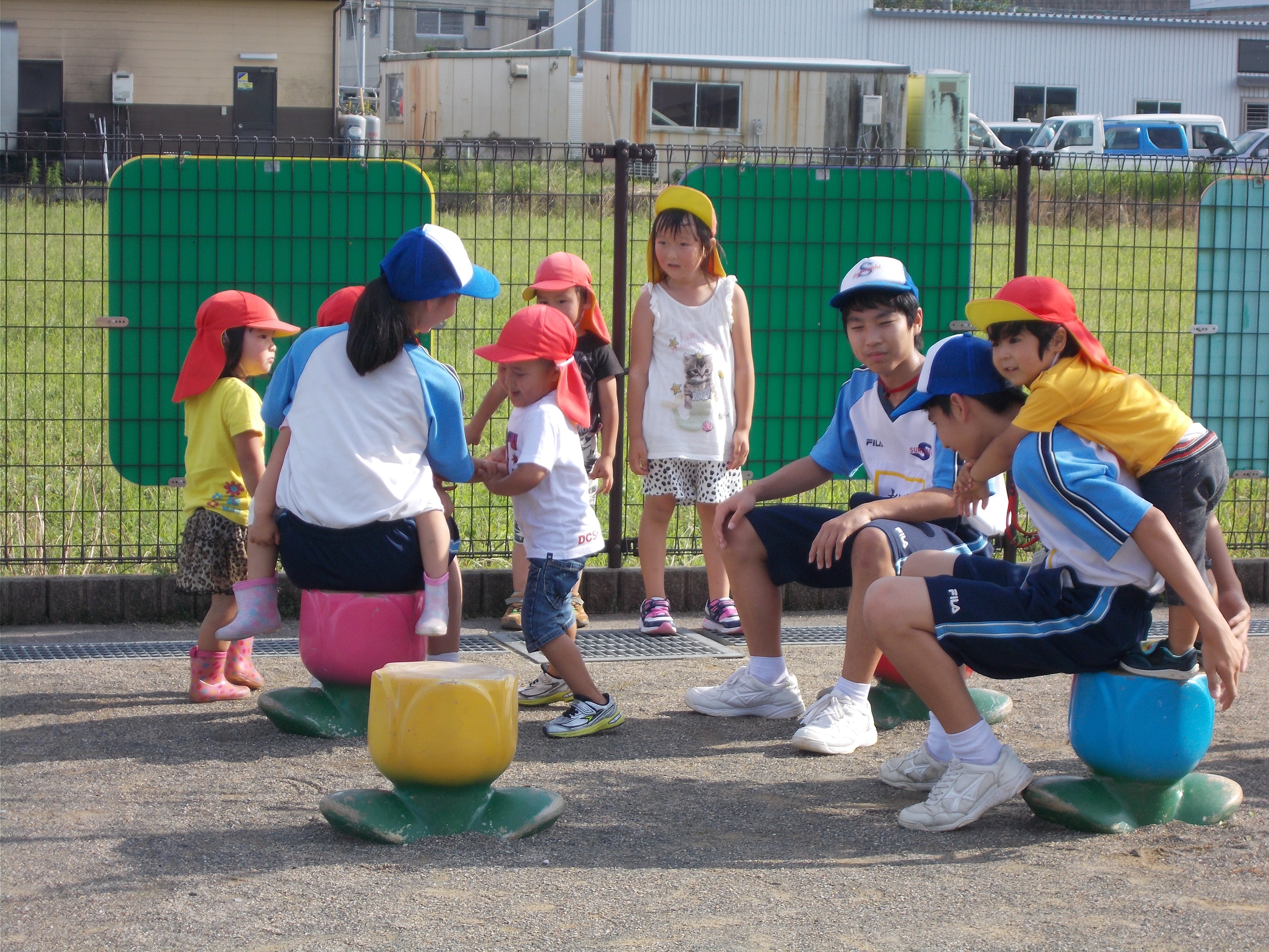 中学生 職場体験 6月21日(木) 中学生の職場体験実習がありました。 初めての職場体験。初めは緊張していたようですが、子どもたちの「お兄ちゃん、おんぶして。」「お姉ちゃん、一緒に遊ぼう。」の声かけで笑顔になり、子どもたちとたくさん触れ合い楽しい時間を過ごせたようです。 遊びの時間以外にも、給食の準備や着替えの手伝い・掃除なども体験し、良い経験になったようです。最後に「子どもたちと一緒に遊べて楽しかったです。」と感想をいただきました。