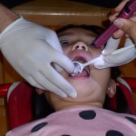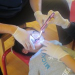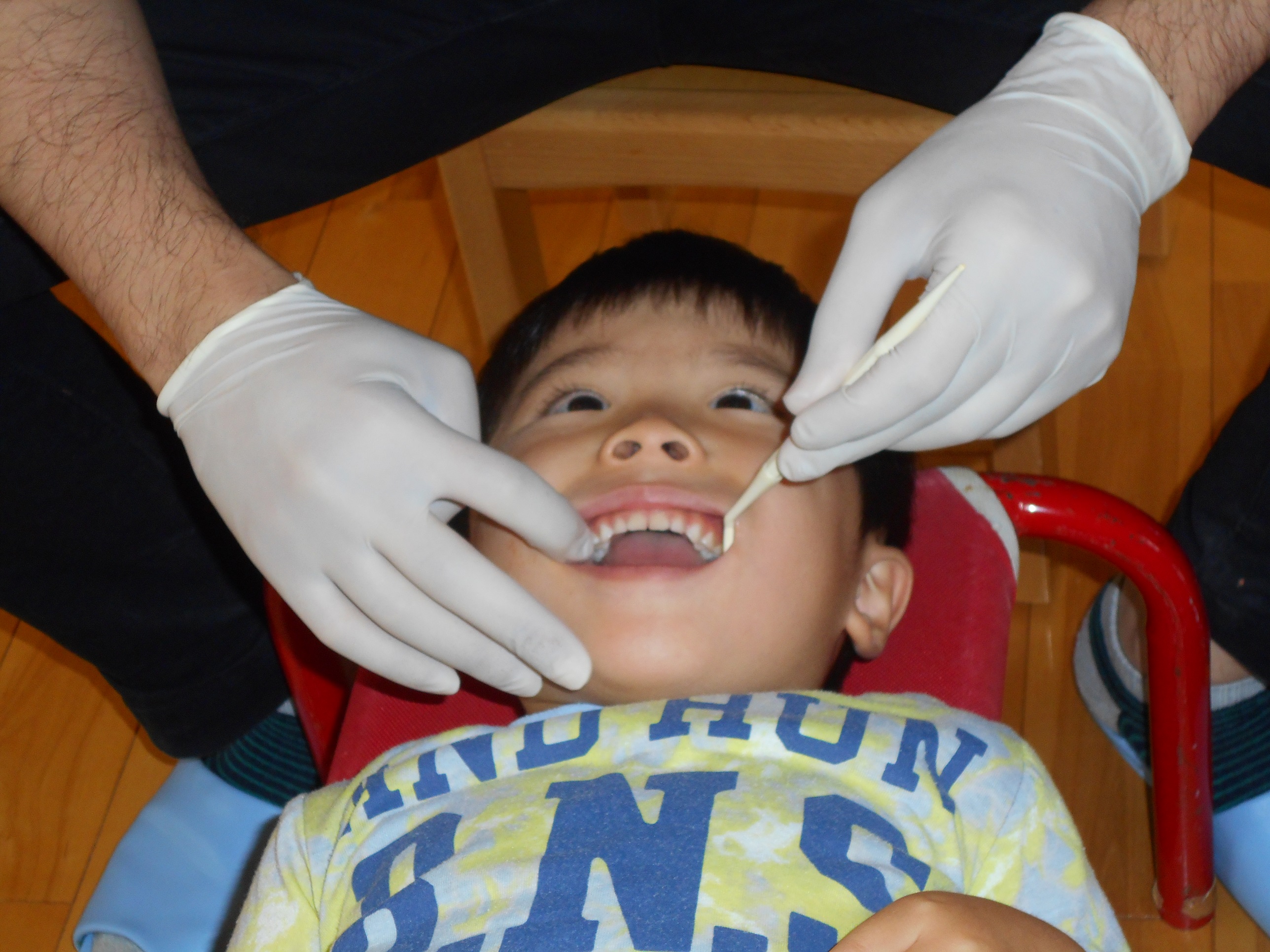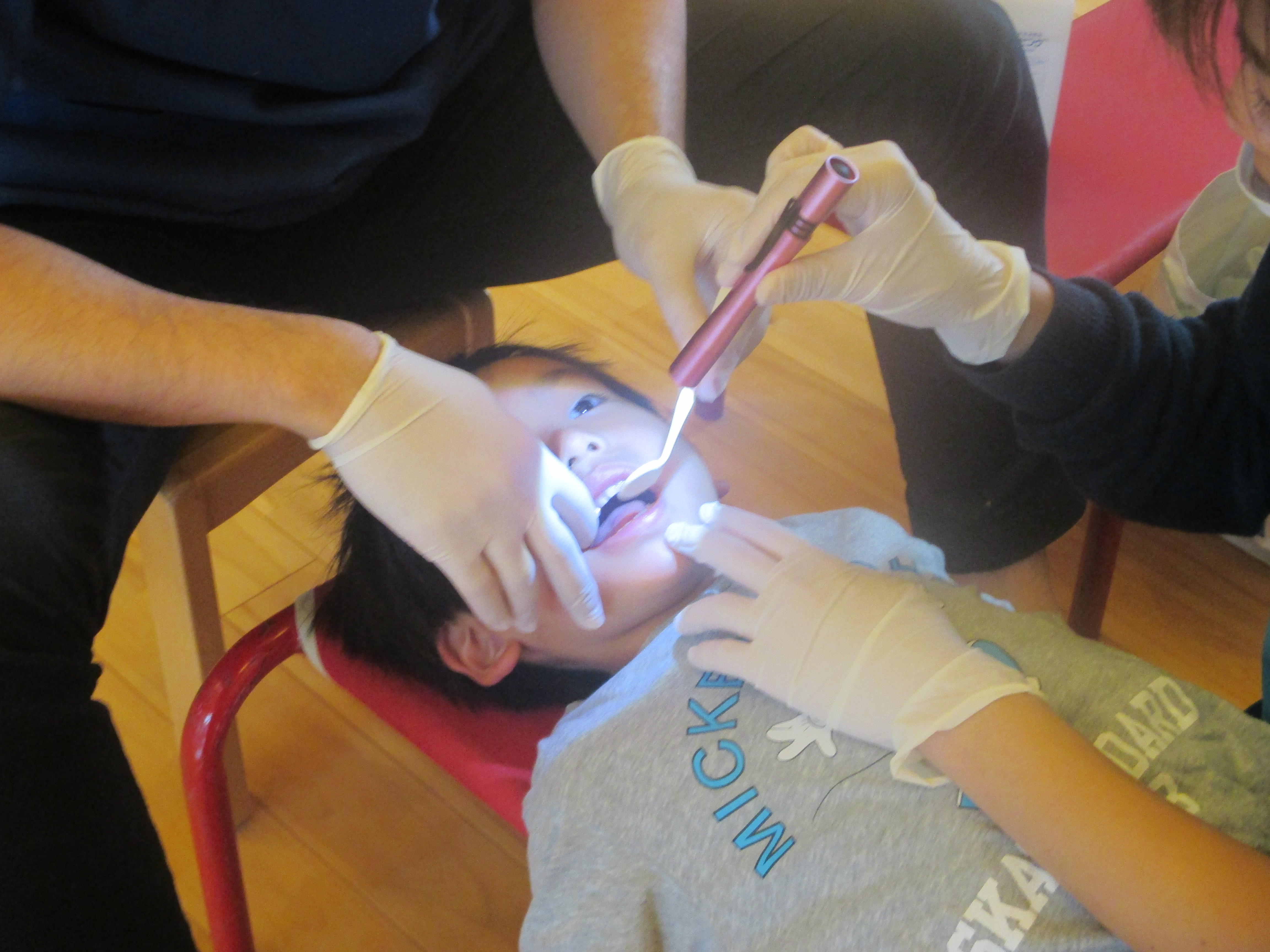 大きな口を開け、歯科医師から口の中の汚れや歯列、むし歯等をチェックしていただきました。