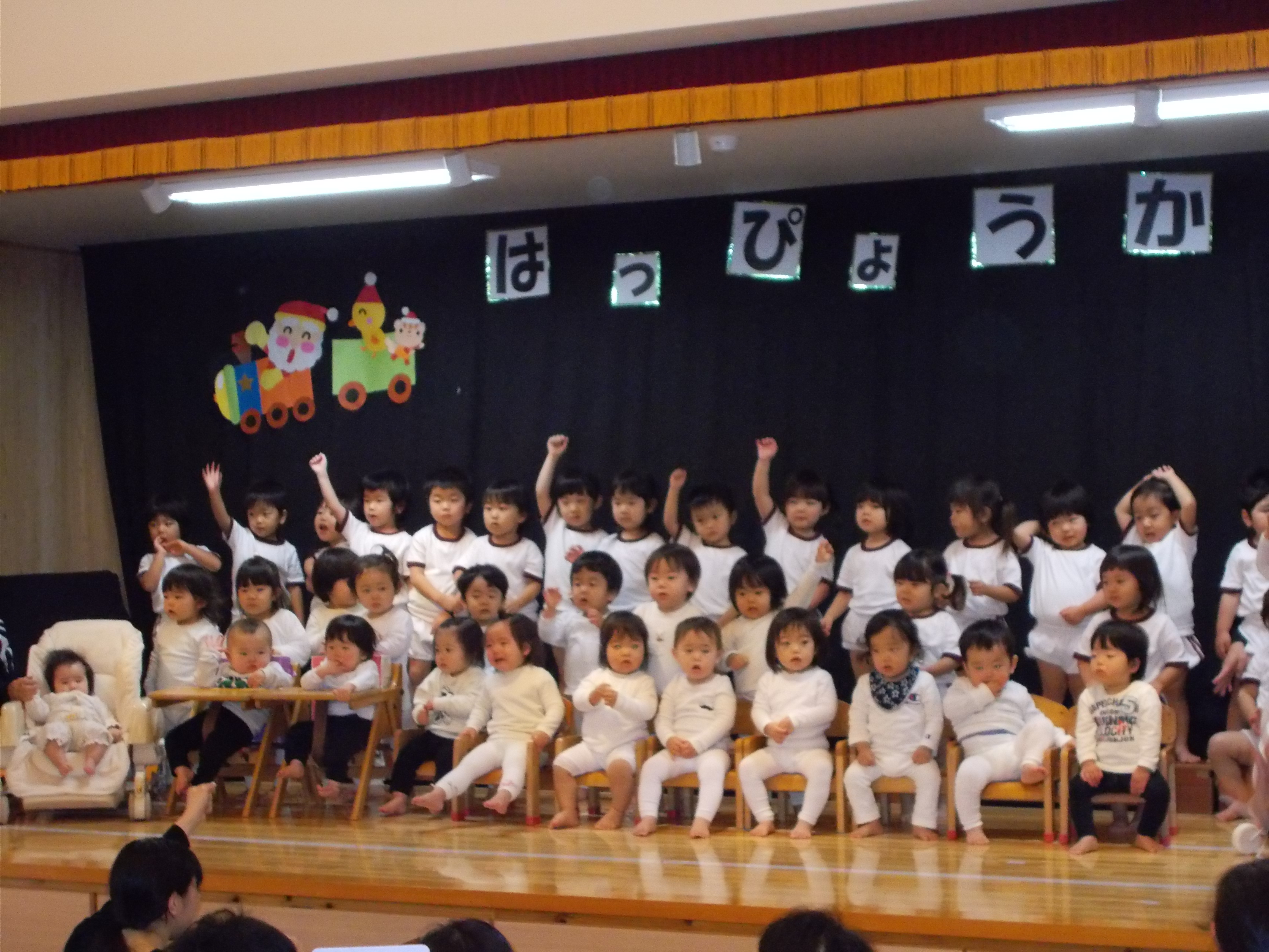 クリスマス発表会 12月16日(日) 未満児クラスの挨拶から始まったクリスマス発表会。 劇、ダンス、歌・合奏など、練習の成果を披露しました。 初めは緊張していましたが途中から笑顔も見られ、最後までよく頑張りました。子どもたちの個性が光った素敵な発表会になりました。