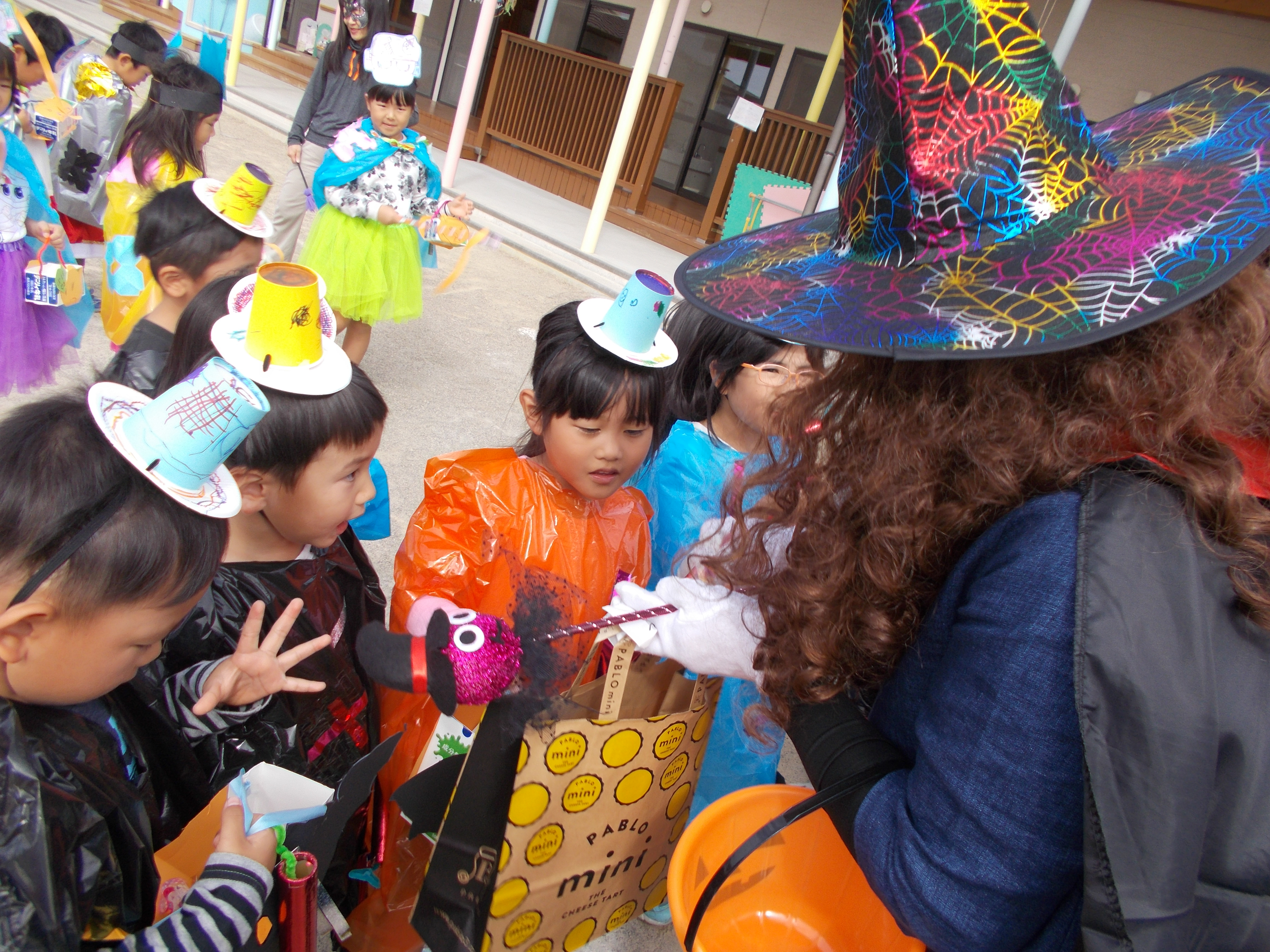 魔女から手作りのクッキーをもらい大満足の子どもたちでした。