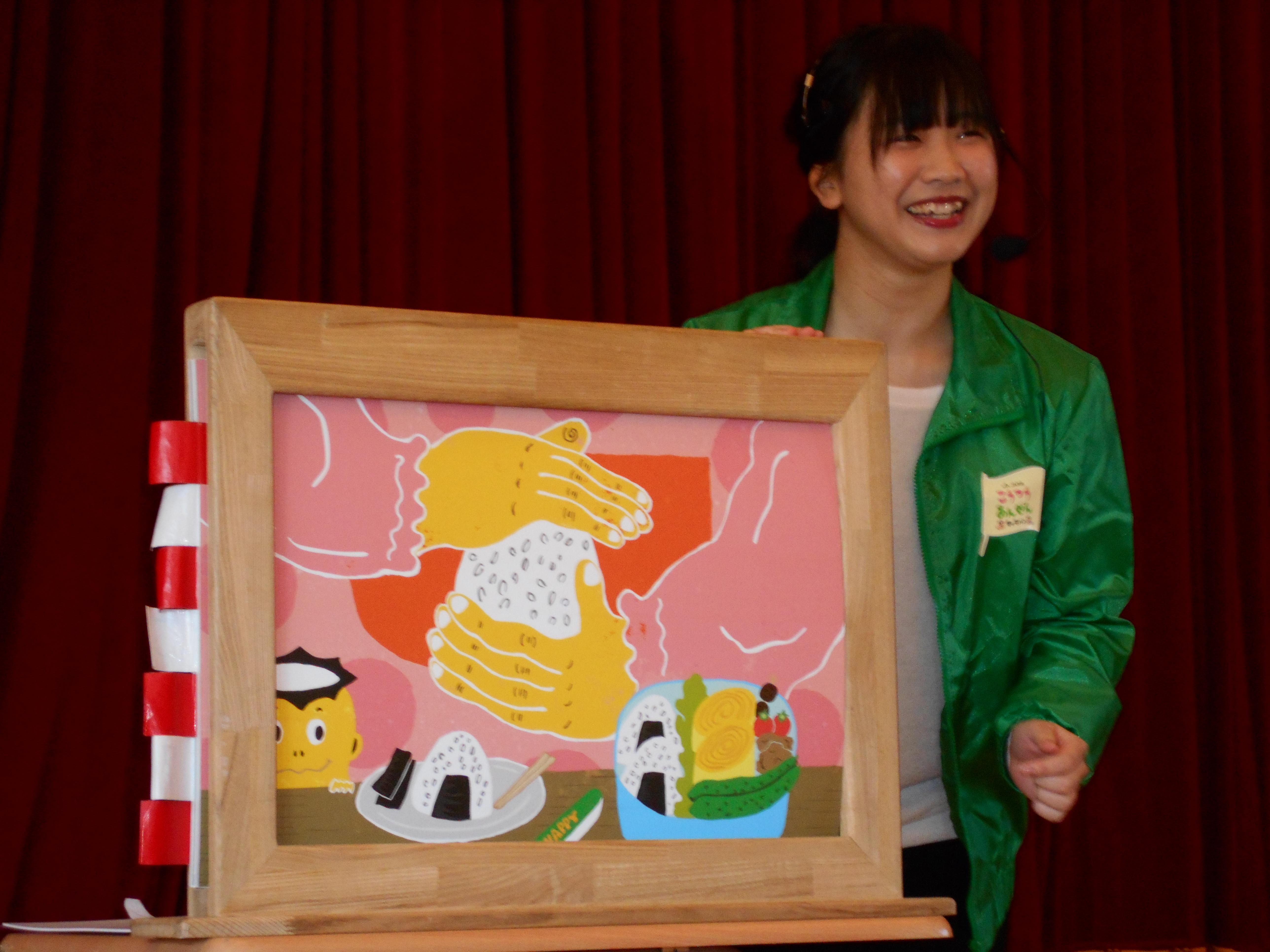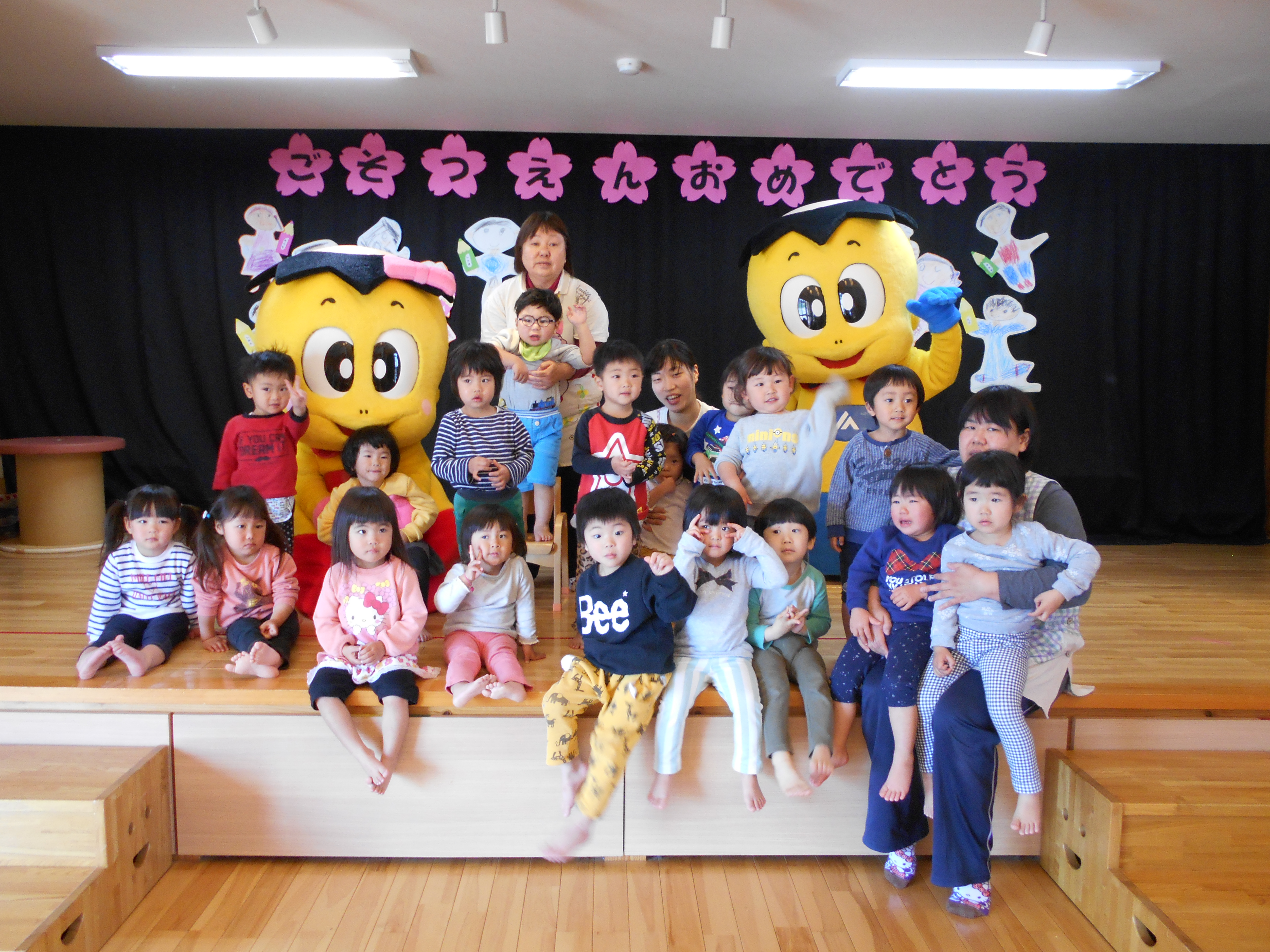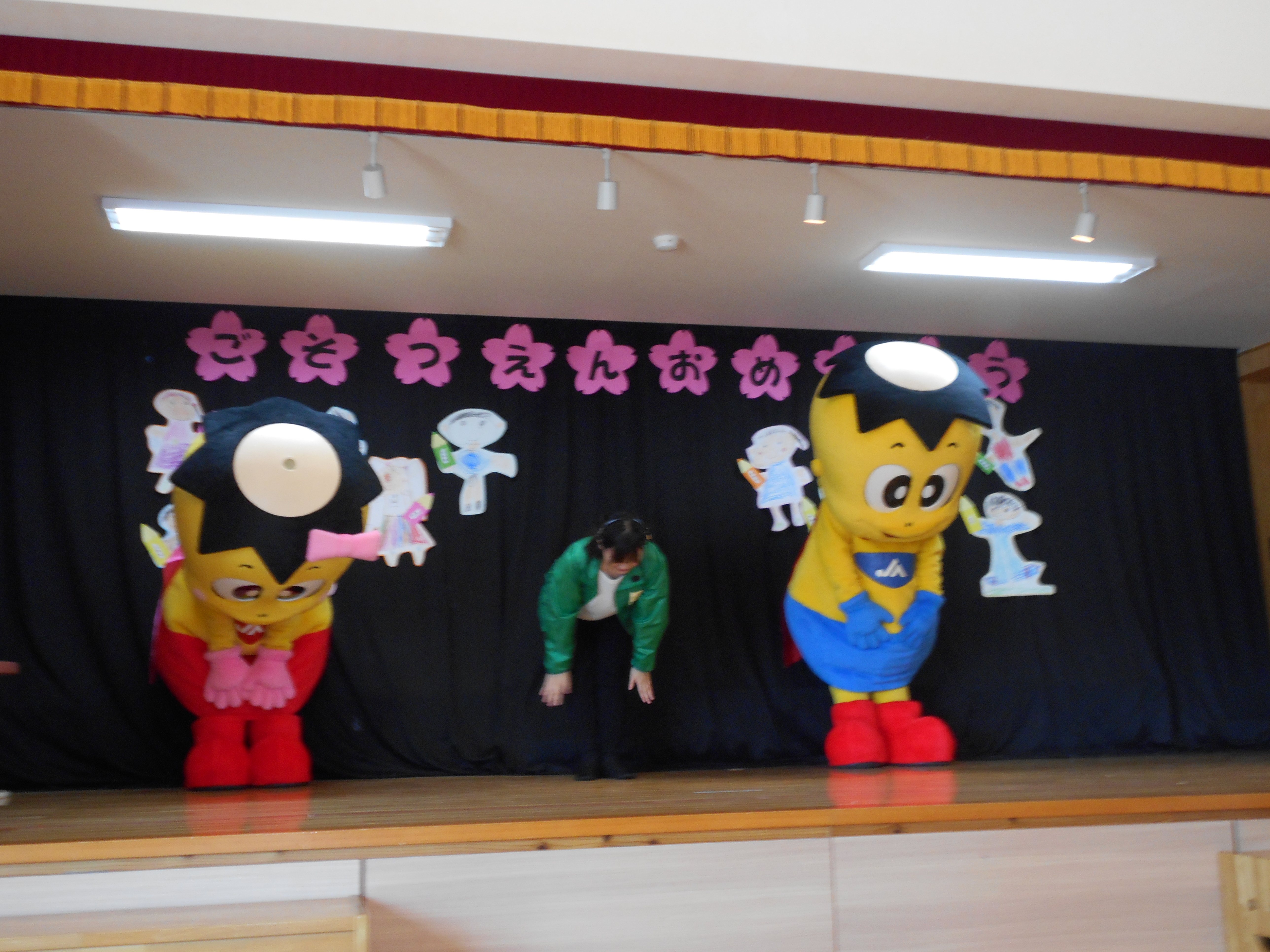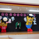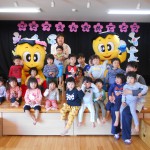 紙芝居「ハピハピ山へえんそく」を見たり、ハッピーくんハピコちゃんと一緒に交通安全体操を楽しみました。