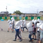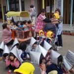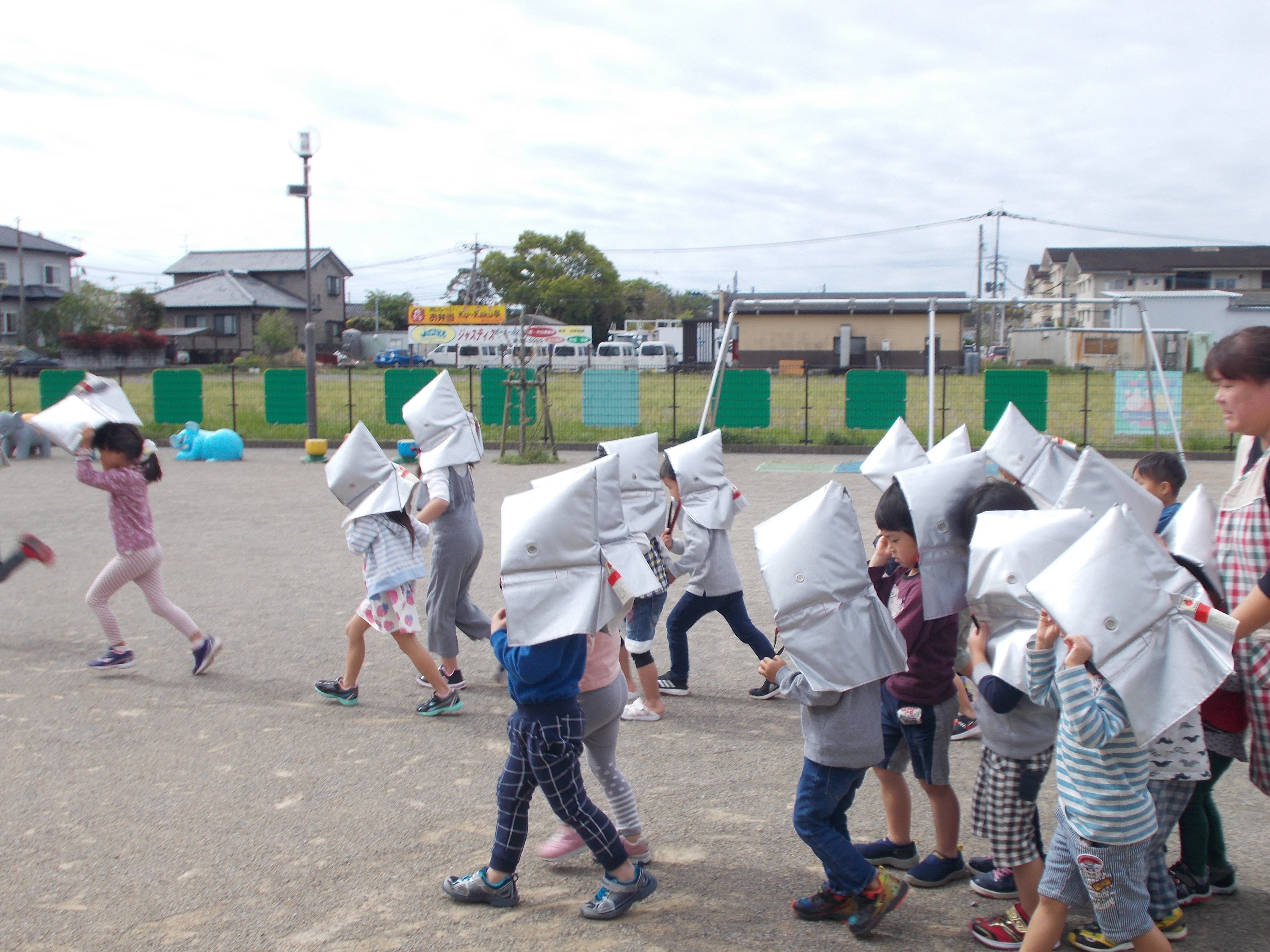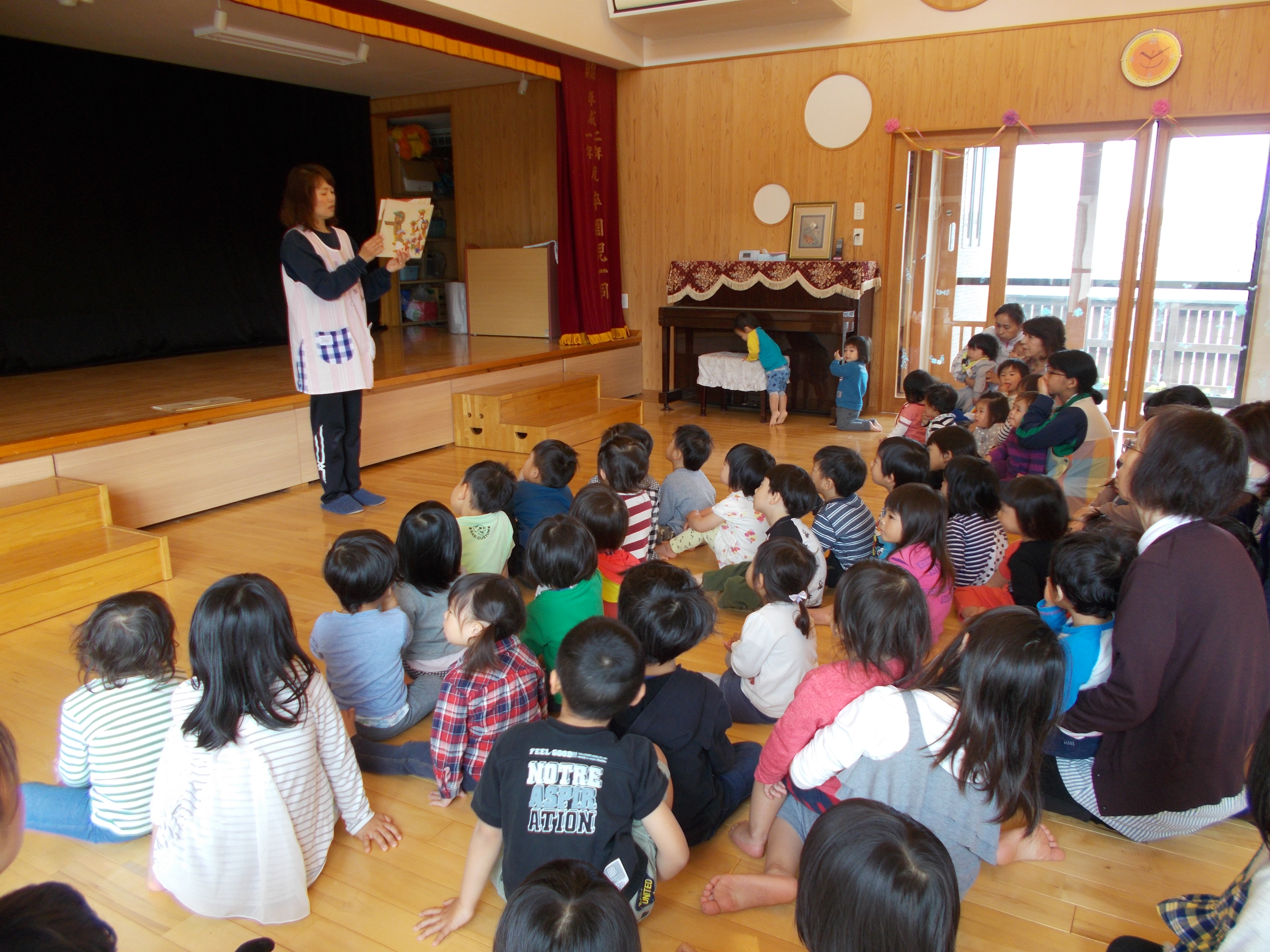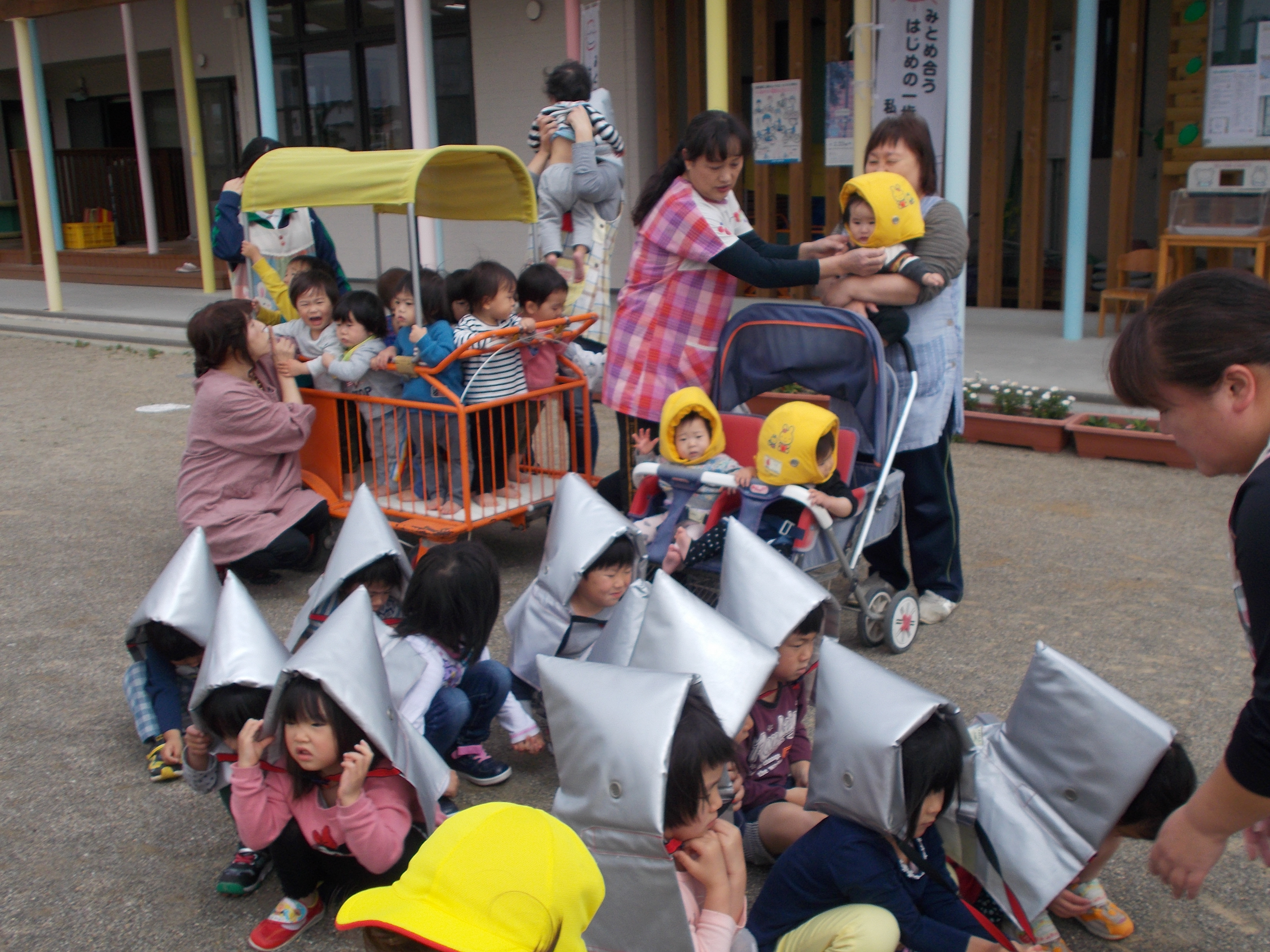 4月の避難訓練 4月11日(木) 地震を想定した避難訓練を行いました。 放送が入ると子どもたちは保育士の指示に従い机下やロッカーに一次避難し、次の放送で園庭に二次避難しました。日頃の訓練の成果もあり、落ち着いてスムーズに避難できました。 新年度になって初めての訓練でしたので、全クラスが遊戯室に集合し、紙芝居を見たり保育士からの避難訓練に関する話を聞きました。これからも突然の災害に対応できるように日々訓練を重ねていきます。