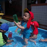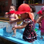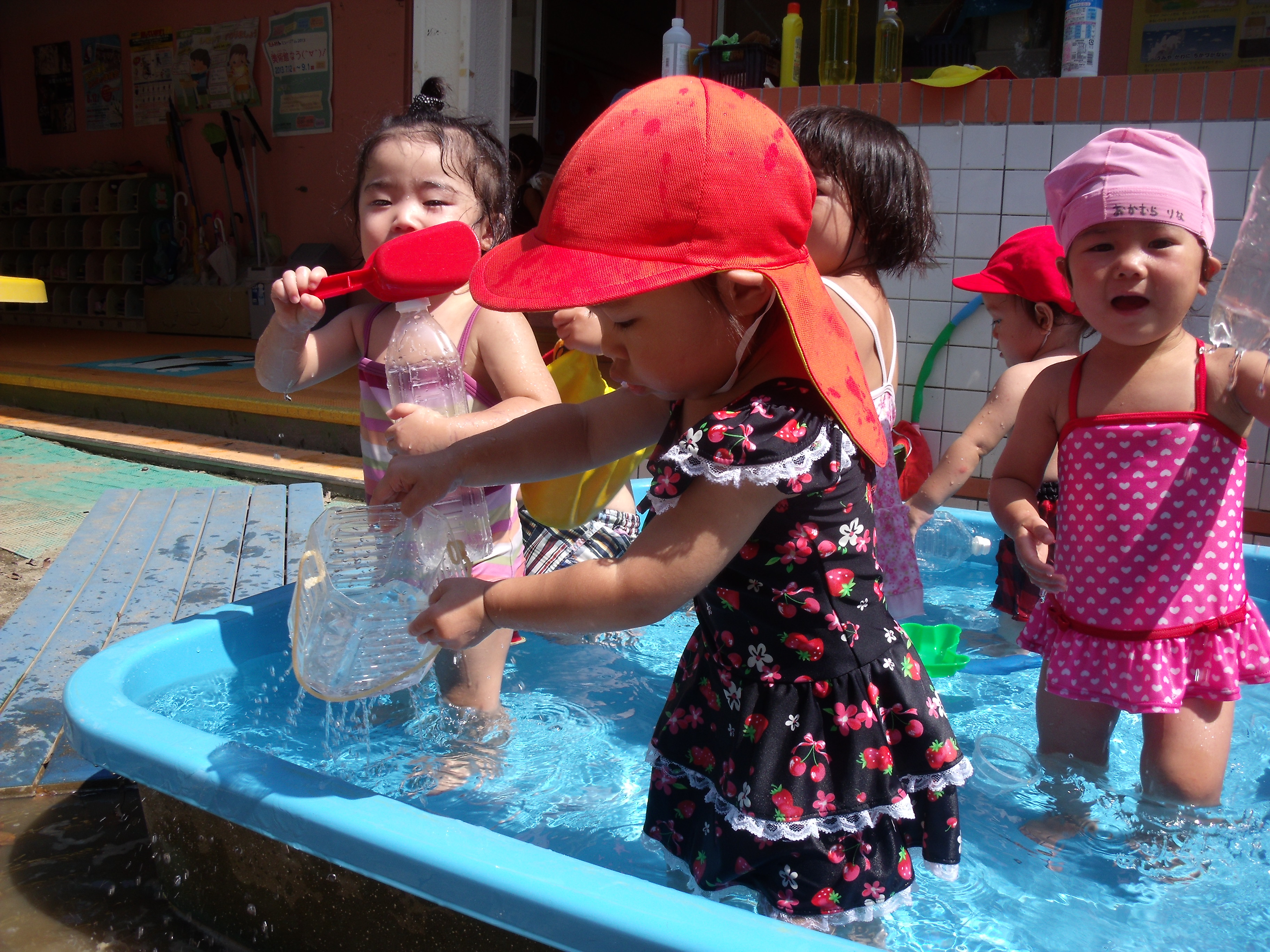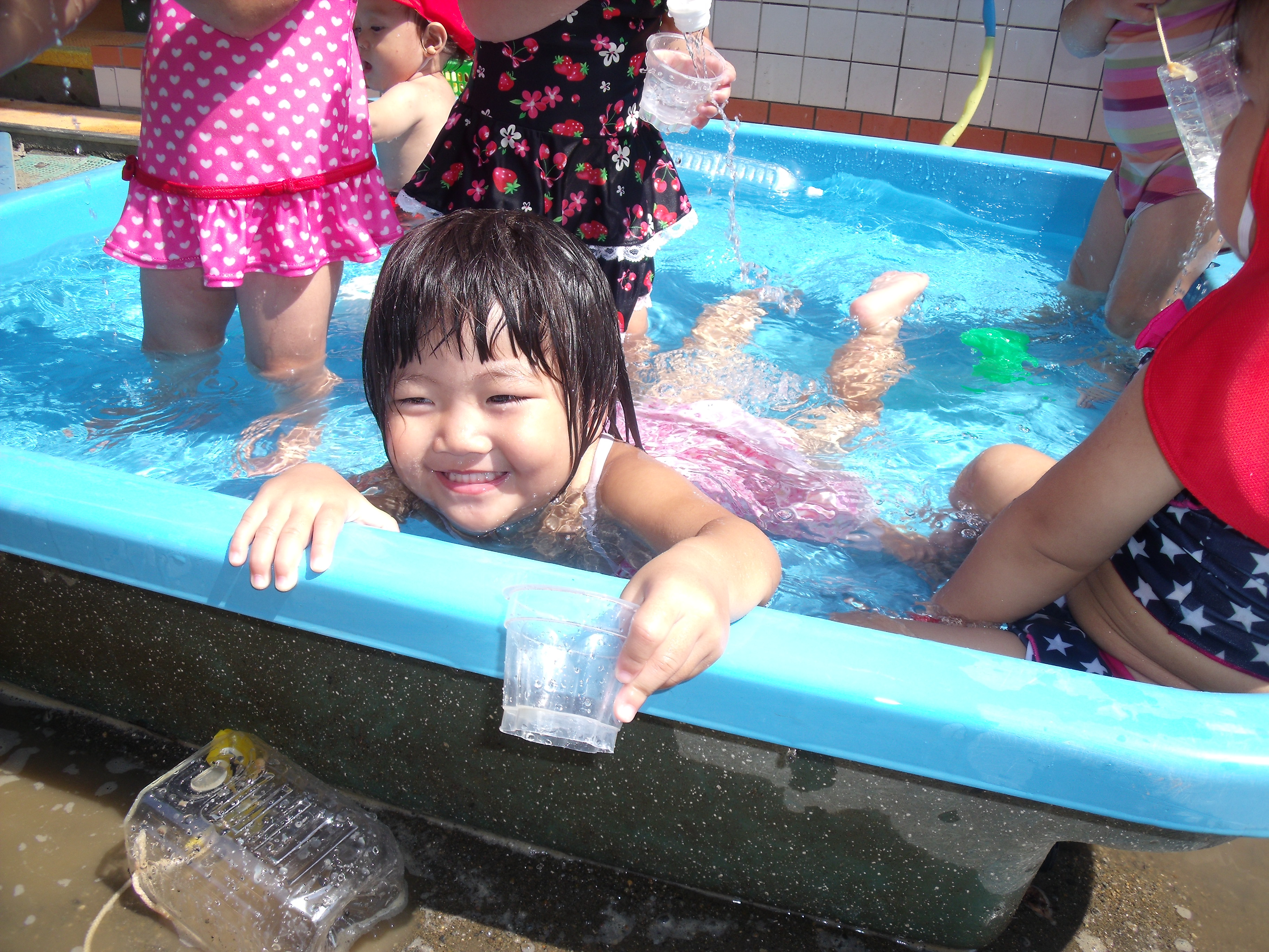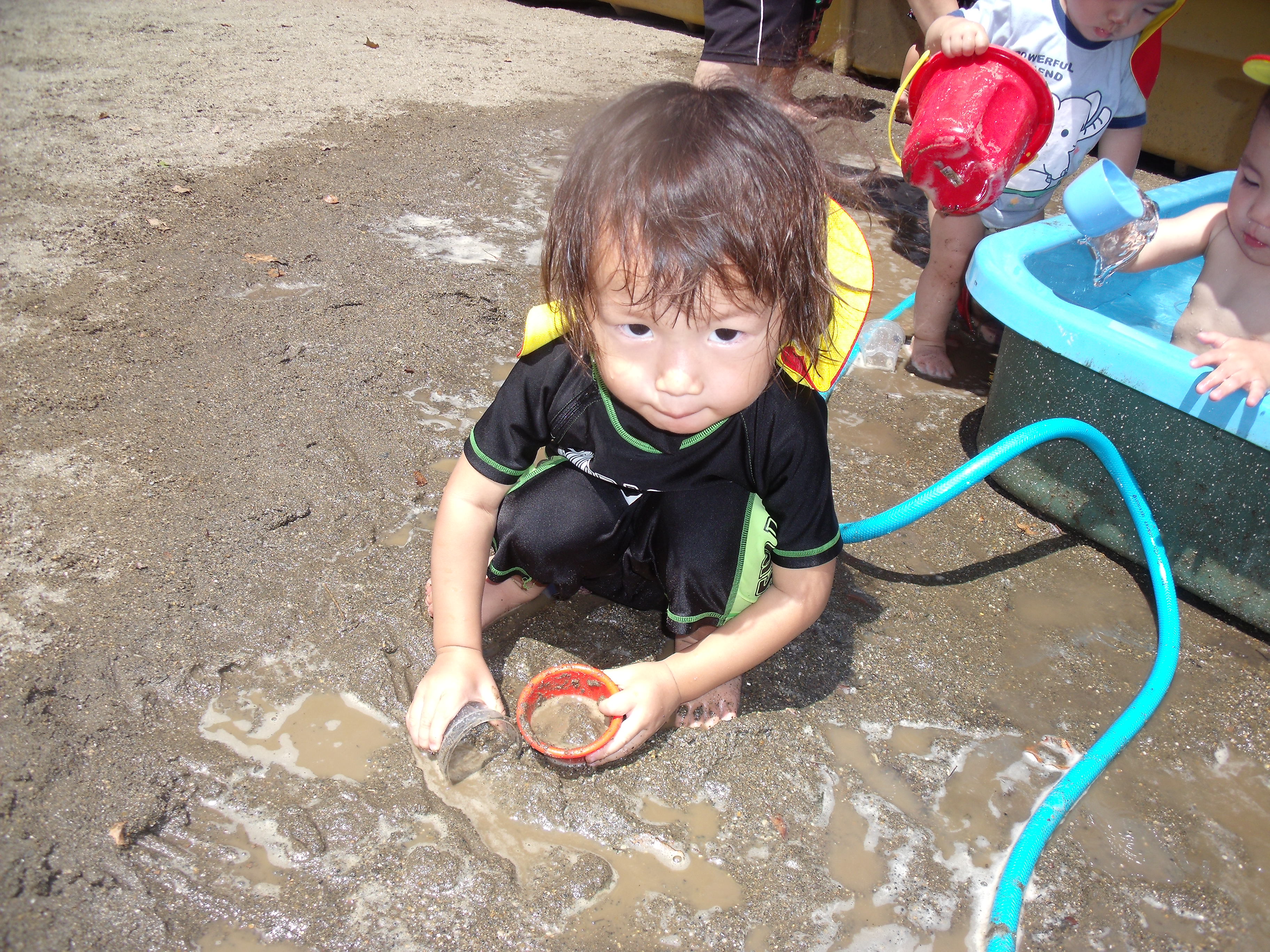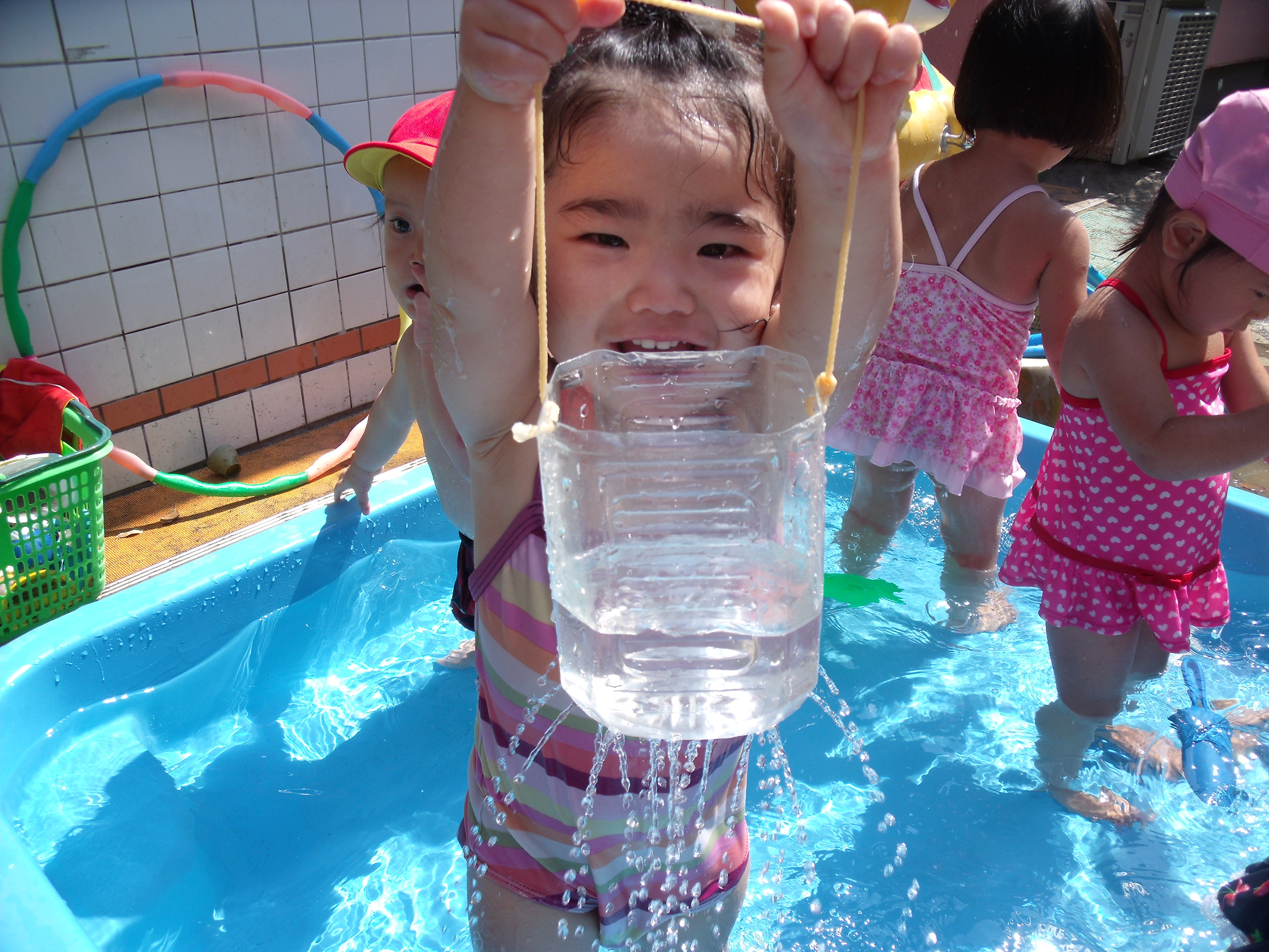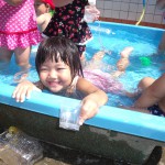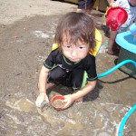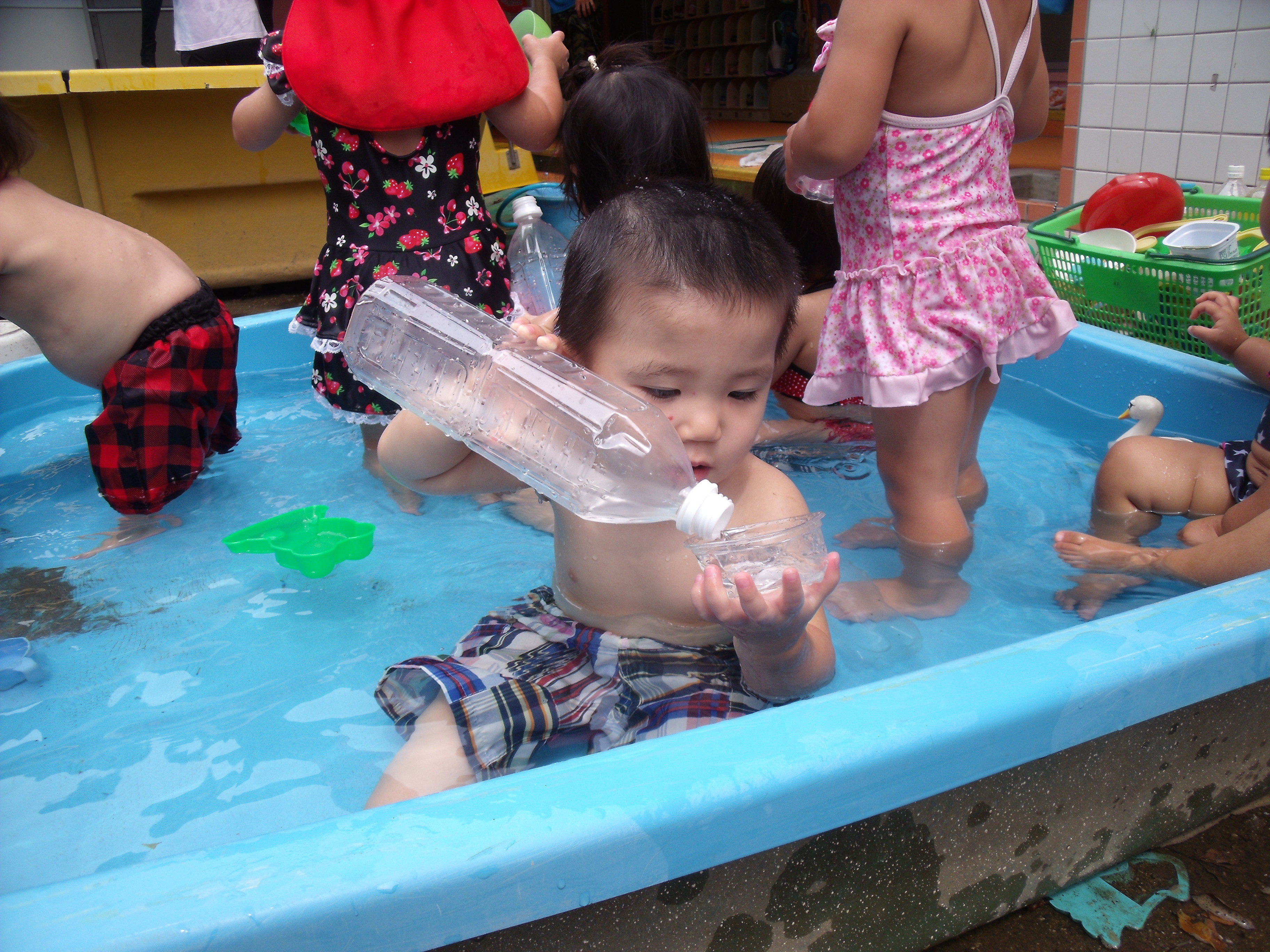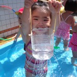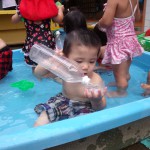 ペットボトルシャワーやカップで水を汲んだりこぼしたり・・・。