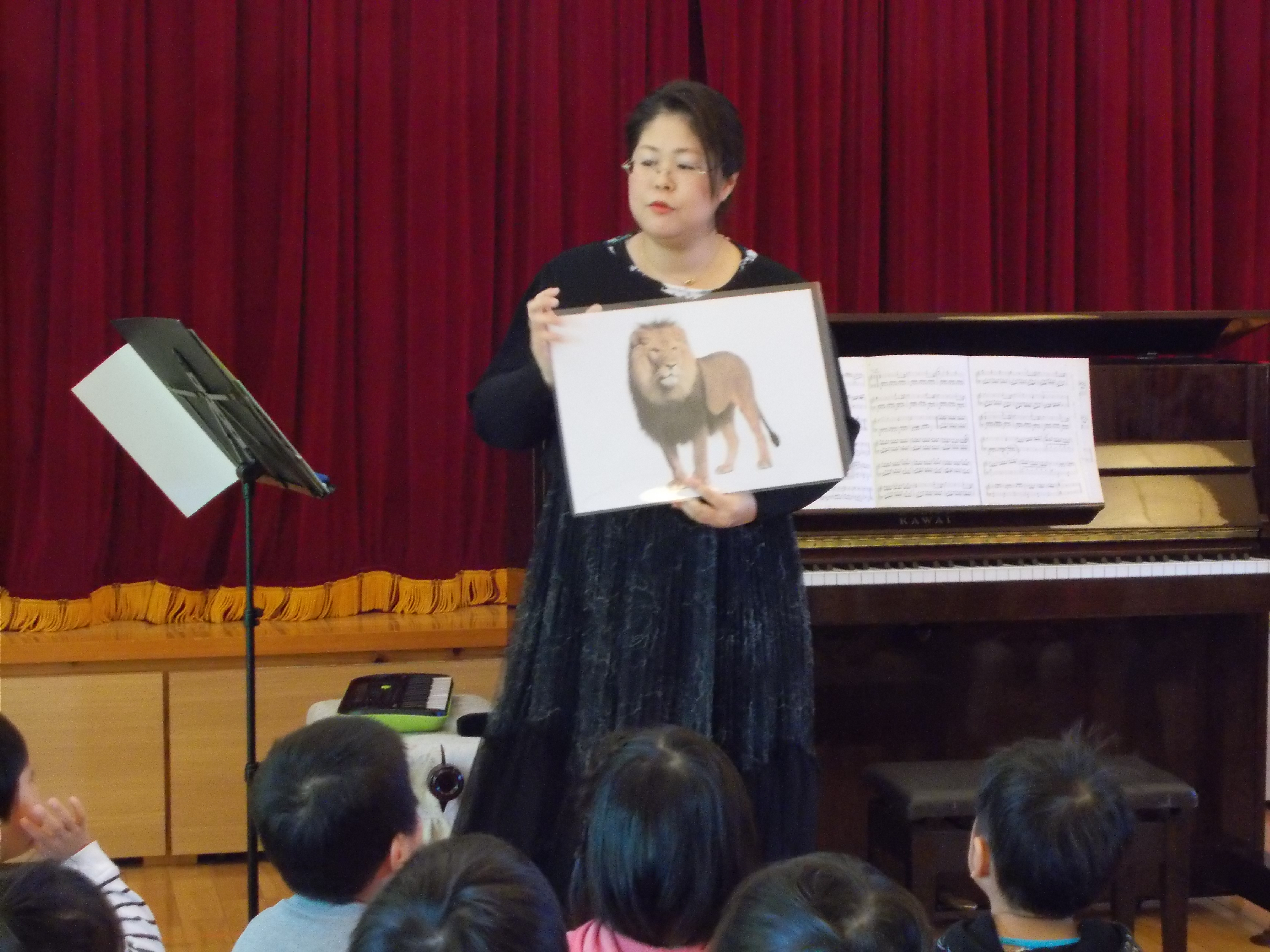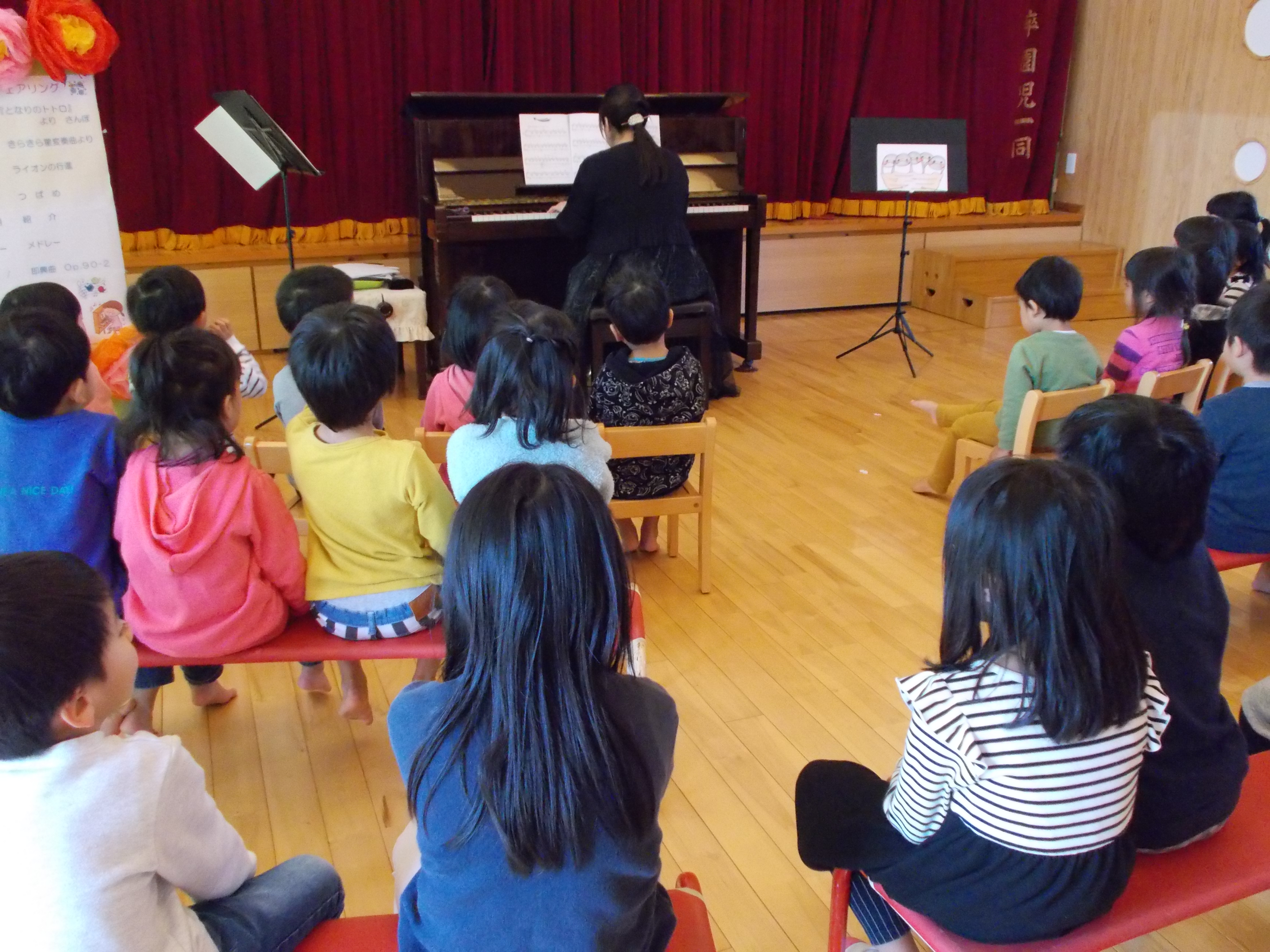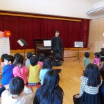 子どもたちの体が自然に左右に揺れたり、リズムをとったり手拍子したり、音楽を通して想像力や表現力が豊かになったようでした。ありがとうございました。