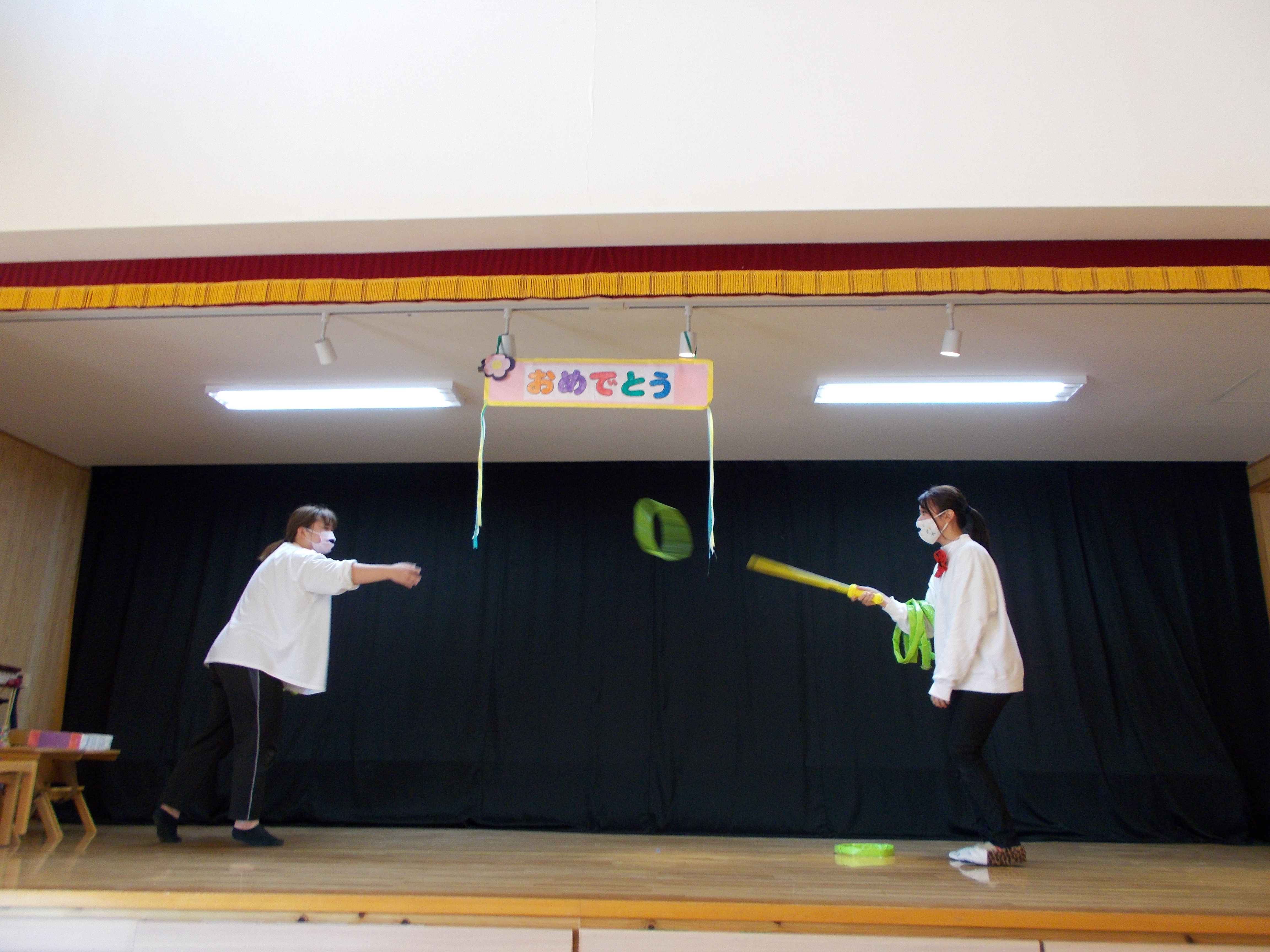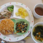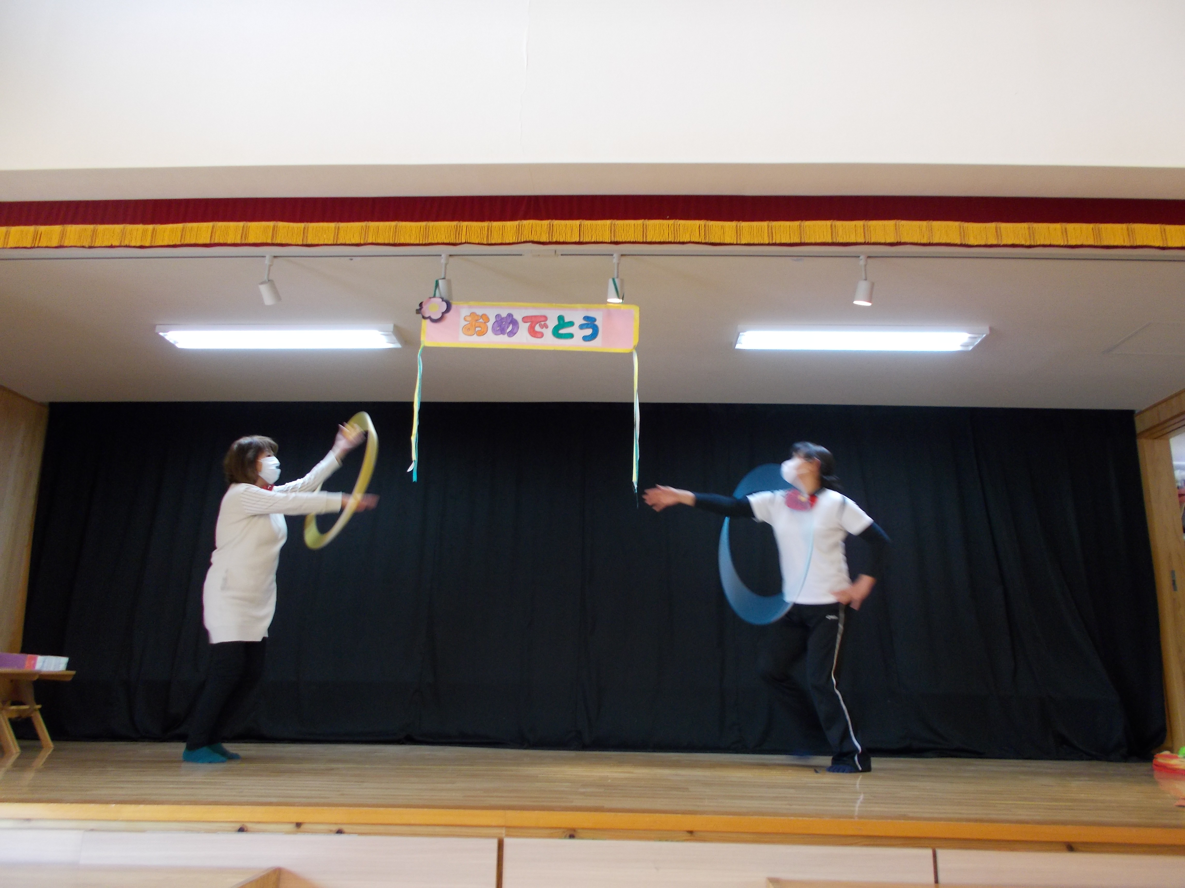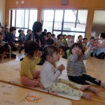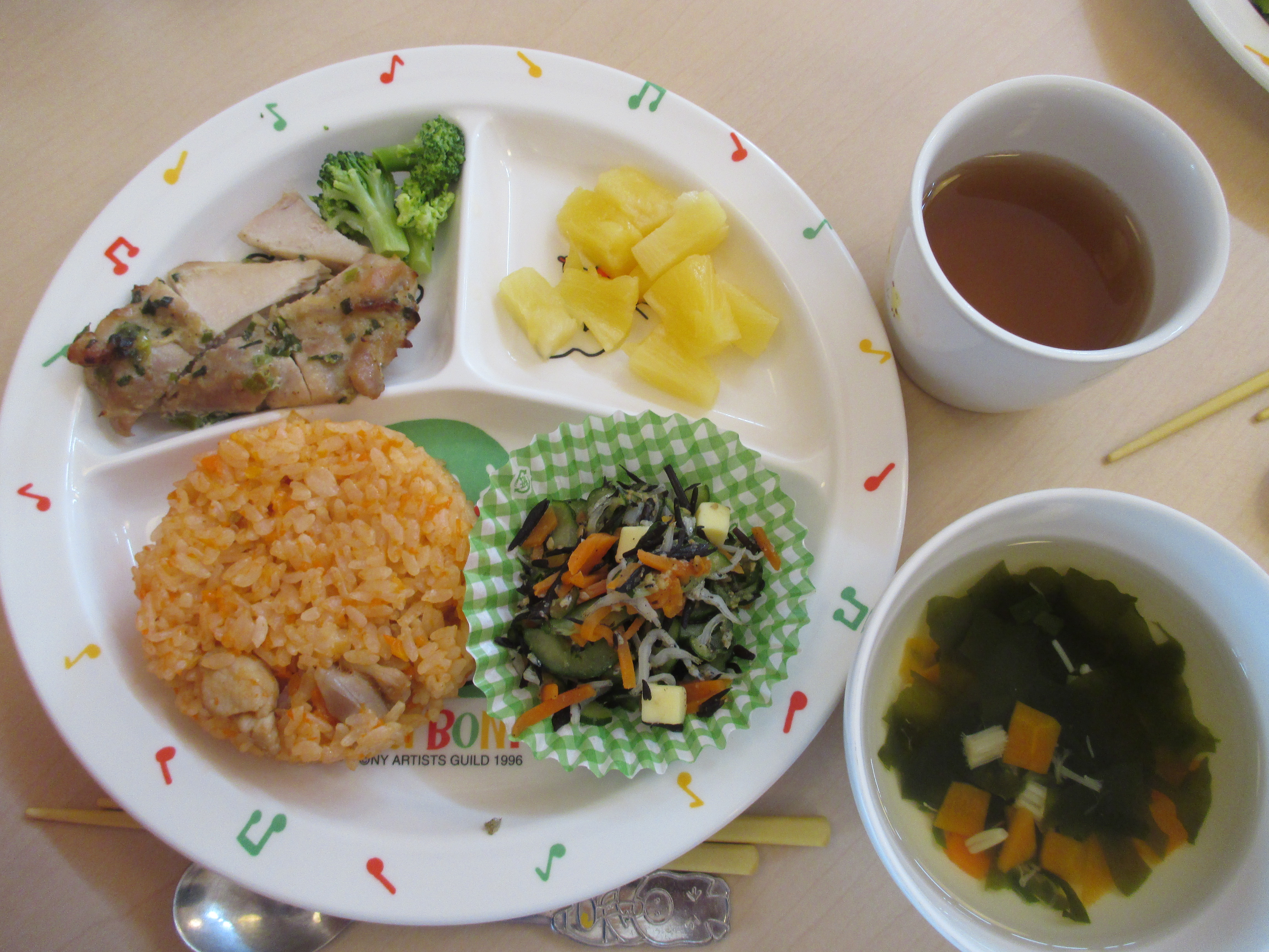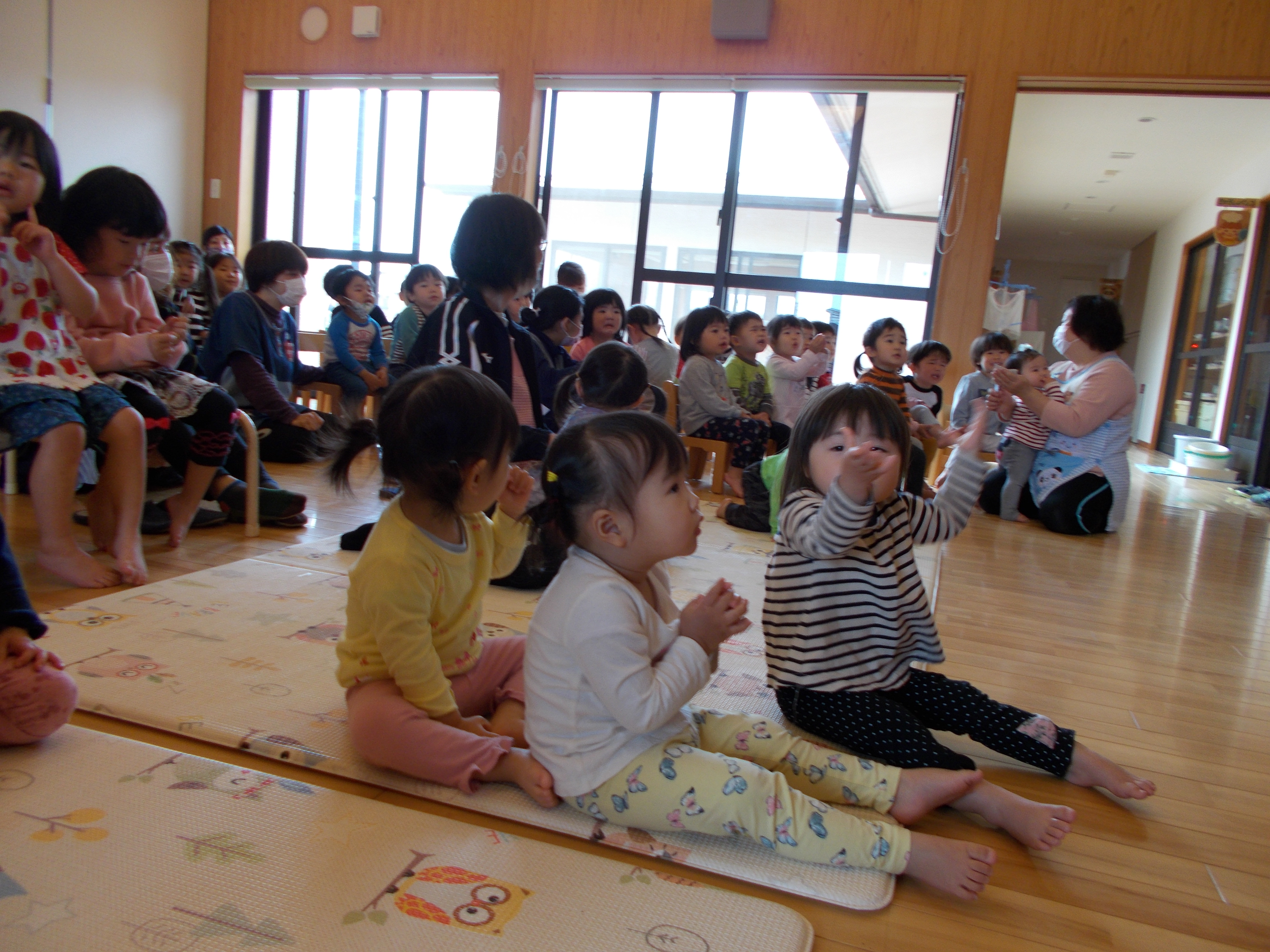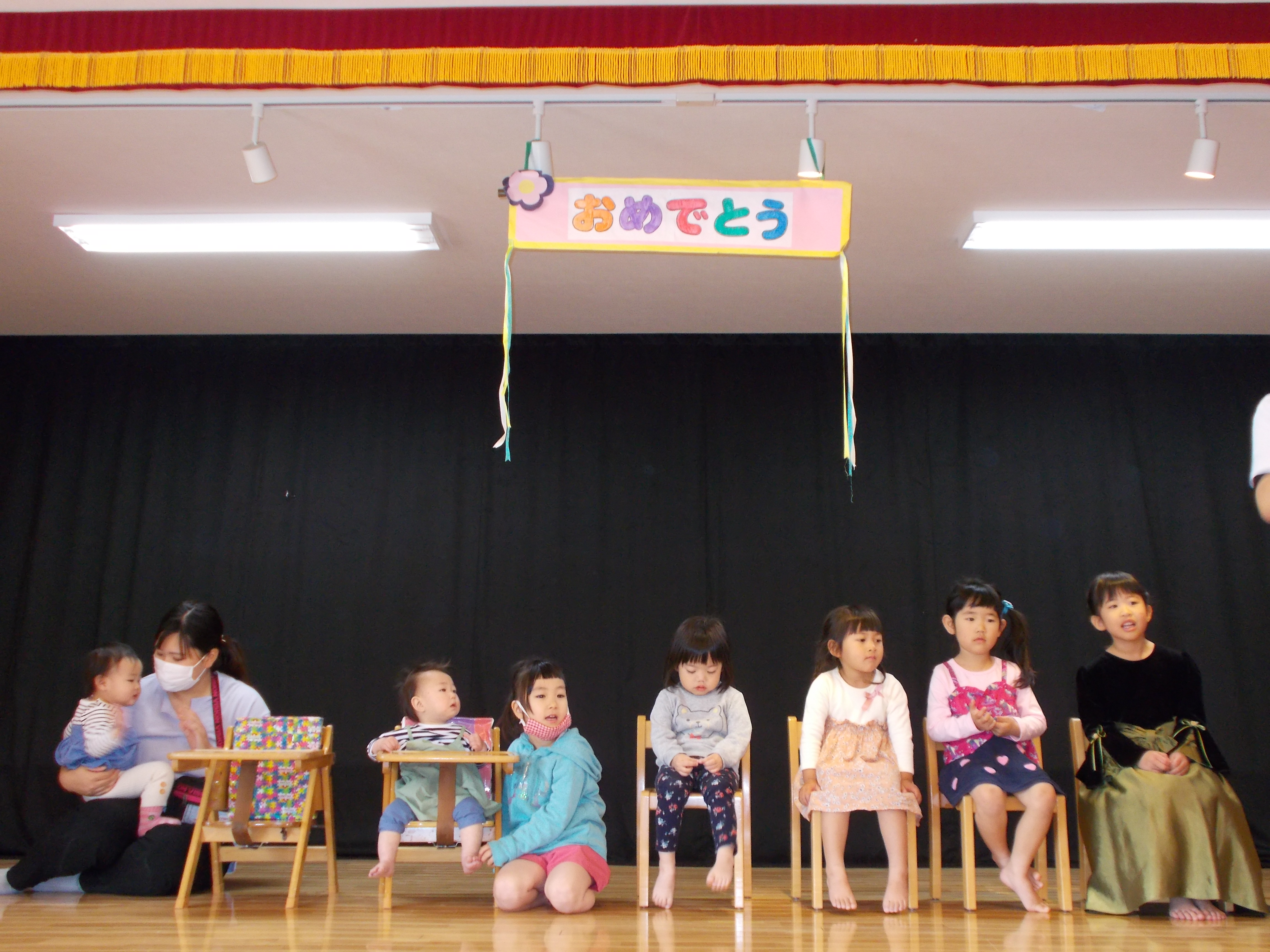 4月の誕生会 4月15日(水) 4月の誕生会がありました。 子ども達も一緒に手遊びを行い、誕生者をお祝いしました。職員による出し物はドリフターズ!!拍手しながら嬉しそうに見ていました。 誕生会メニューもおいしくいただきました。