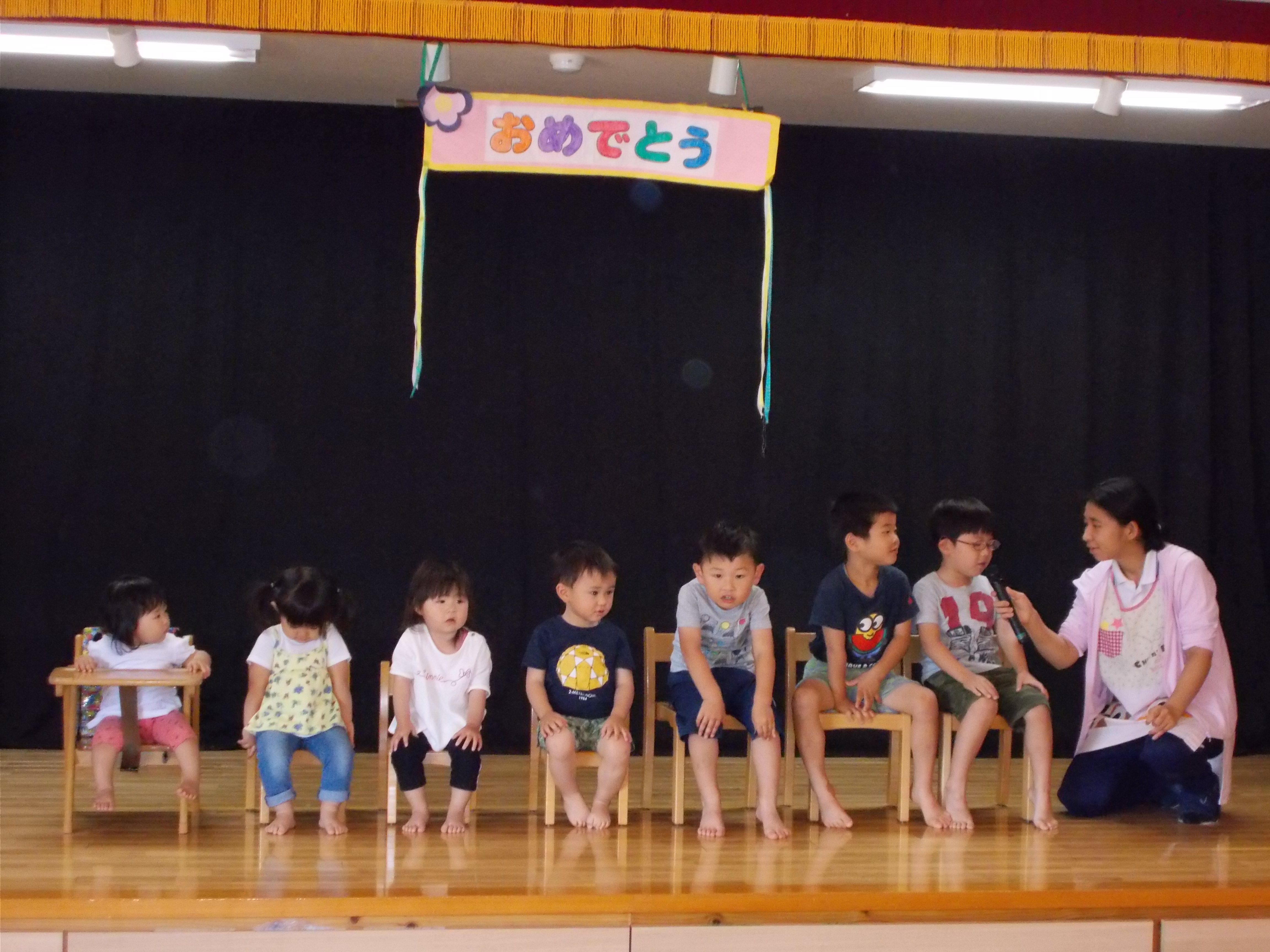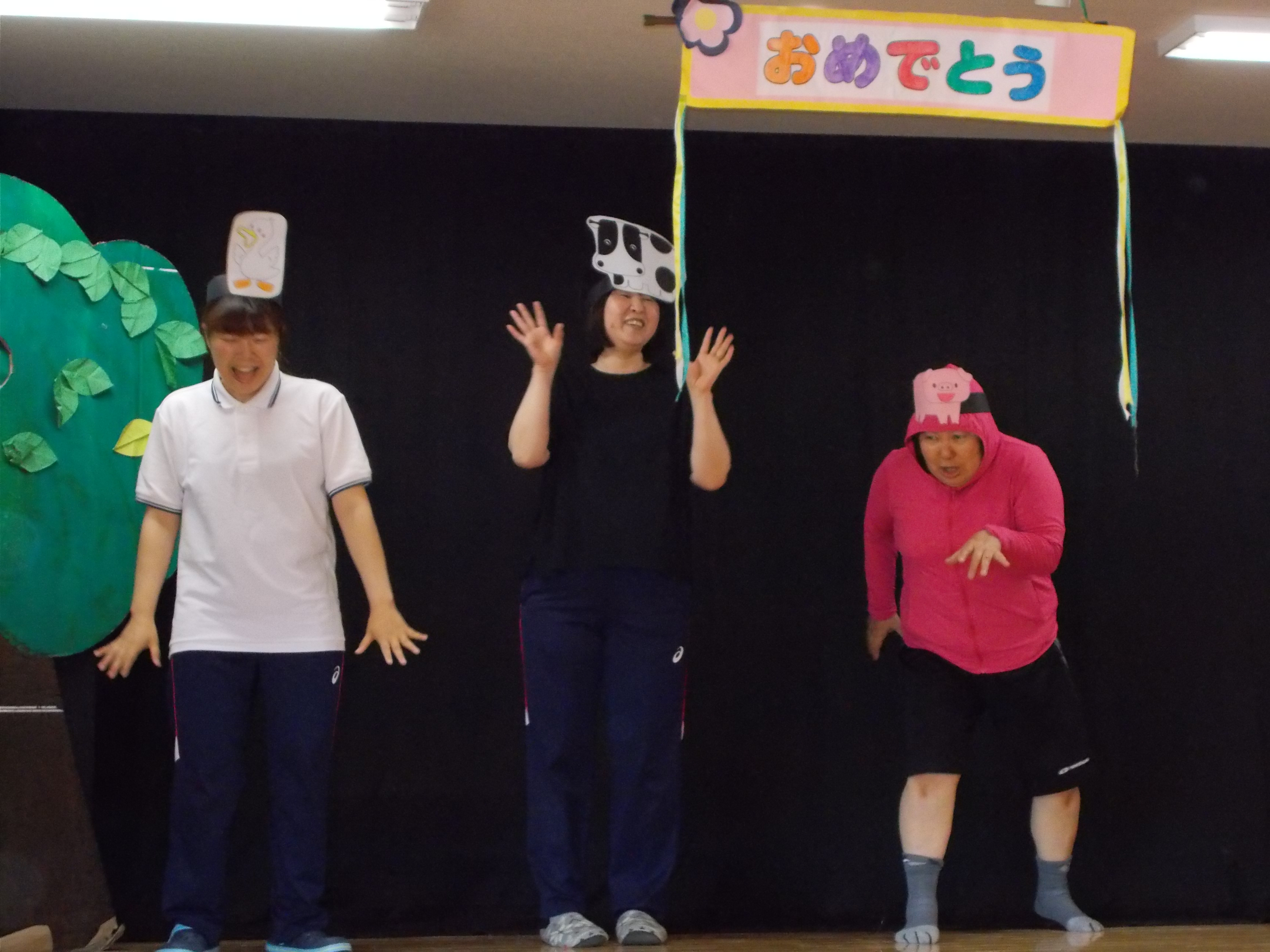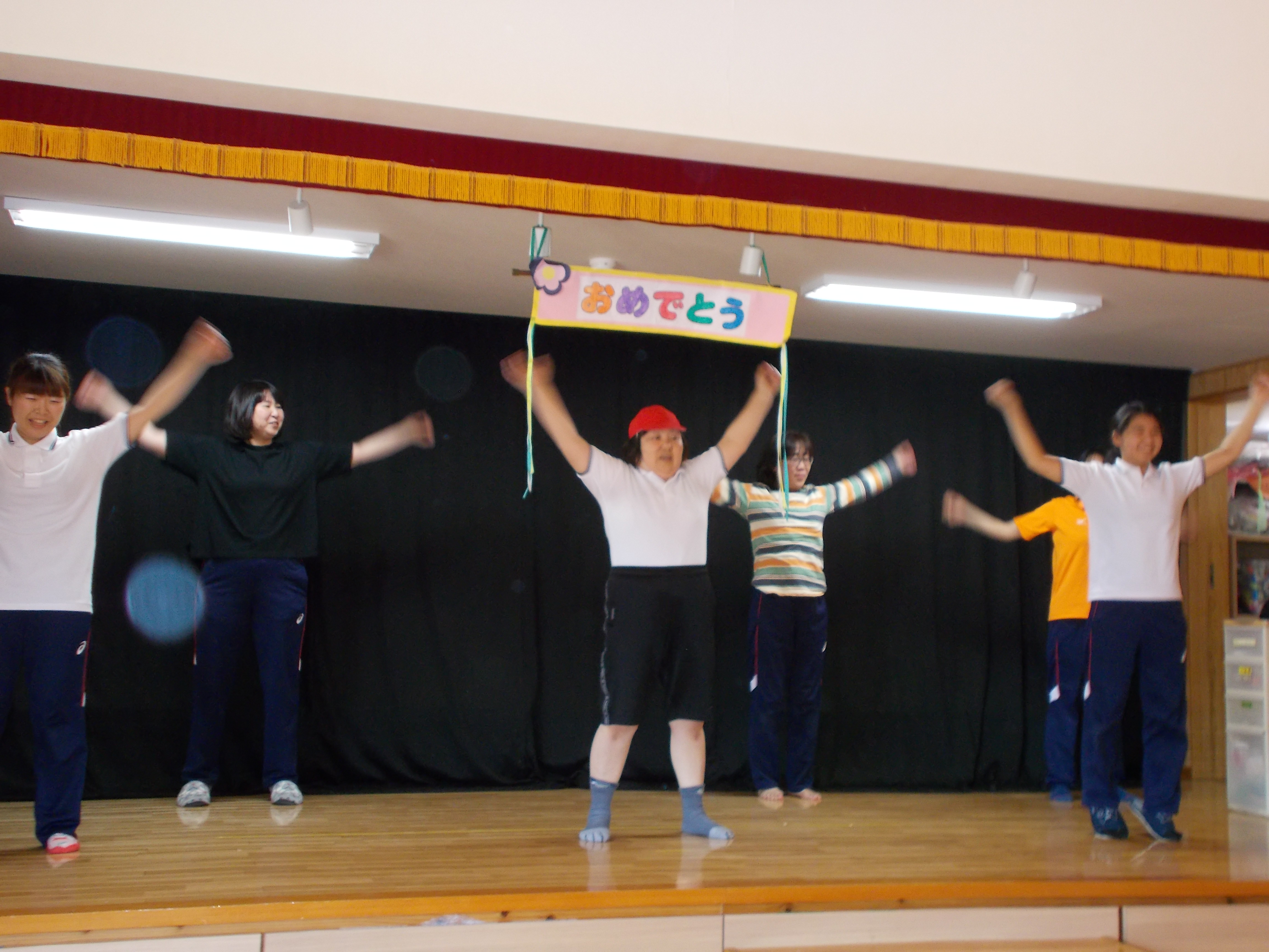 5月 誕生会 5月20日(水) 5月生まれの誕生会がありました。お誕生者は7名です。 職員によるマジックショーでは、なんと!!ティッシュペーパーがうどんに変わり、みんなびっくり!!その後も「ゆかいな牧場の動物たち」の劇や東北弁によるラジオ体操をみんなで楽しみました。 バースデイランチもモリモリおいしくいただきました。
