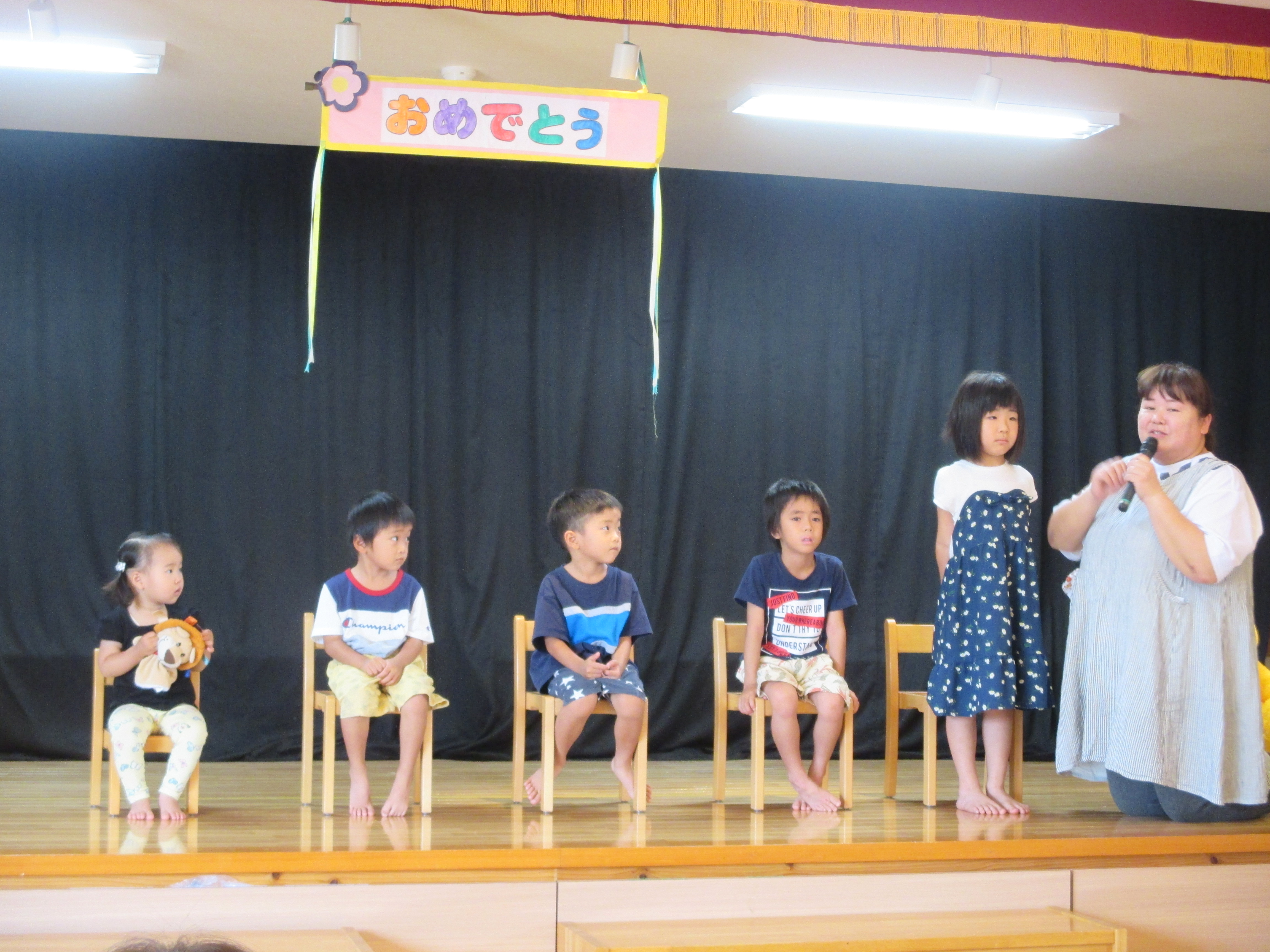 6月の誕生会が行われました。誕生者のお友だちは一つ大きくなりうれしそうでしたよ。