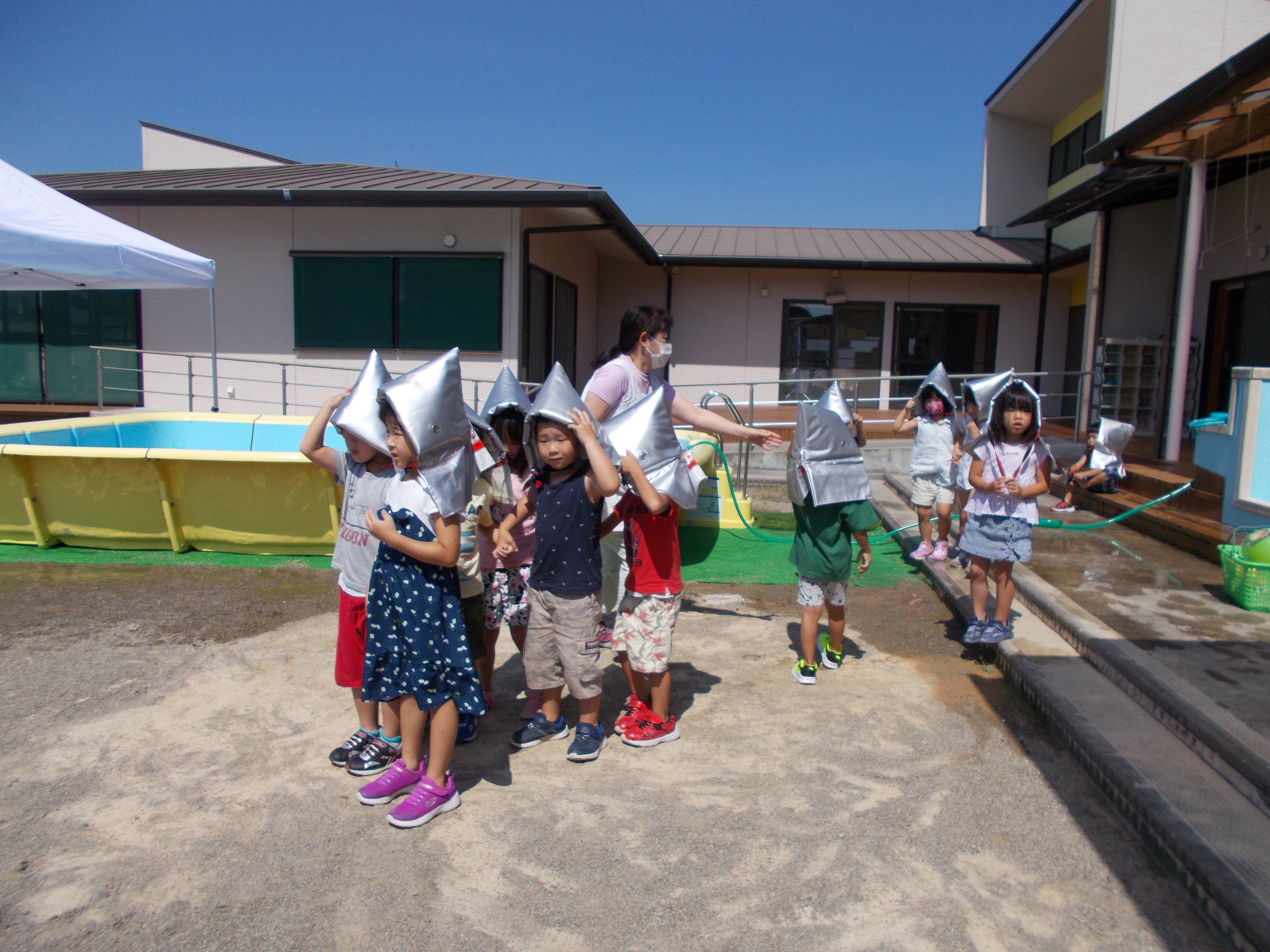 活動中(プール遊び)での火災想定でしたが、職員の指示をしっかり聞き落ち着いて避難することができました。