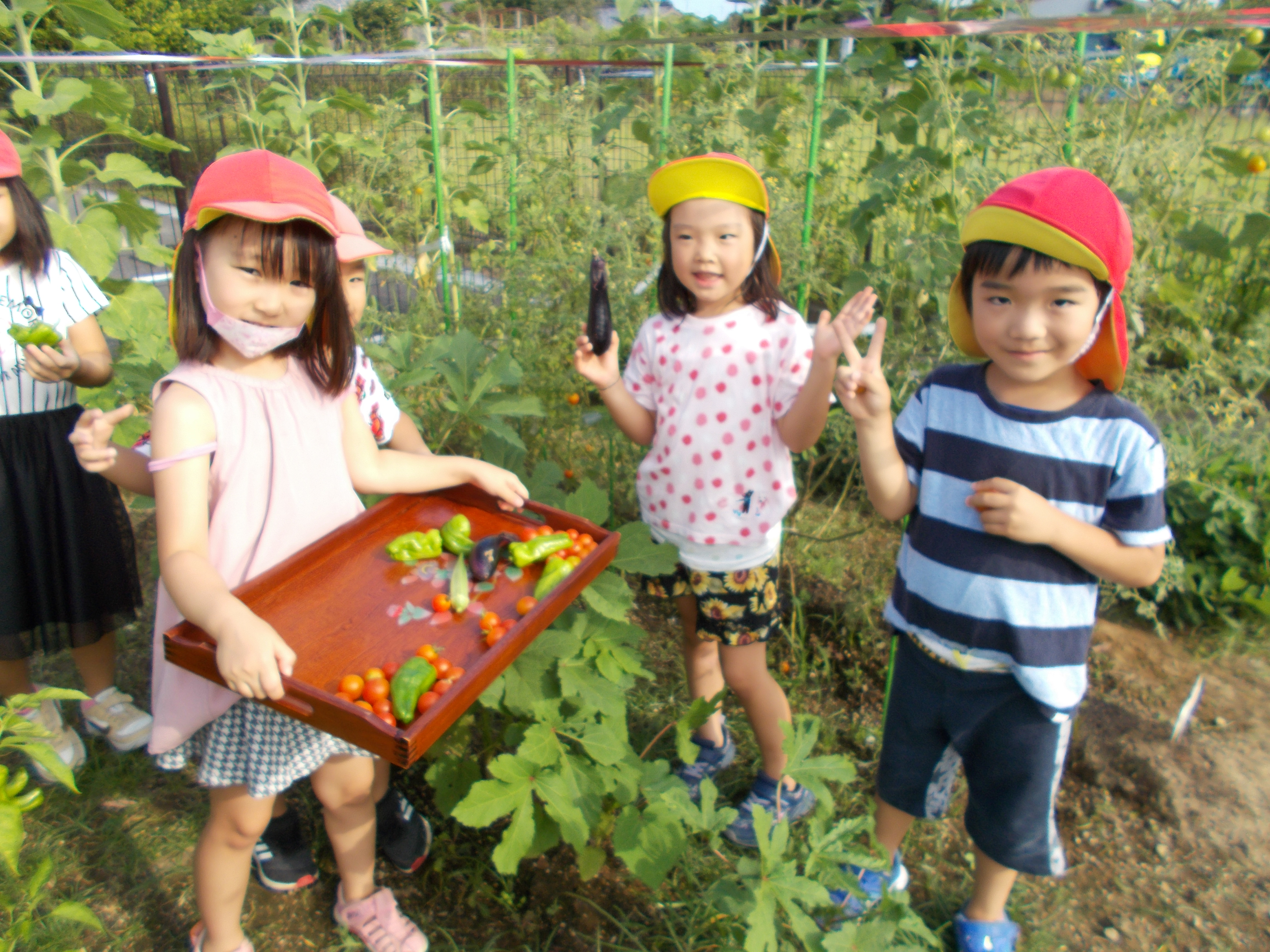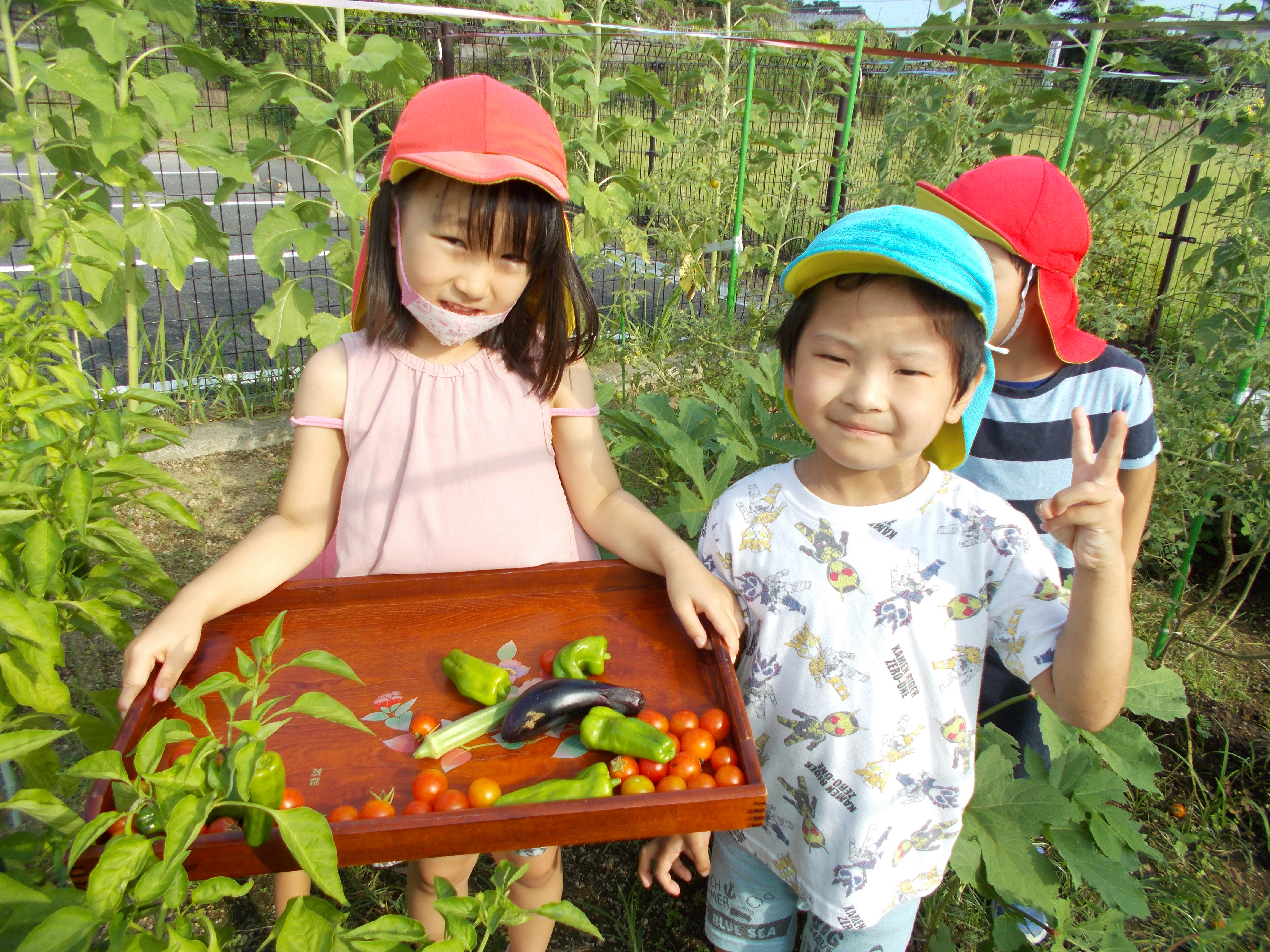 トマト、なす、ピーマン・・・とたくさん収獲できました。