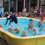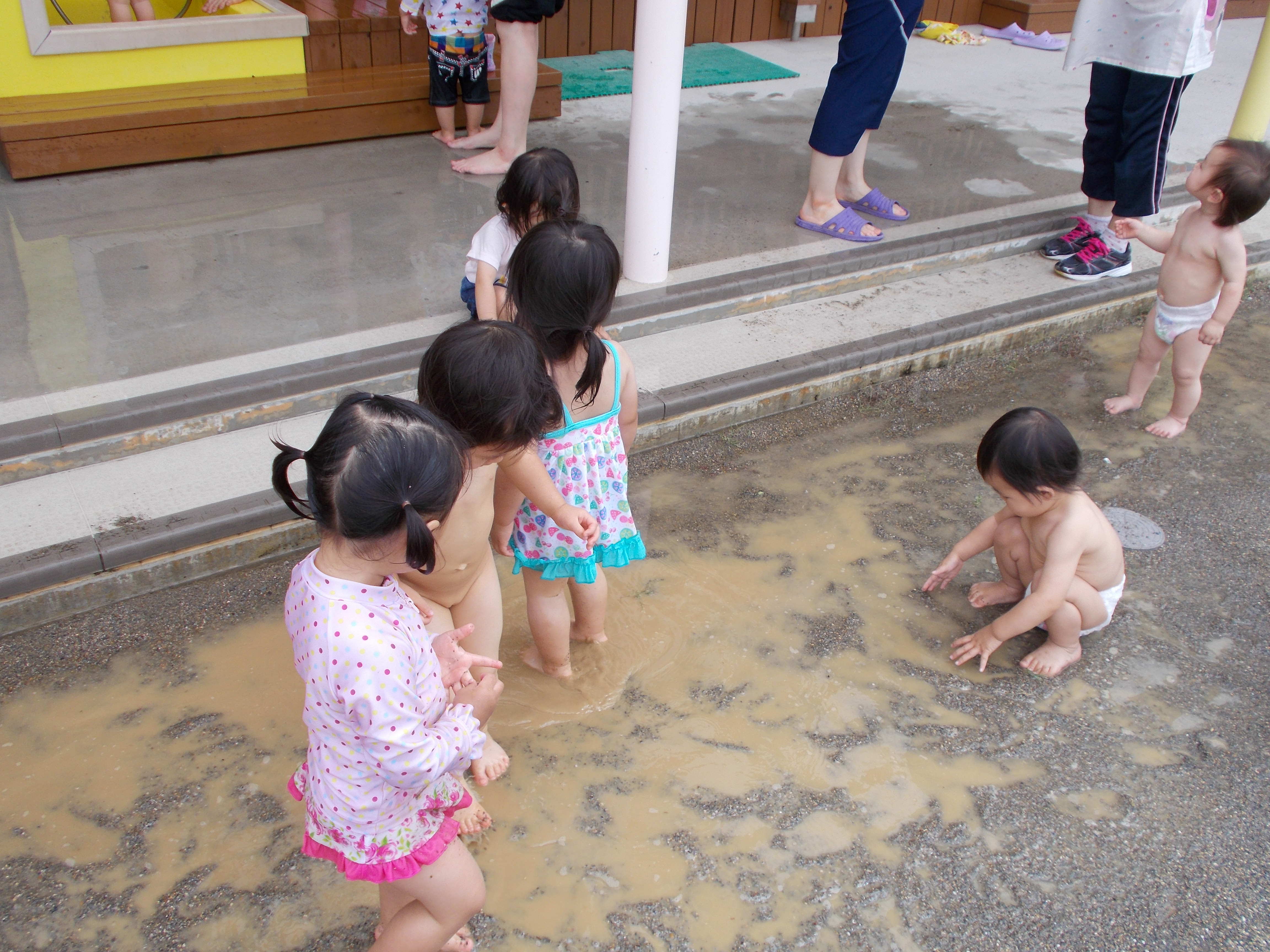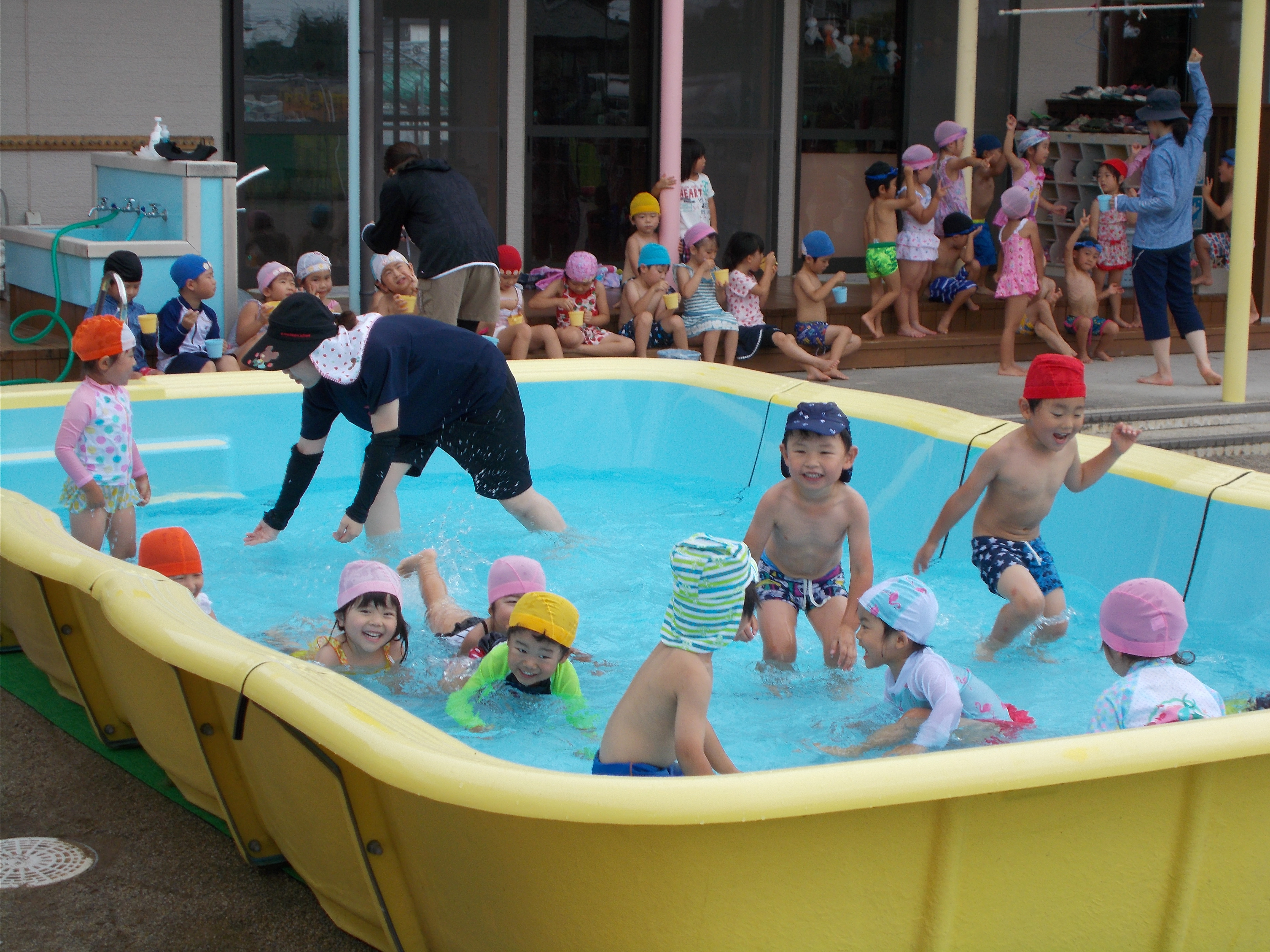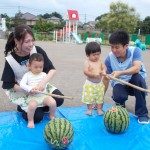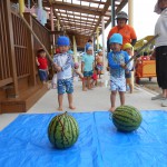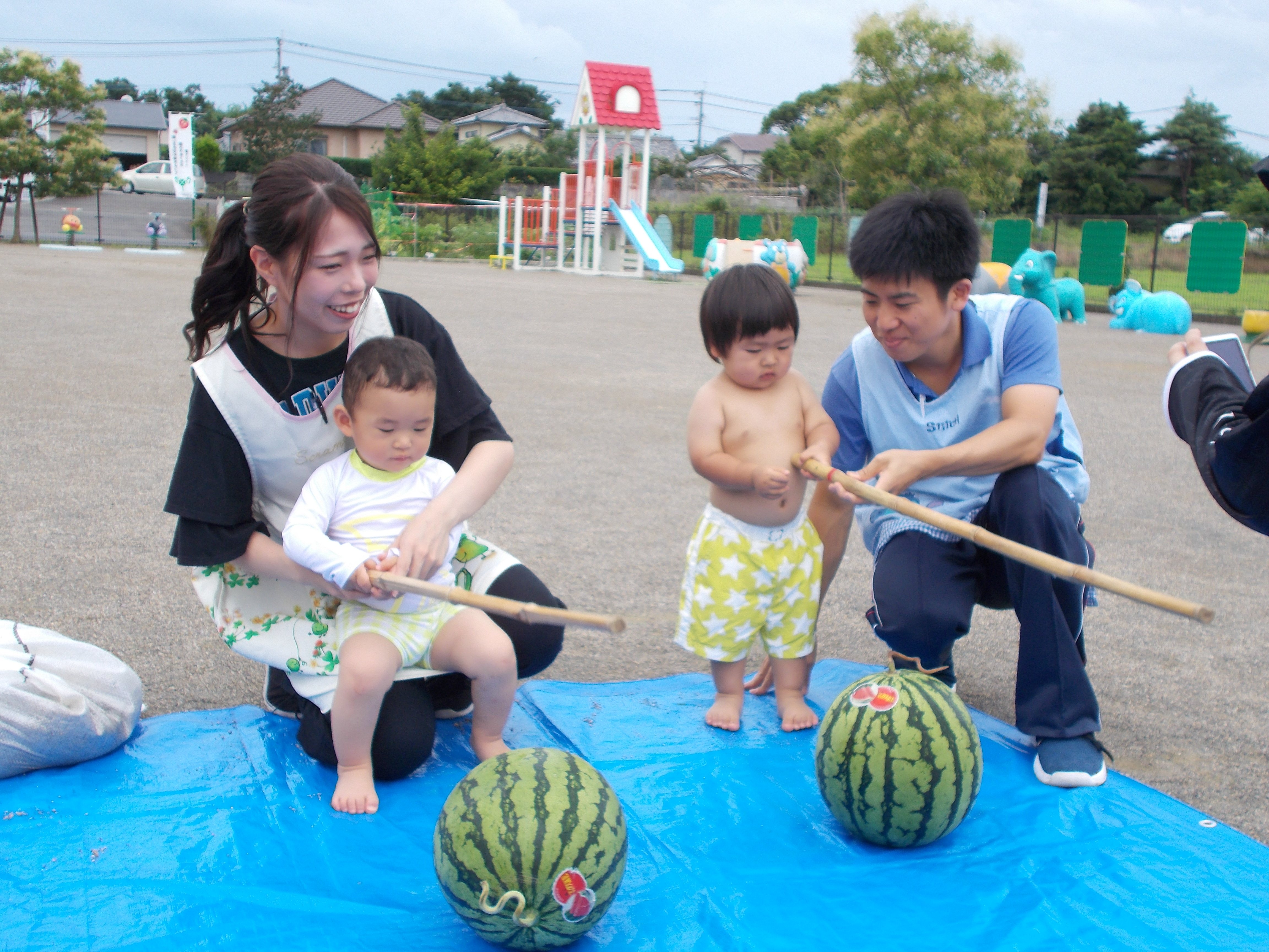 ちょっぴり天気がいまいちでしたが、子ども達はスイカ割りをしたり初プールに入り水しぶきをあげてプール遊びを楽しみました。