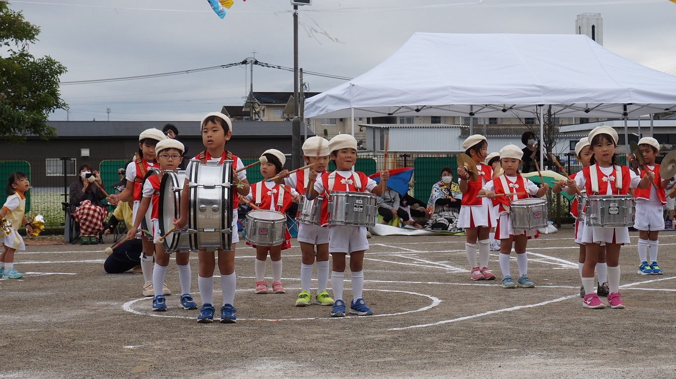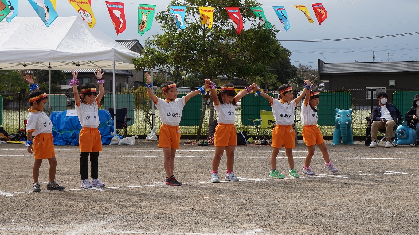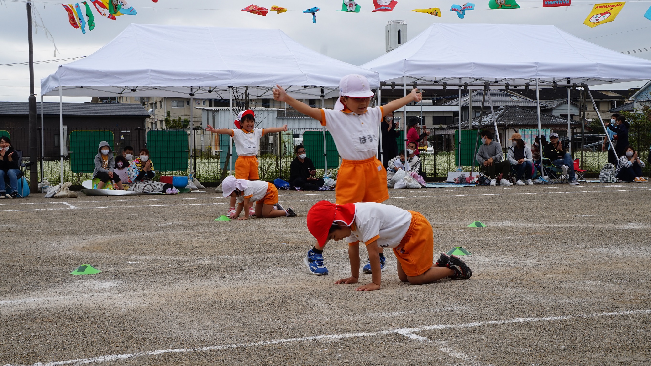 運動会 10月18日(日) 今年度の運動会は、新型コロナウイルス感染症のため規模を縮小しての開催となりました。 以上児のみの参加となりましたが、天気にも恵まれ子どもたちはのびのびと練習の成果を発揮していましたよ。