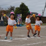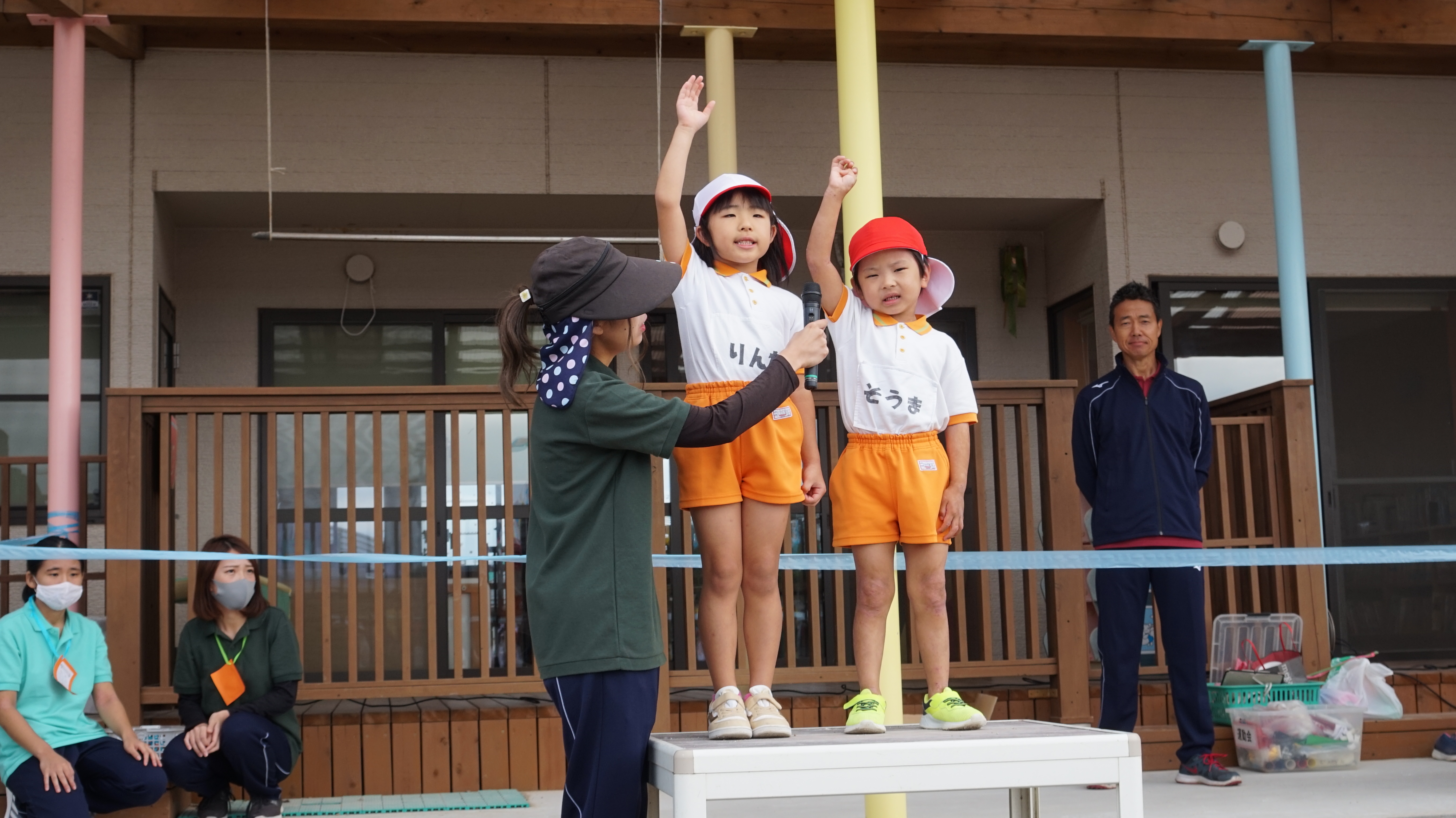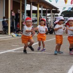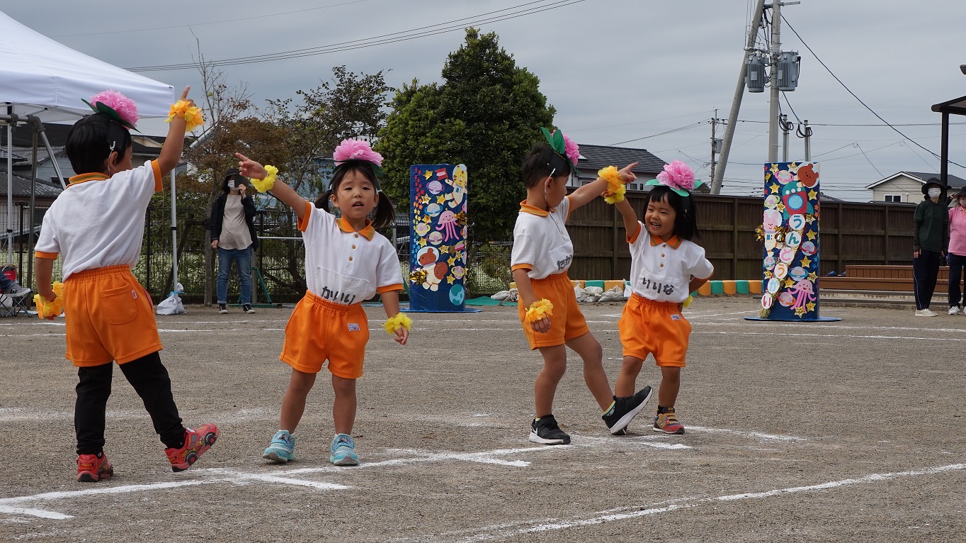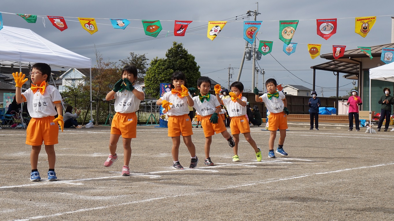 運動会 10月18日(日) 今年度の運動会は、新型コロナウイルス感染症のため規模を縮小しての開催となりました。 以上児のみの参加となりましたが、天気にも恵まれ子どもたちはのびのびと練習の成果を発揮していましたよ。
