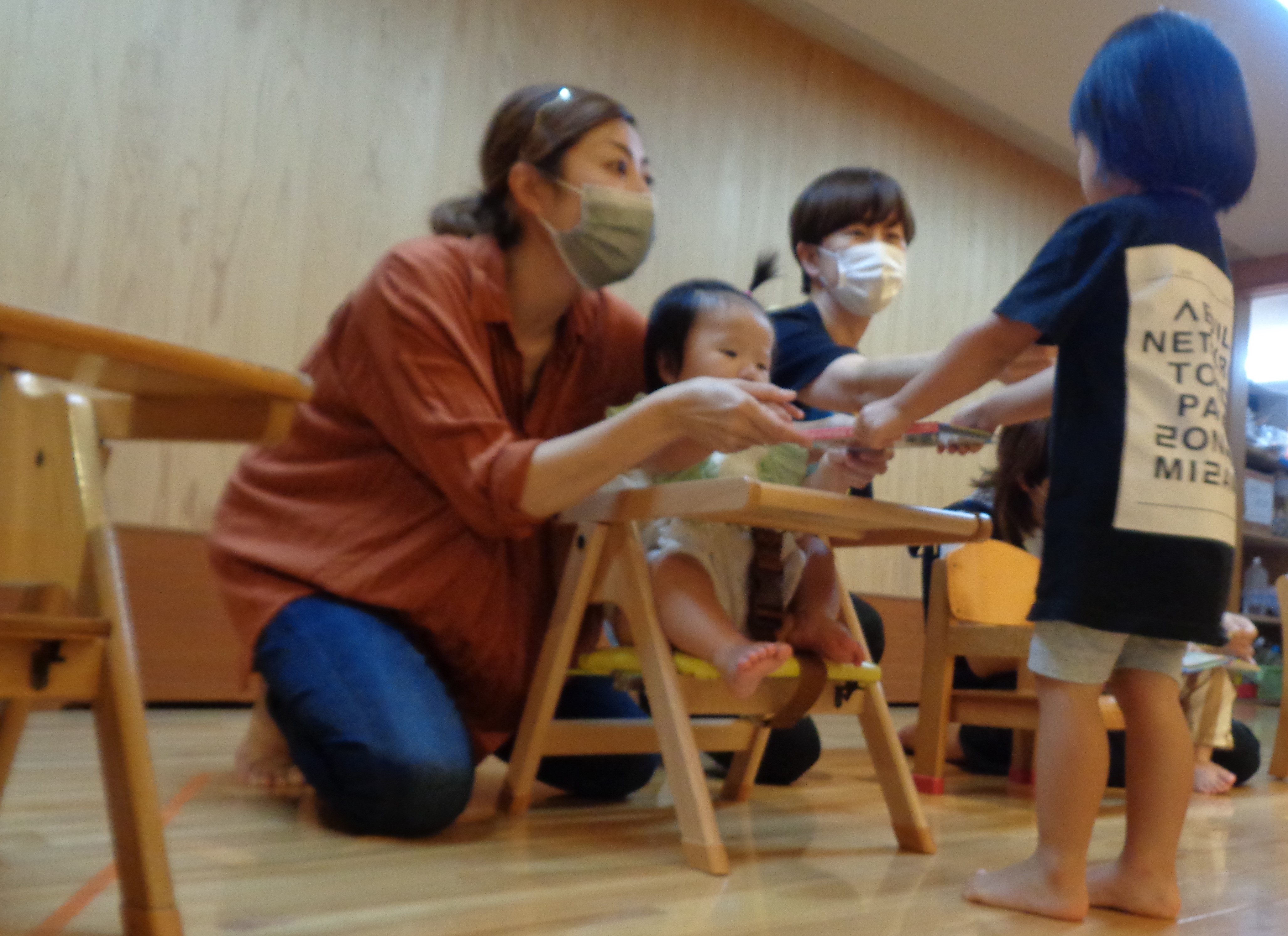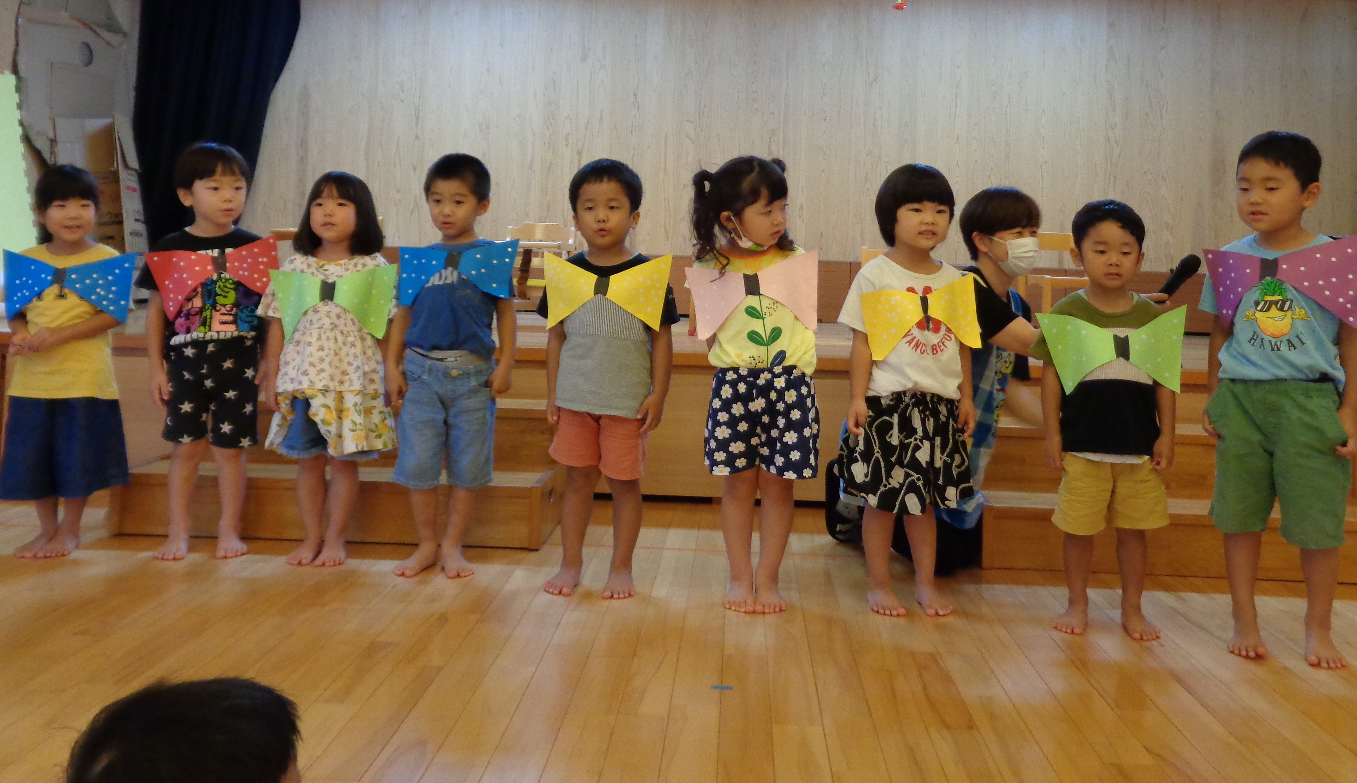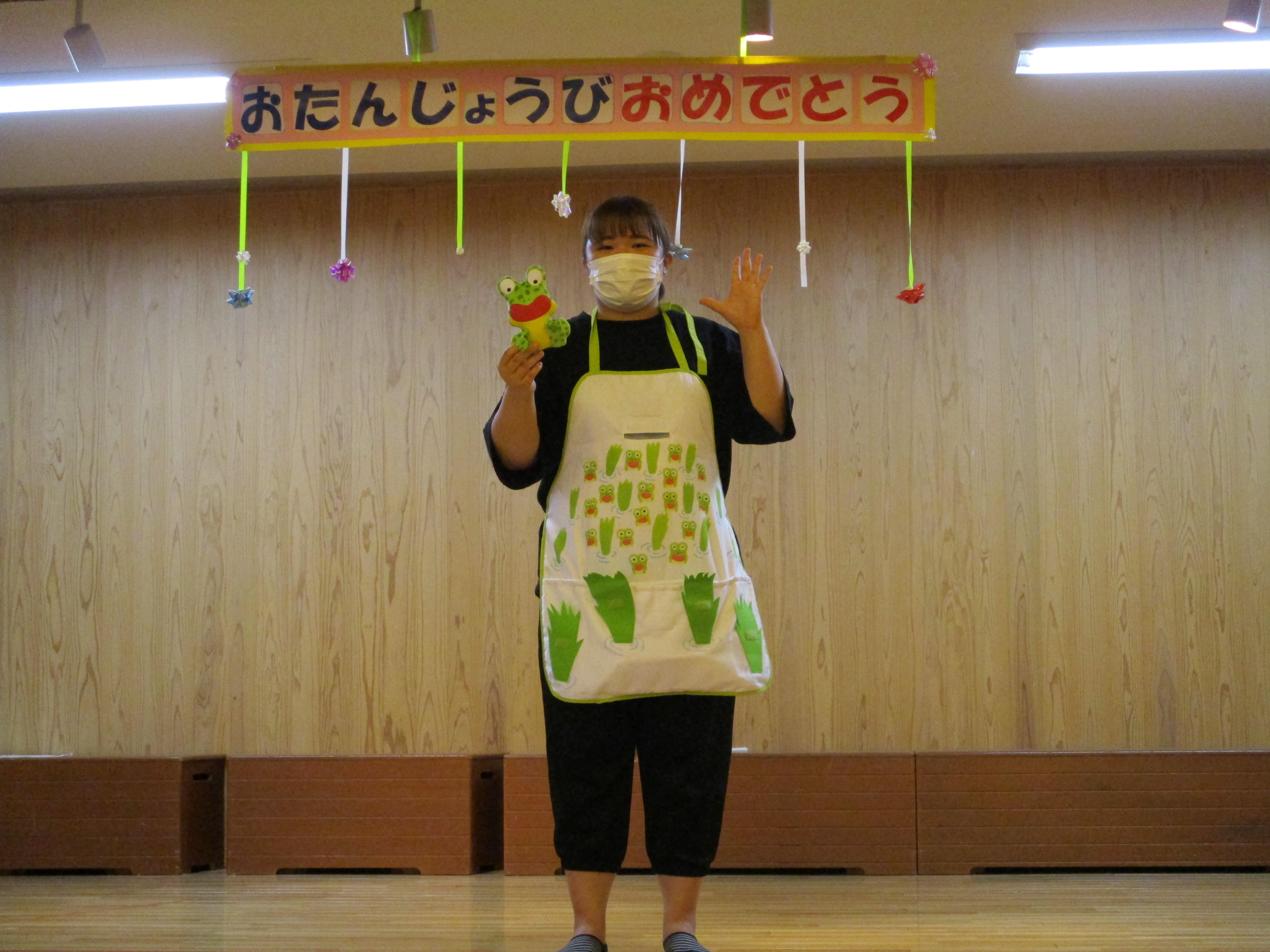 園児からの歌のプレゼントや夏野菜を使ったスタンプあそびと、参加型の誕生会で盛り上がりました。