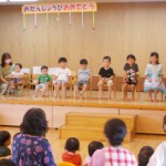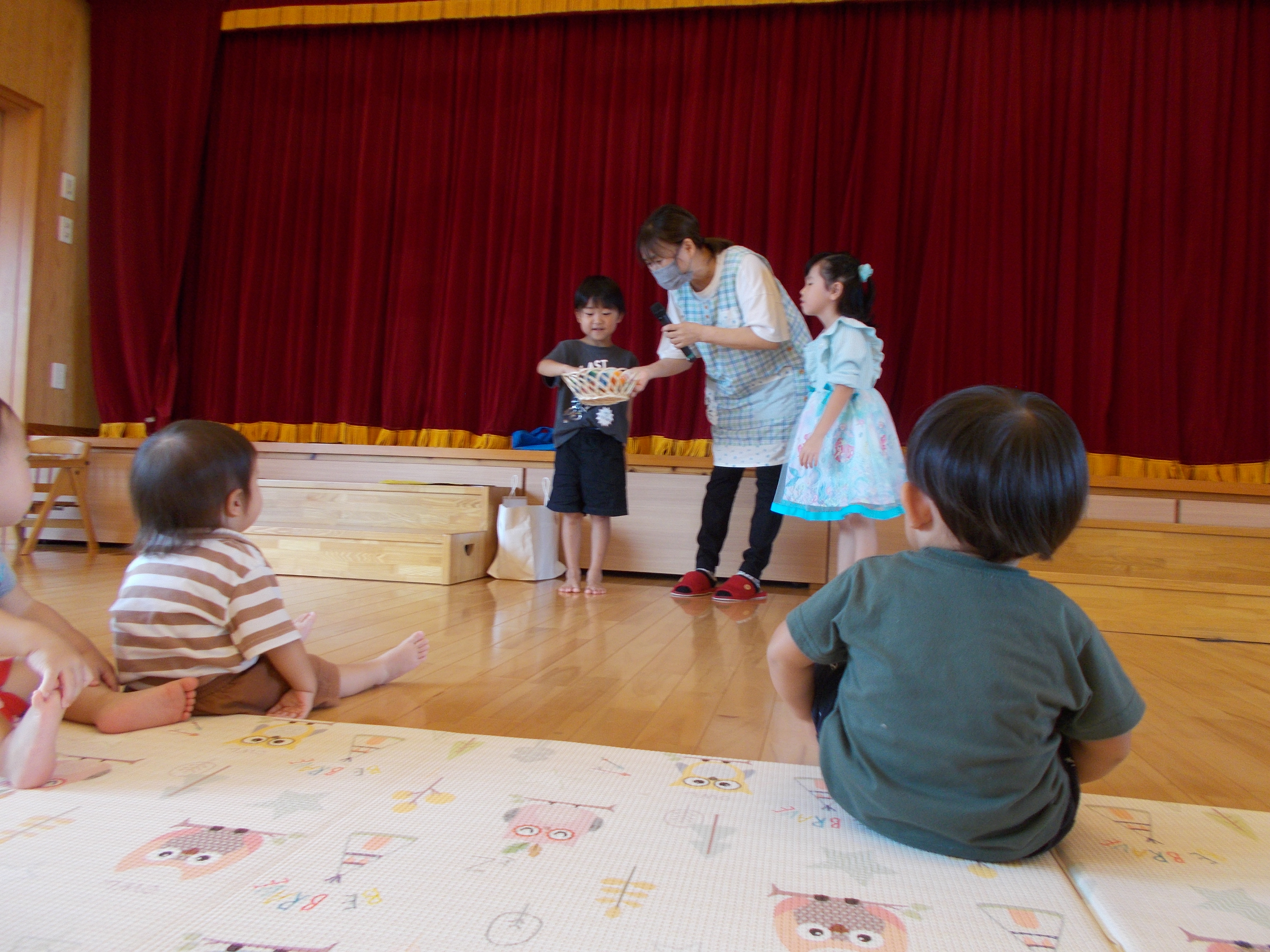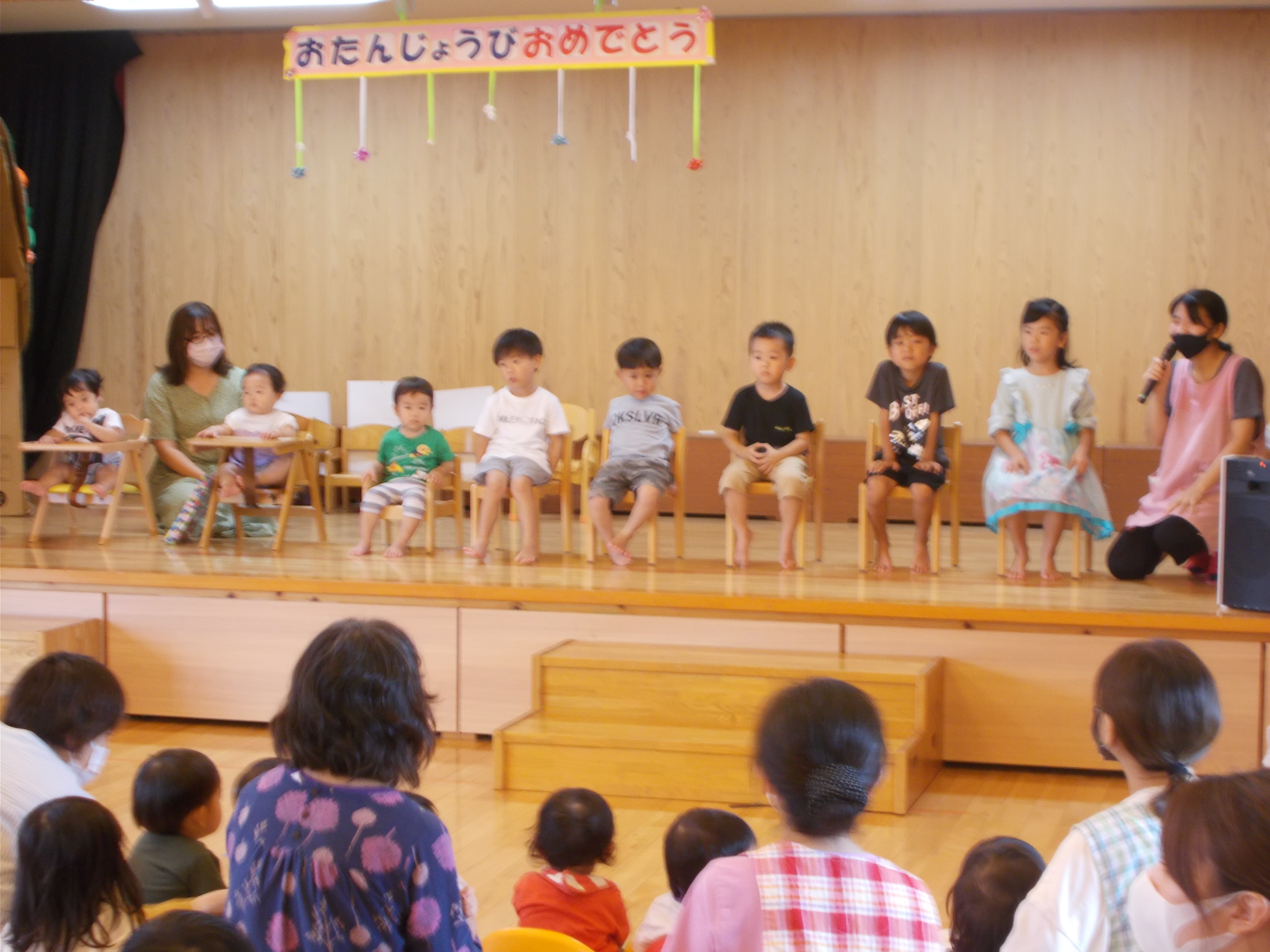 9月 誕生会 9月15日(水) みんなにお祝いの言葉をもらって、恥ずかしそうにはにかむ9月生まれのお友達。 恥ずかしそうにしながらも、はっきりと名前や年齢を言うことができてとても頼もしく感じられました。 みんなの成長がこれからも楽しみです(*’ω’*) 誕生者の子ども達にとって、楽しい1年になりますように…