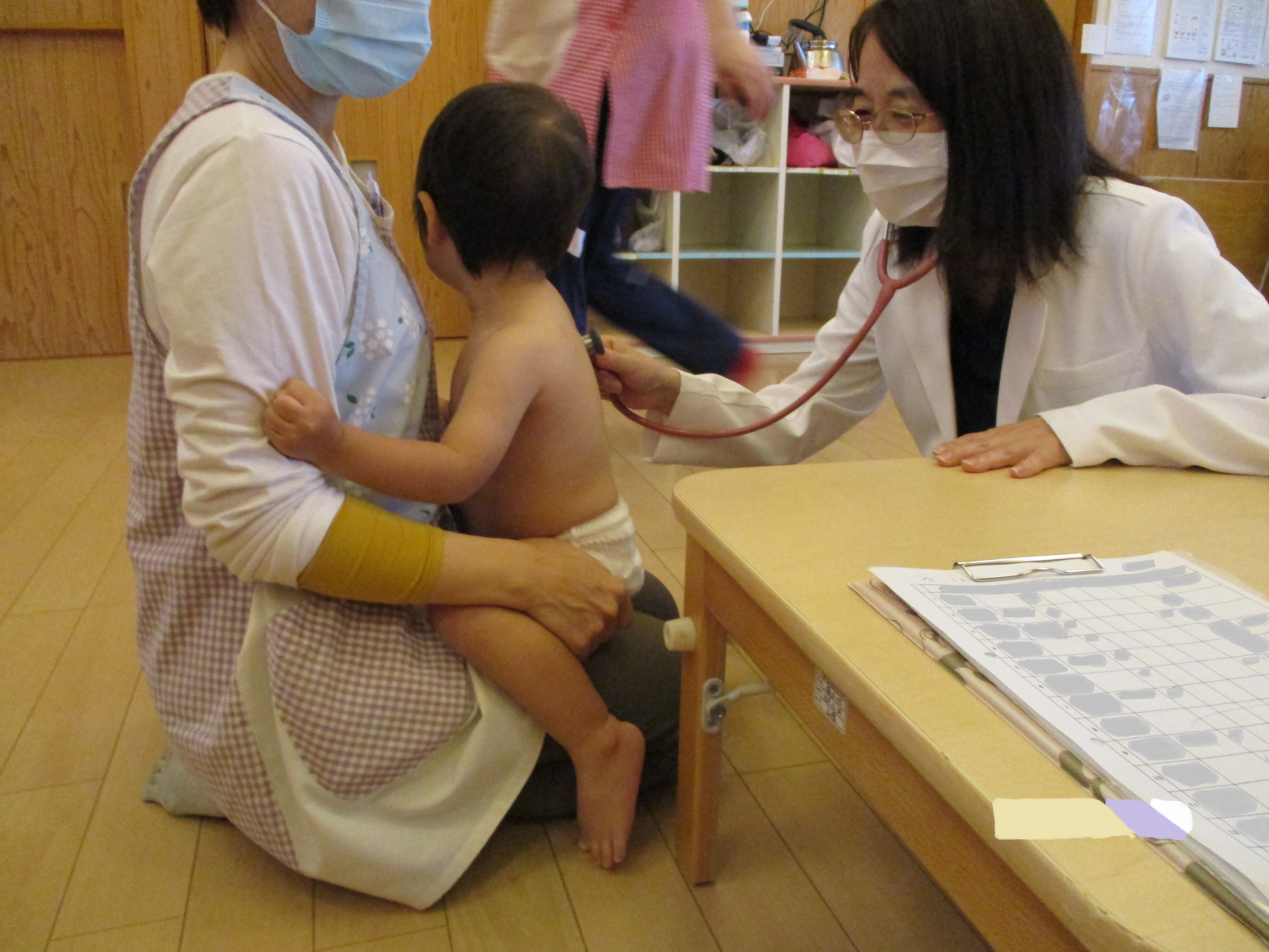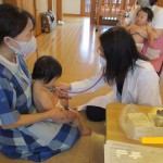 順番が来るまでドキドキしていた子ども達でしたが、小児科の先生に微笑み掛けられながら、一人ひとり丁寧に診てもらいました。