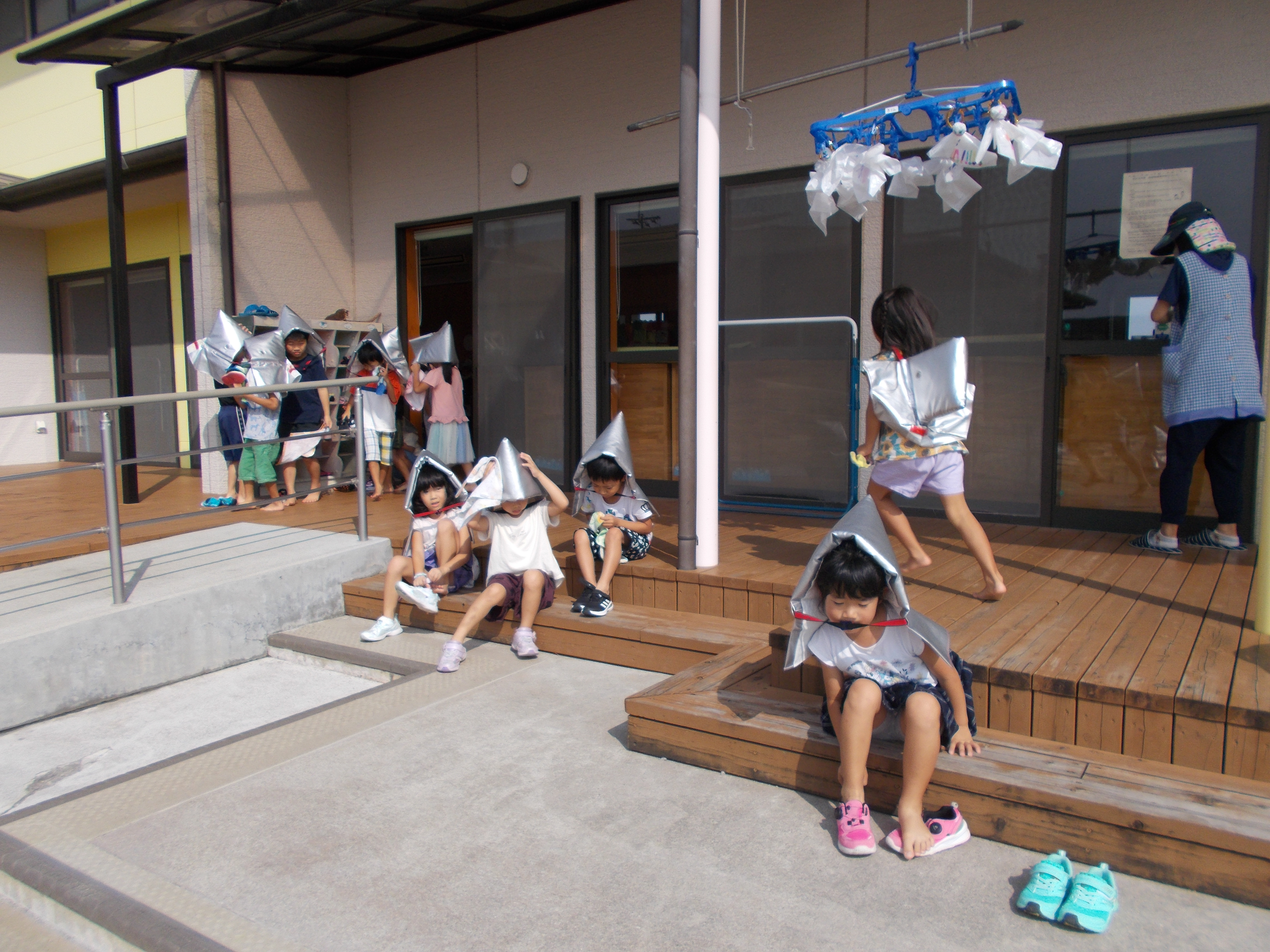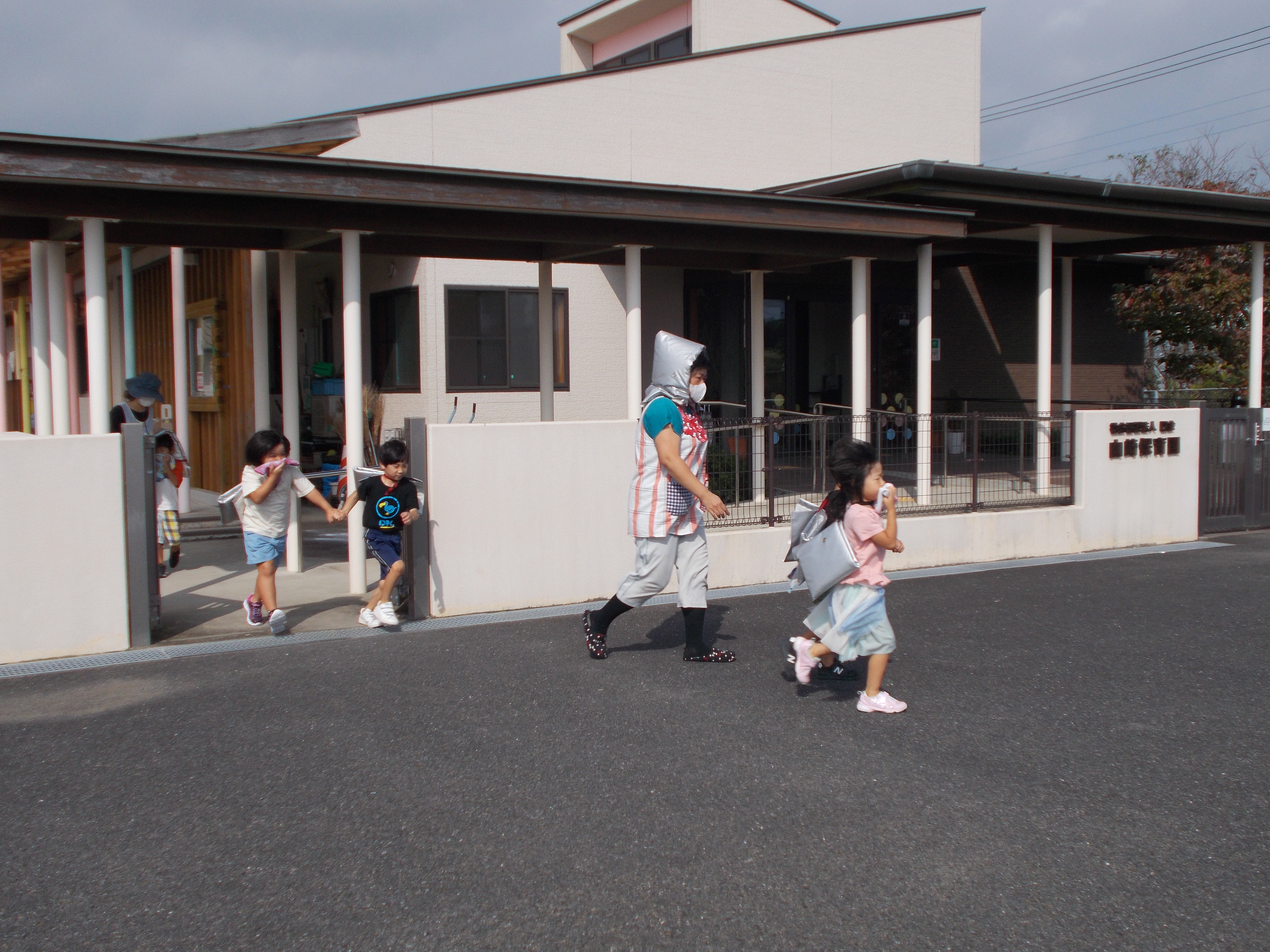 10月 避難訓練 10月14日(木) 避難訓練に参加しました。 非常ベルが鳴ると直ぐに保育士の側に集まって、避難場所の放送が聞こえるように皆静かに待つことが出来ます。 毎月の訓練で、慌てず避難する方法が身に着いてきているようです。