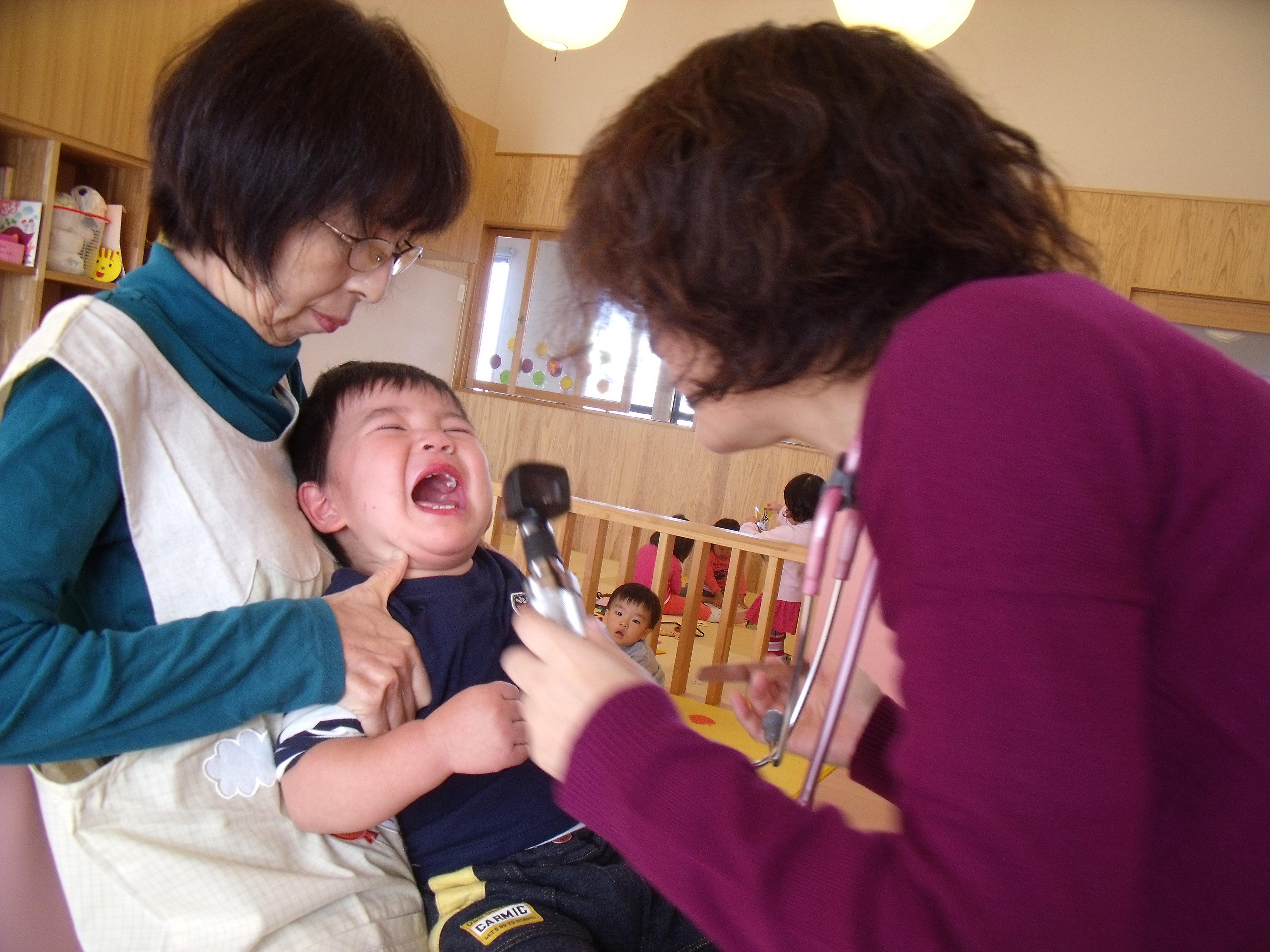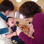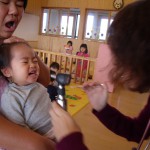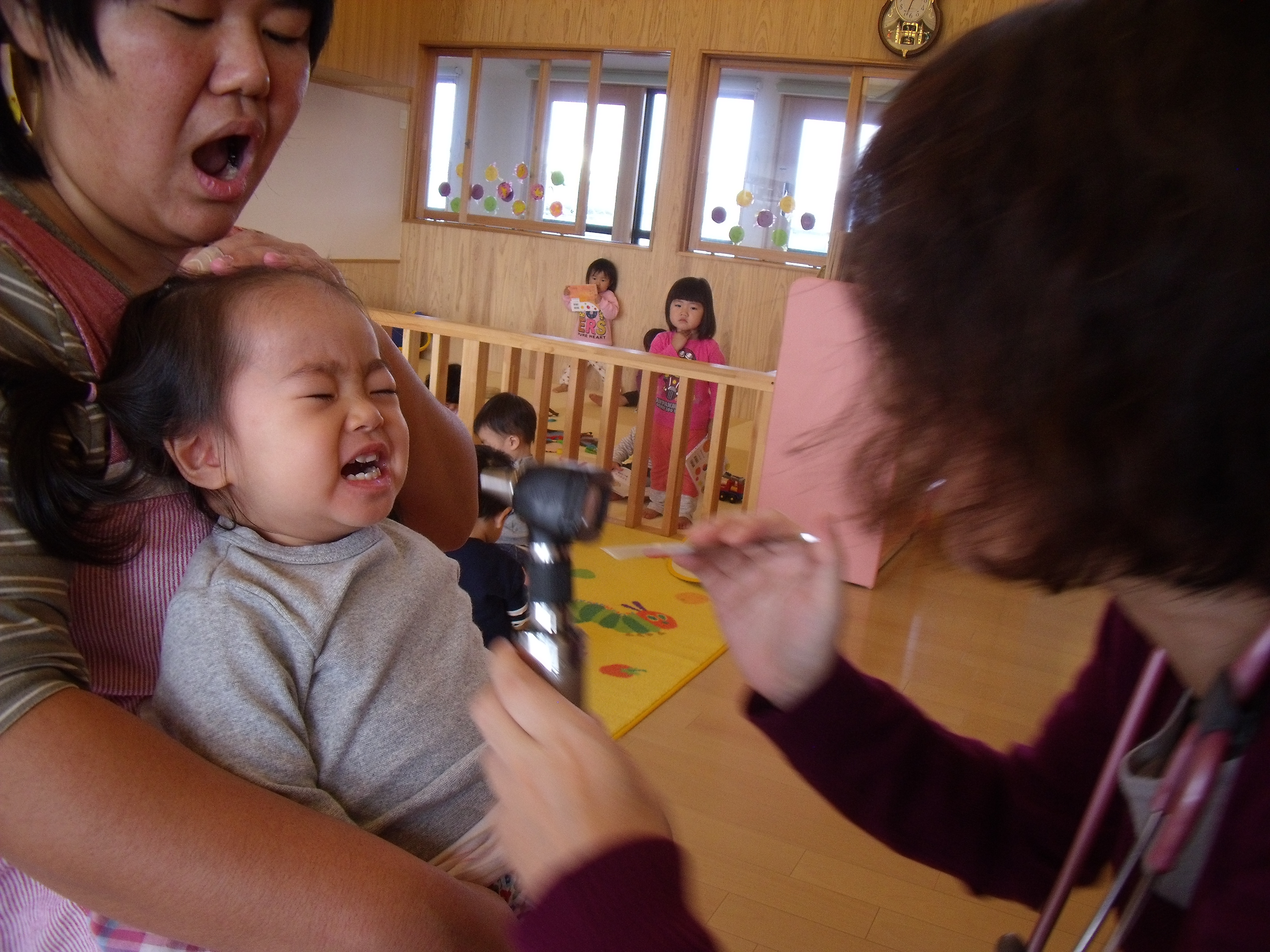 未満児さんは、先生の前に座った途端に大泣きでした。