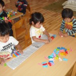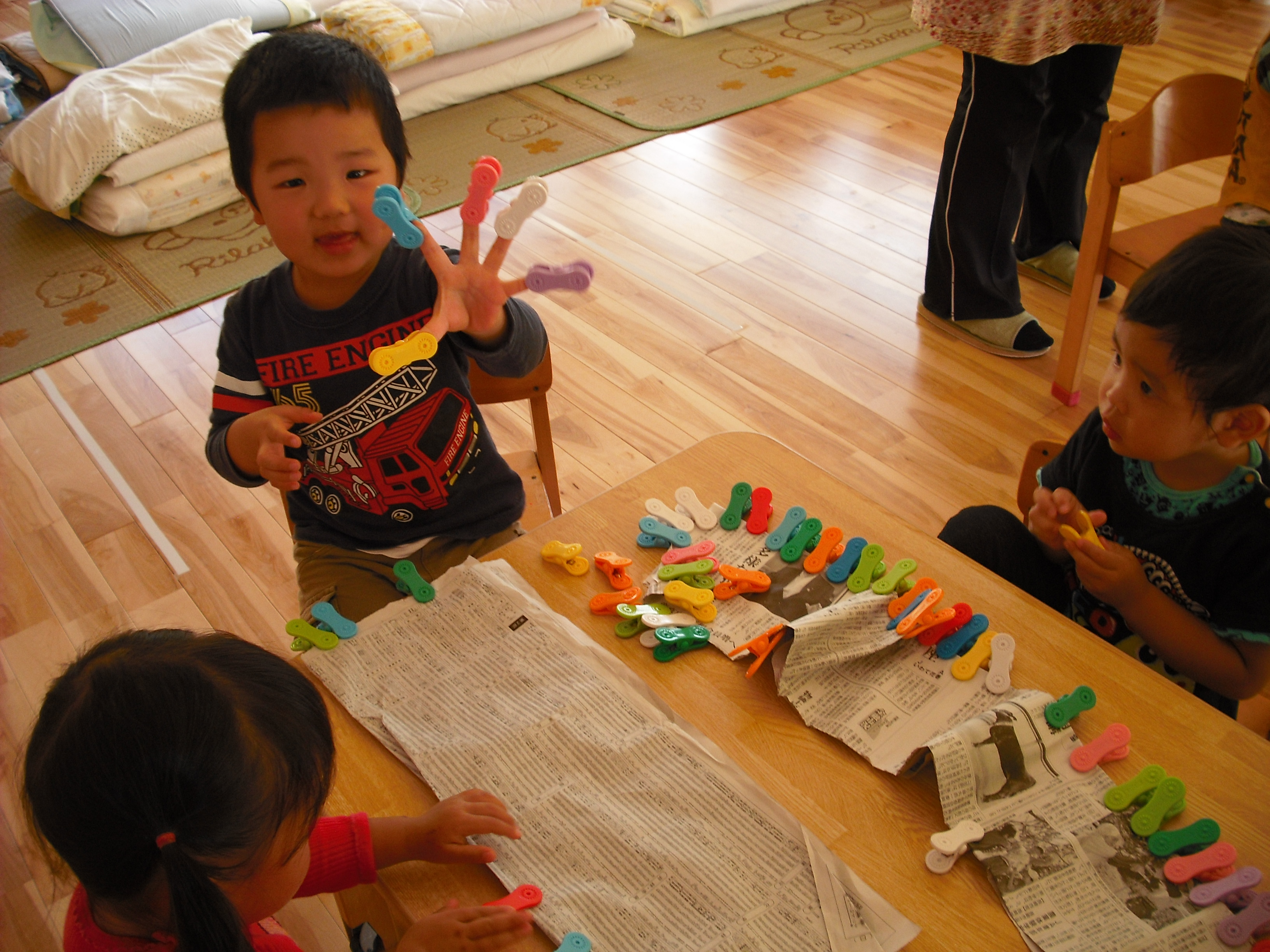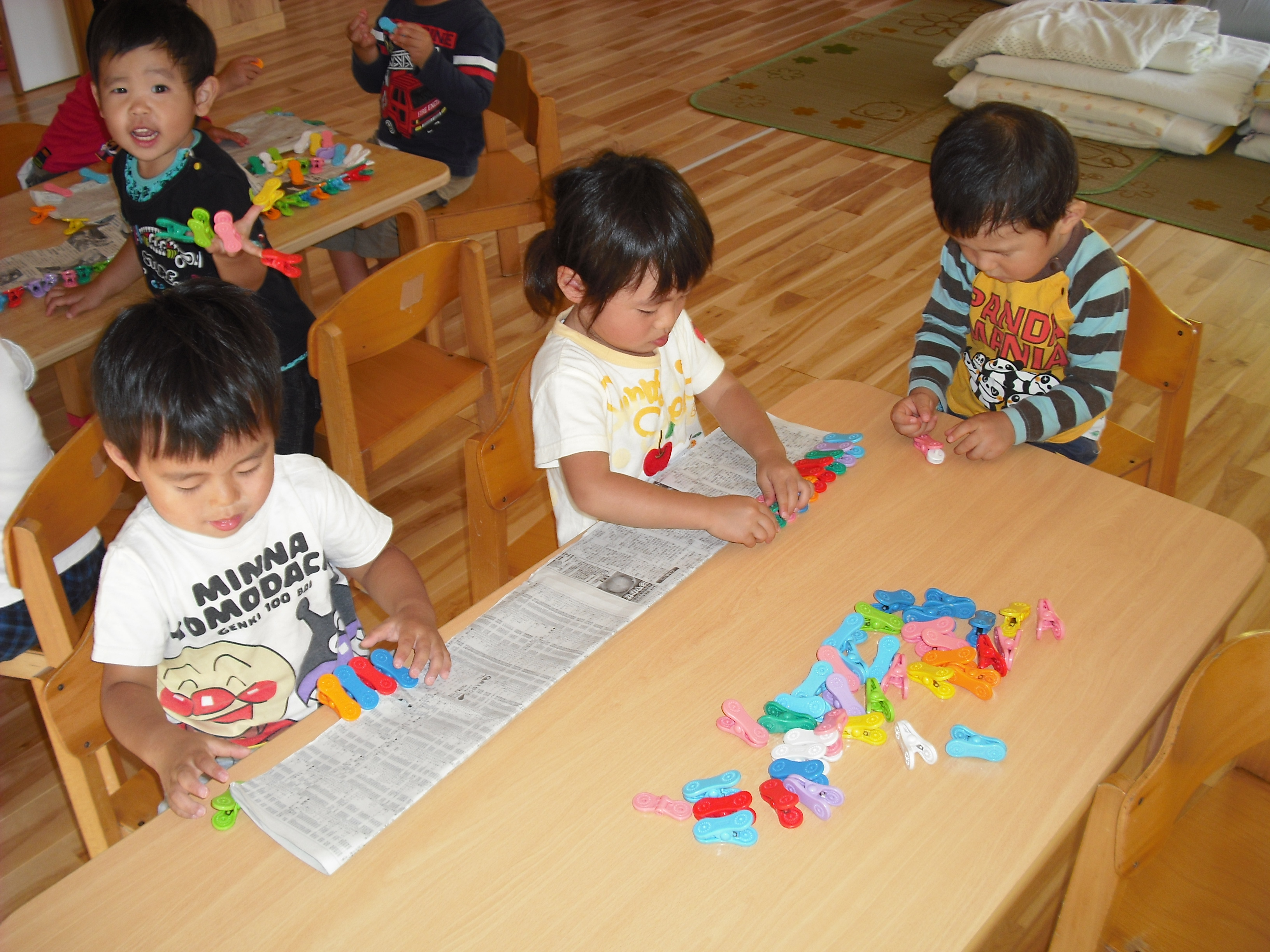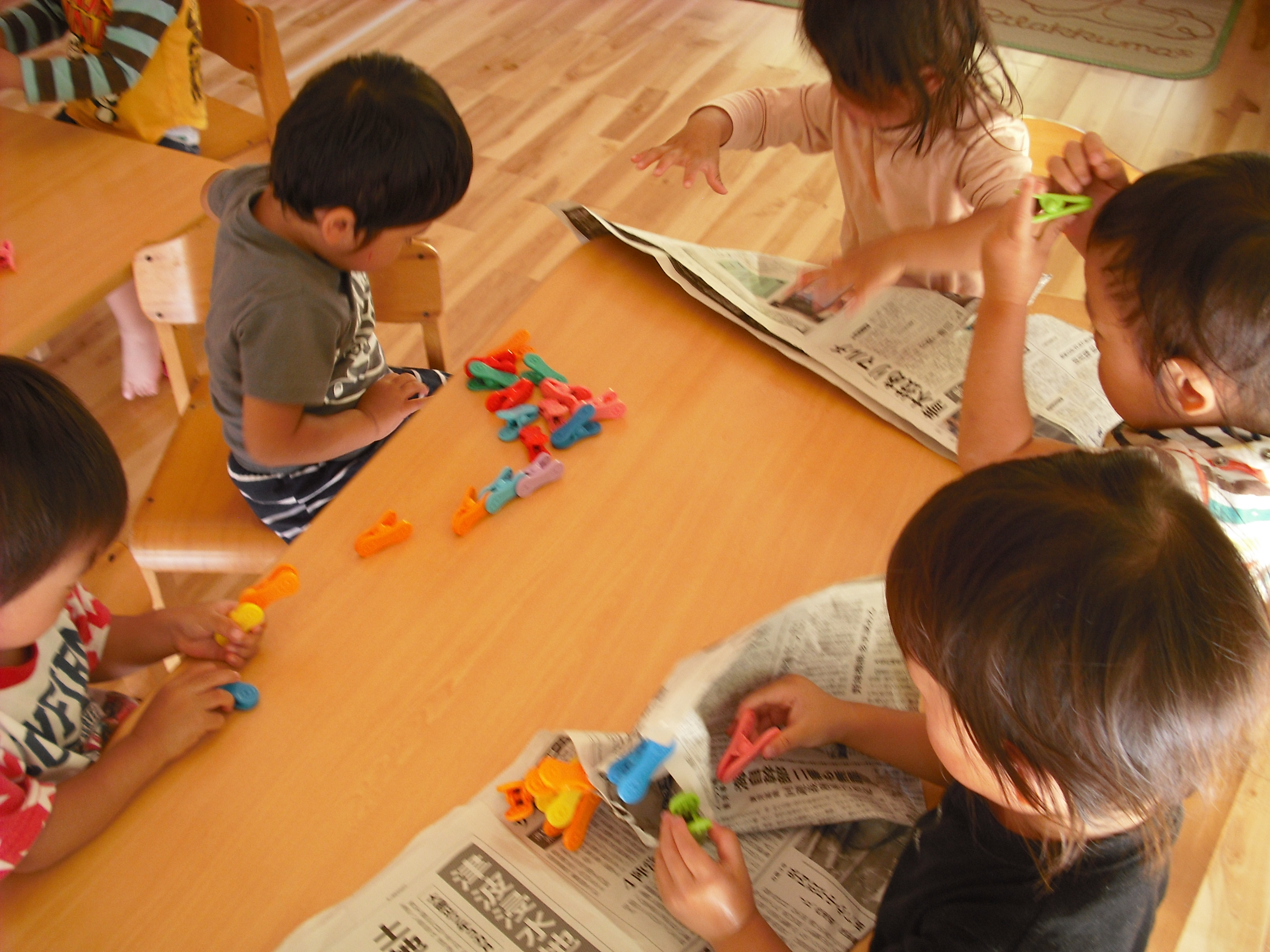 うさぎ組さんは、クリップを使って挟む練習をしています。