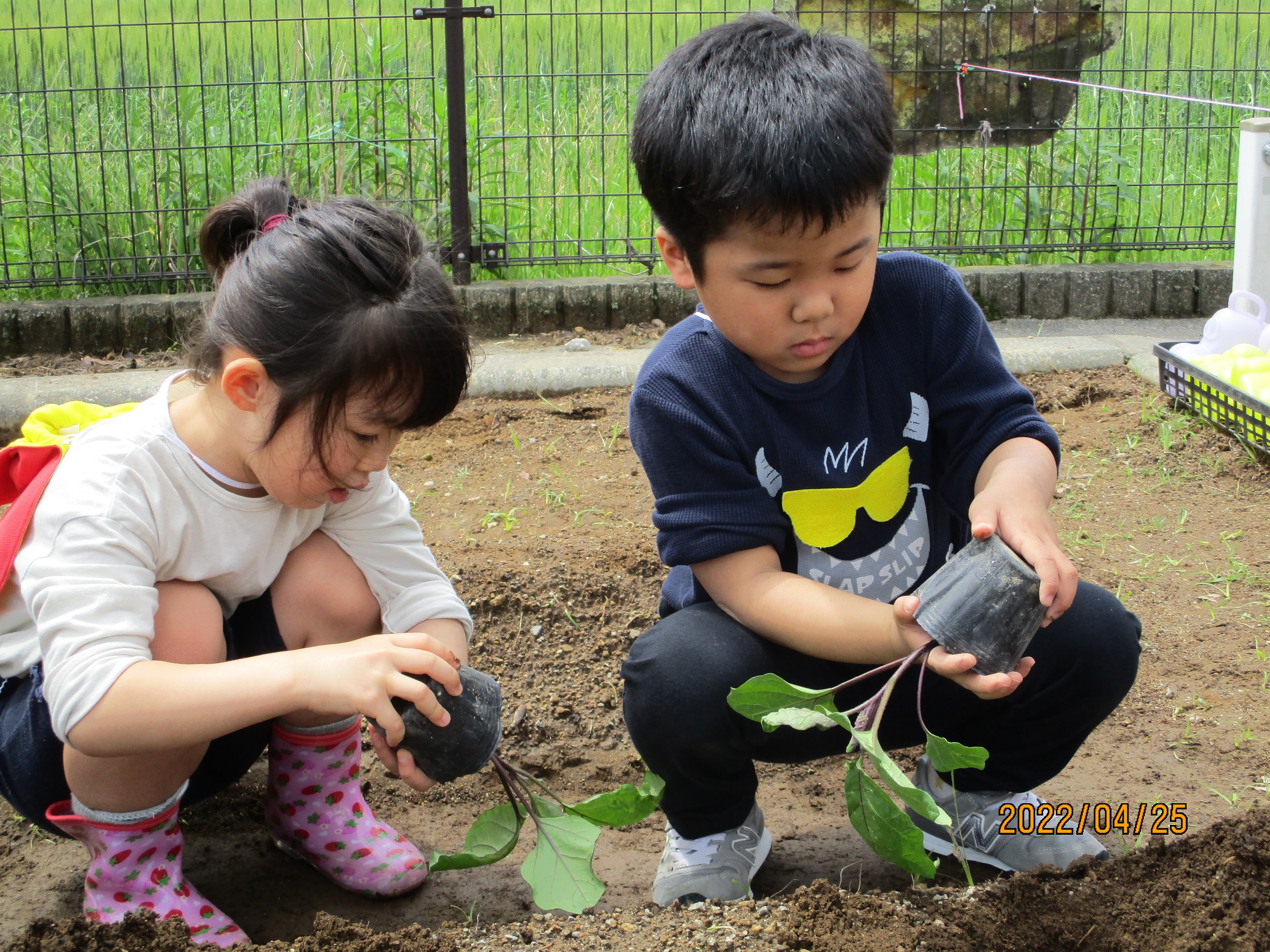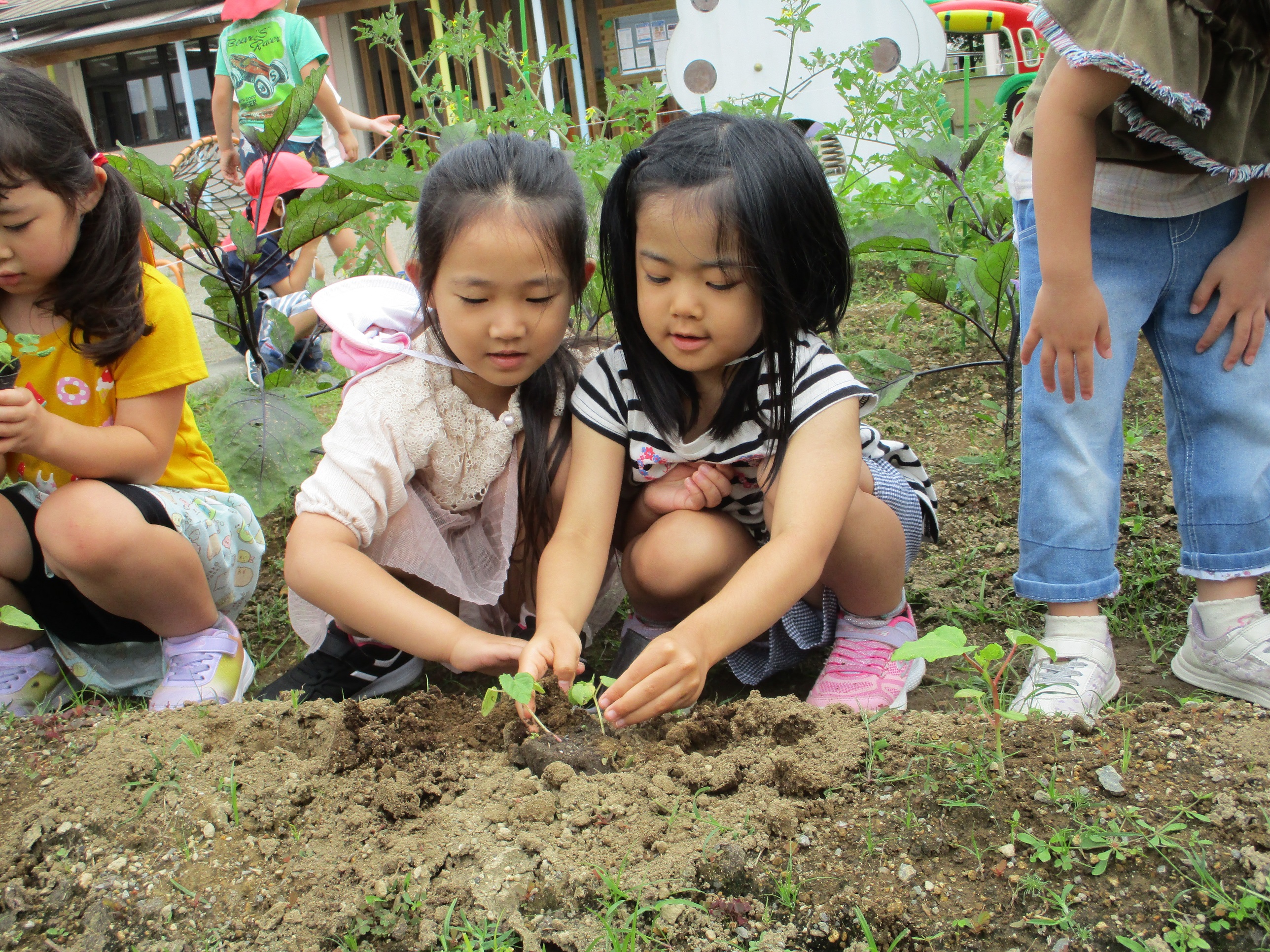 苗をポットから出す時は、「優しくよ。優しくだよ。」と、声を掛け合いながら大切に植えてくれました。
