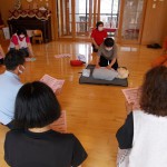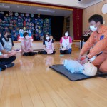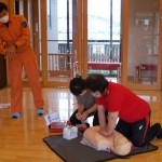 消防士の方から説明を受け、救命措置の実習を行いました。