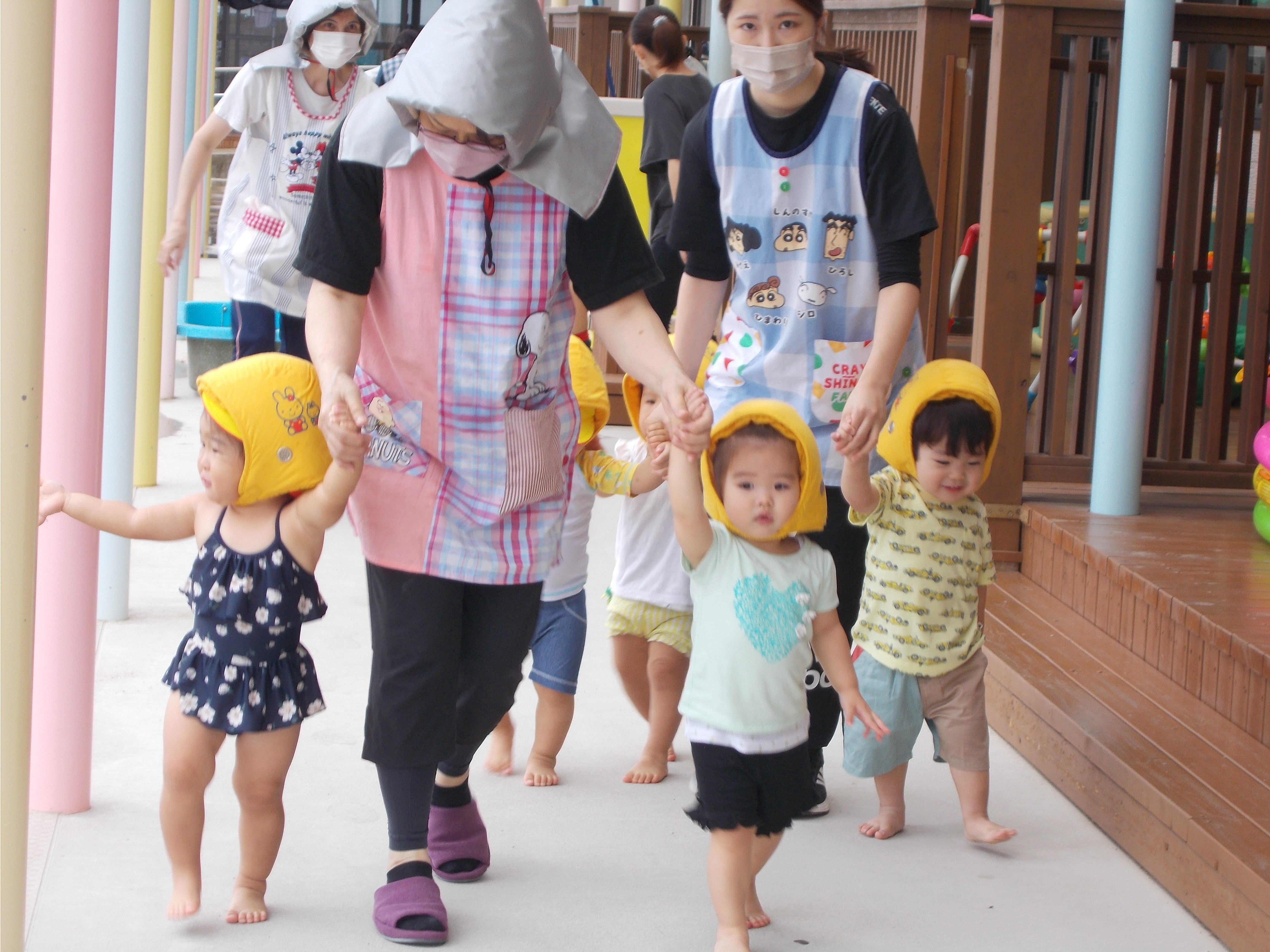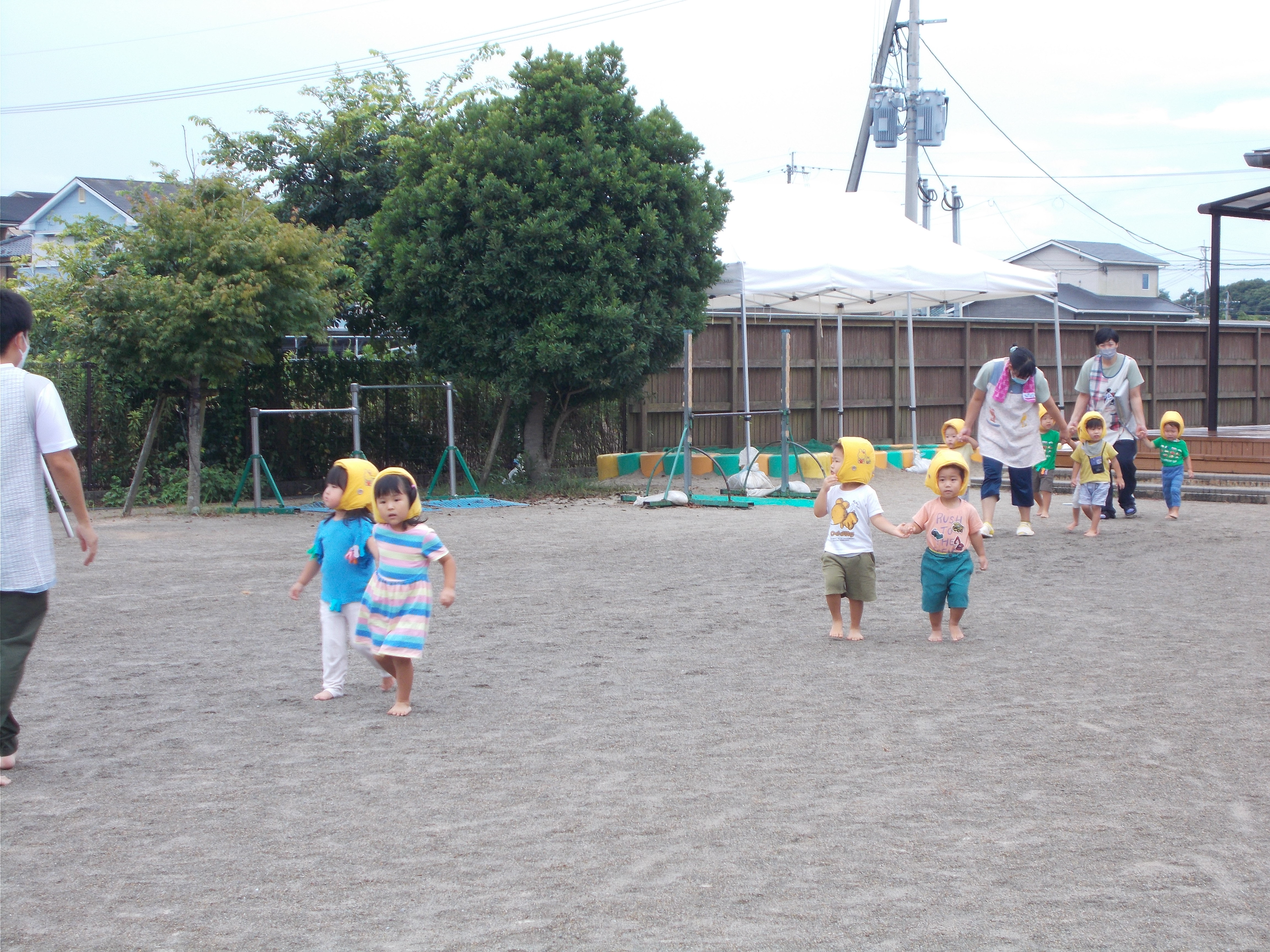 非常ベルの音が鳴ると、子ども達もピリッと反応し保育士をじっと見つめて指示を待ち、危機感を持って行動出来ることが分かります。