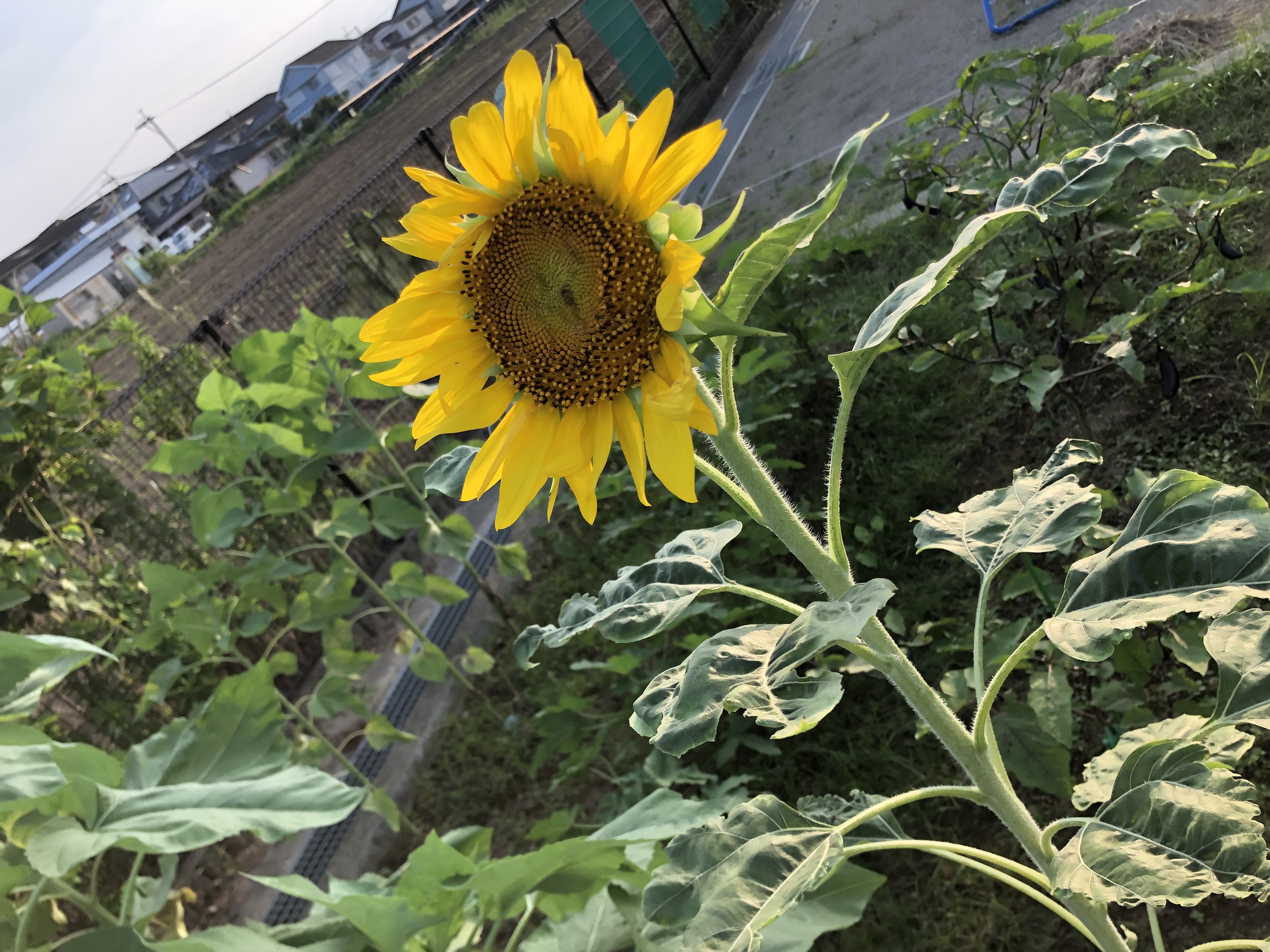 毎日水をかけ、草が生えたら「栄養を取られないように」と、草むしりをして愛情をたっぷり注いだヒマワリが、大きな花を咲かせました!