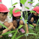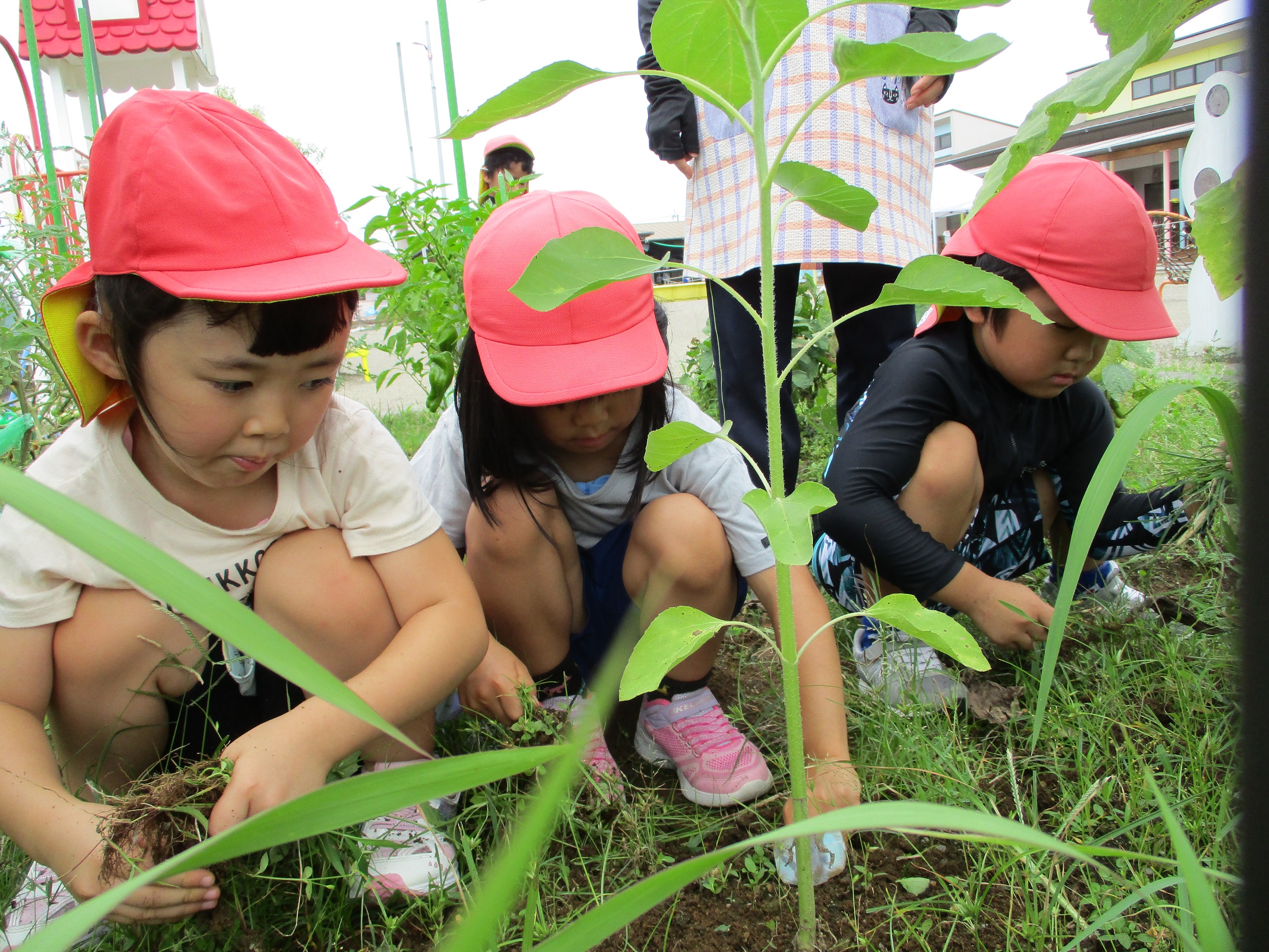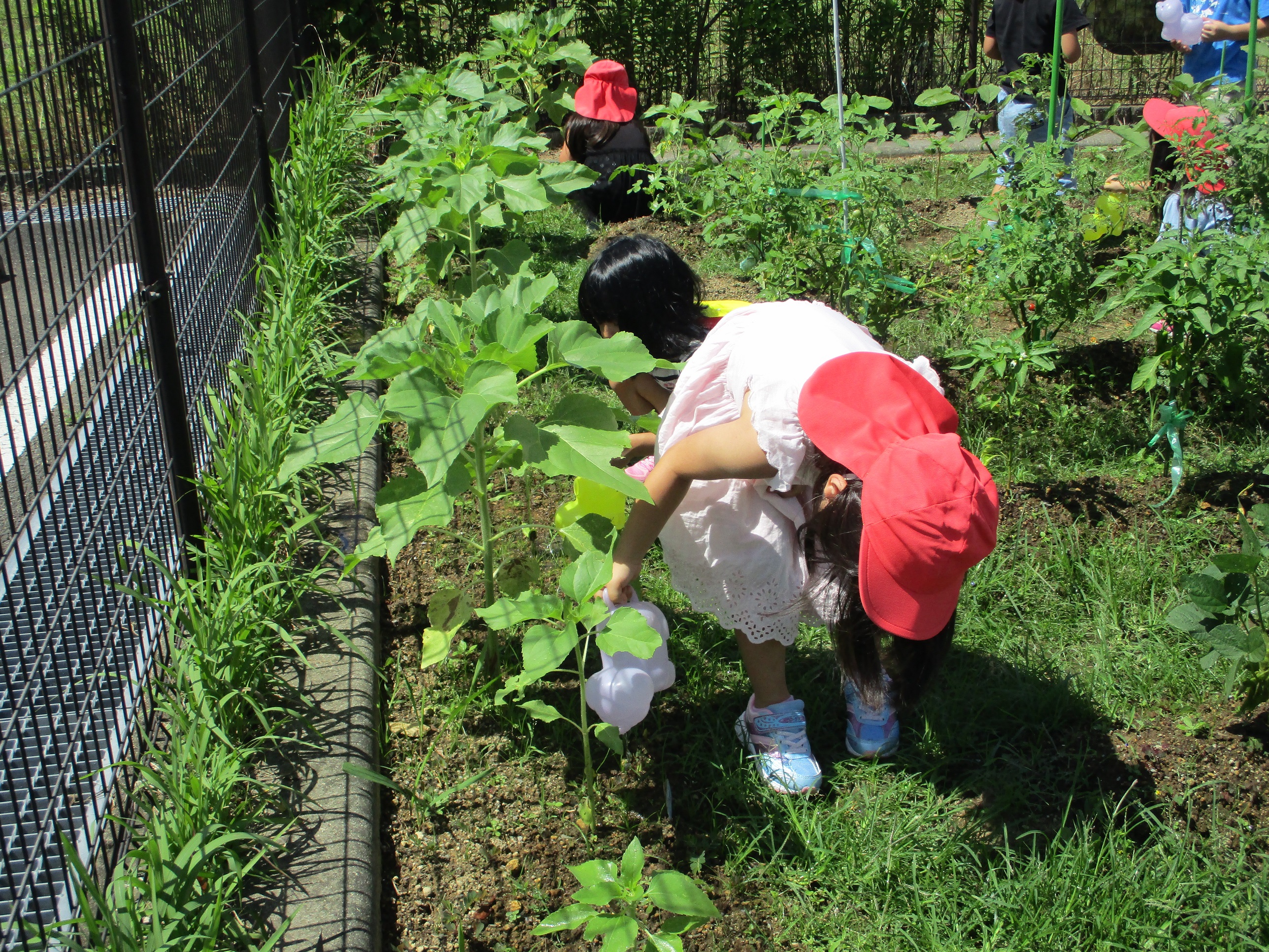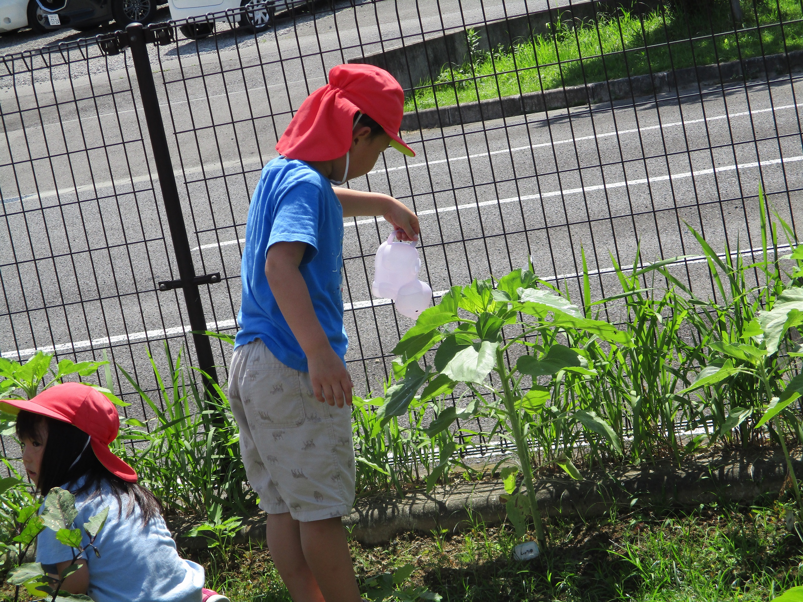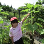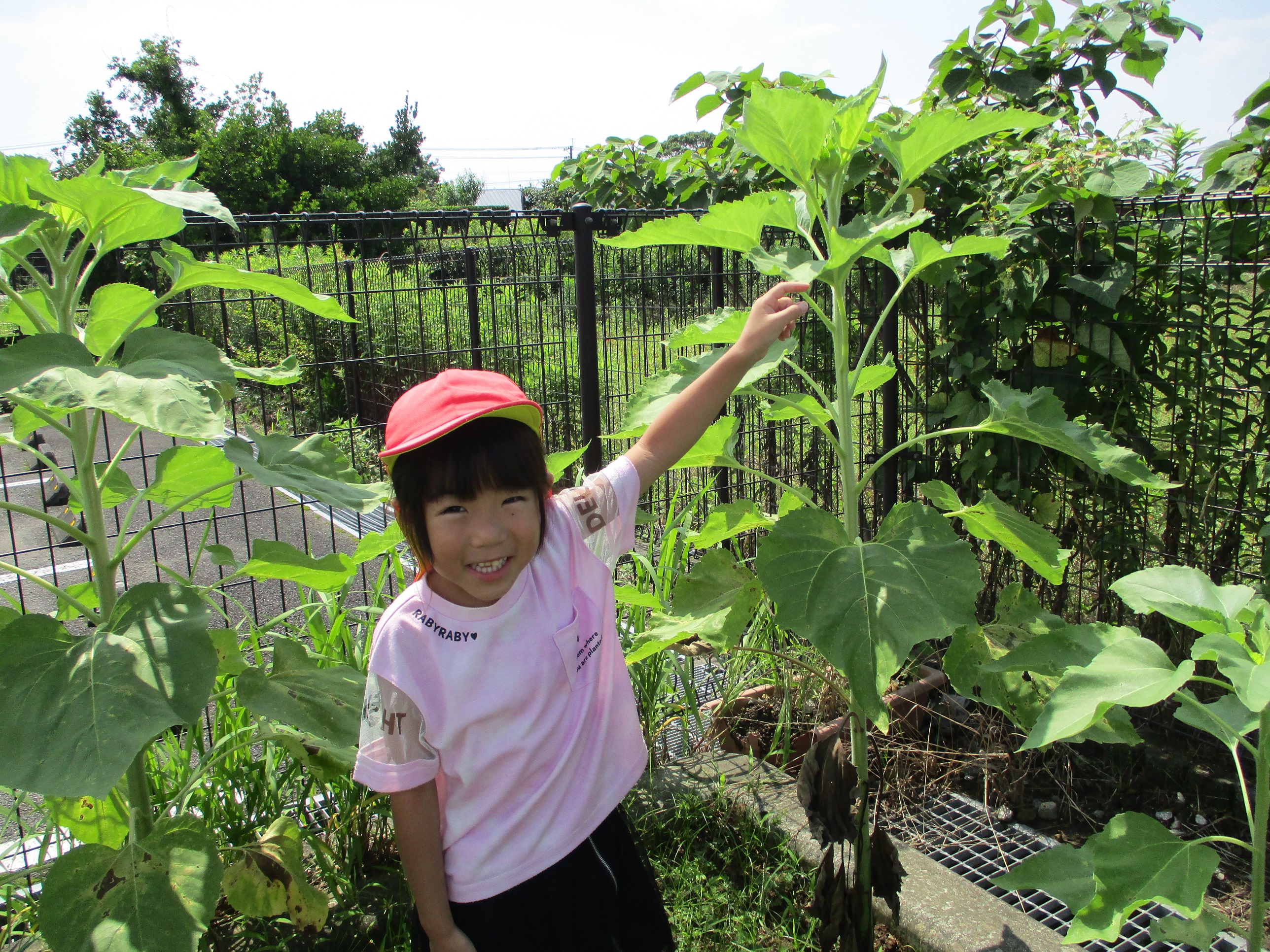 5月に種を蒔いたヒマワリは、少しずつ生長し、観察することが子ども達の楽しみになりました。