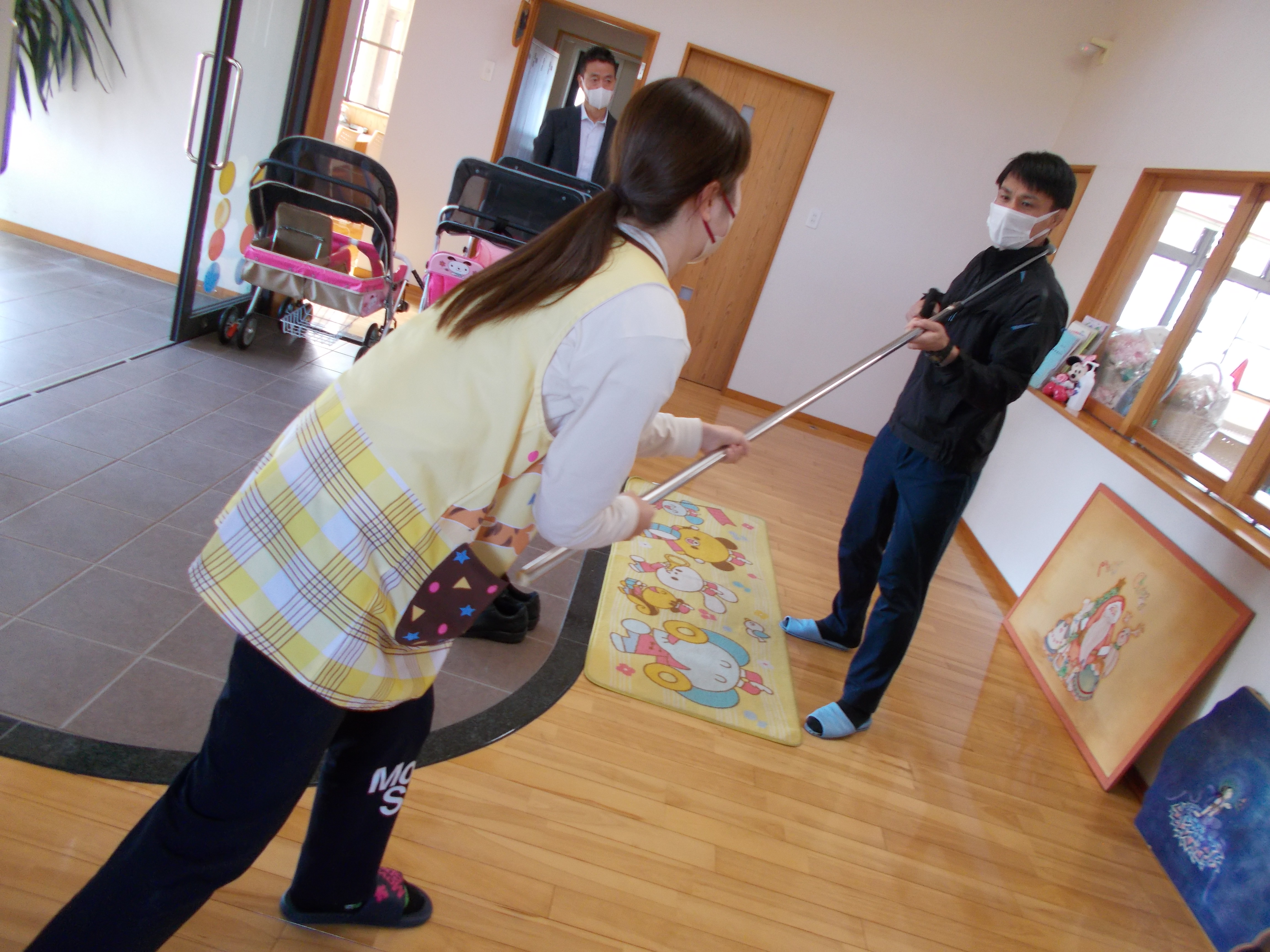 不審者に気付き、どのように他の職員に伝達していくのか、不審者への対応はどのようにするべきなのかを北警察署の方に丁寧に教えて頂きました。