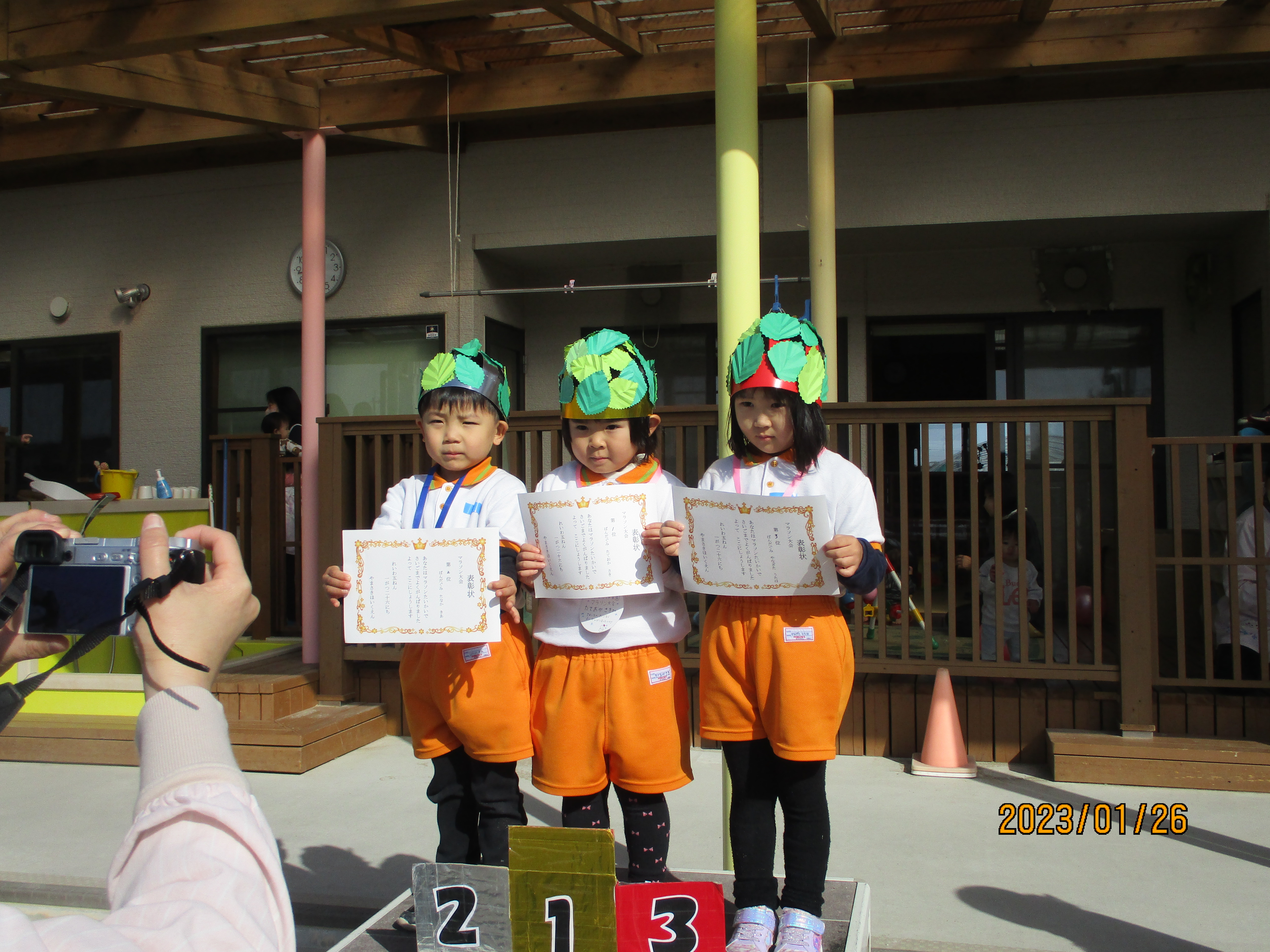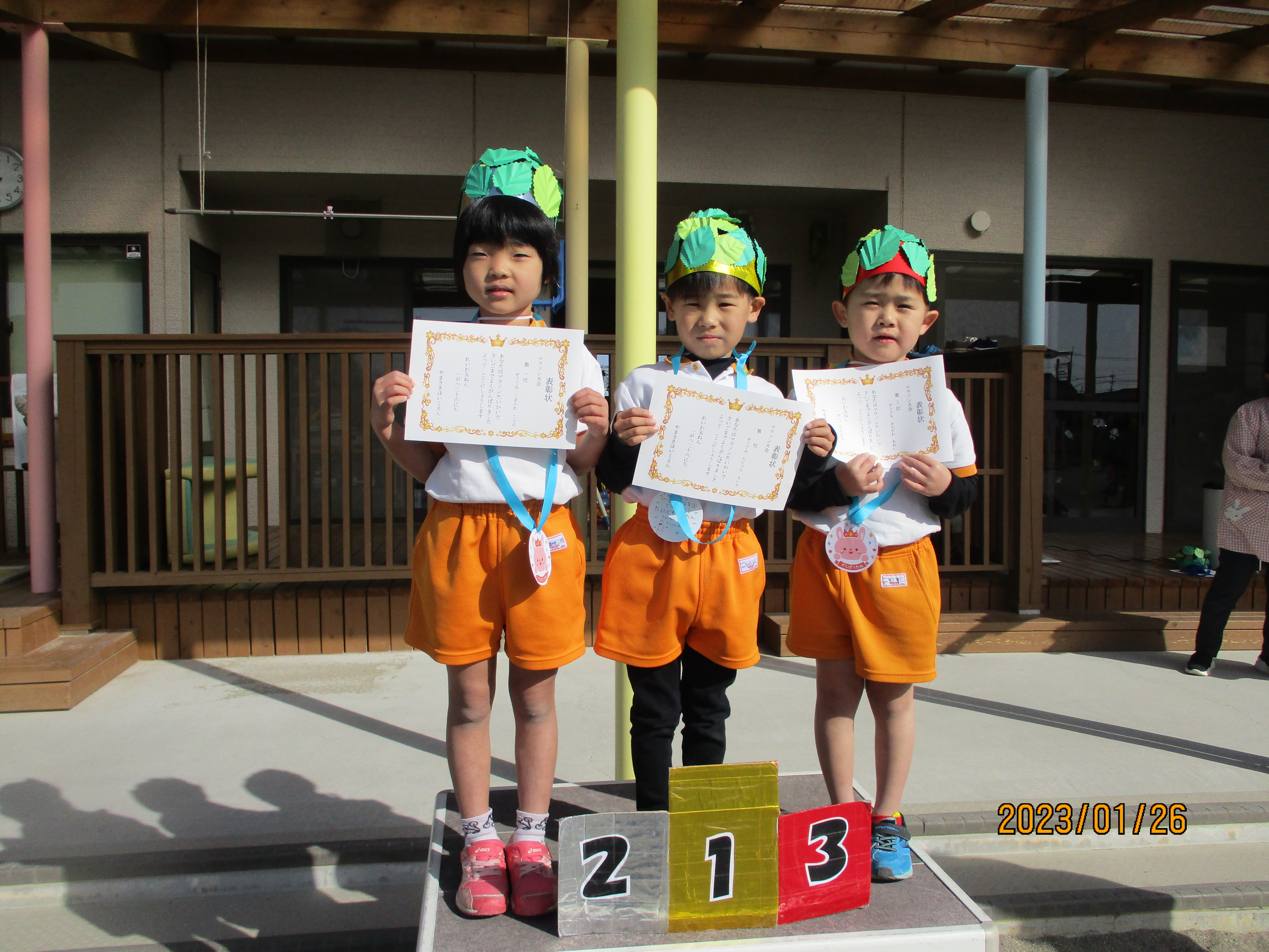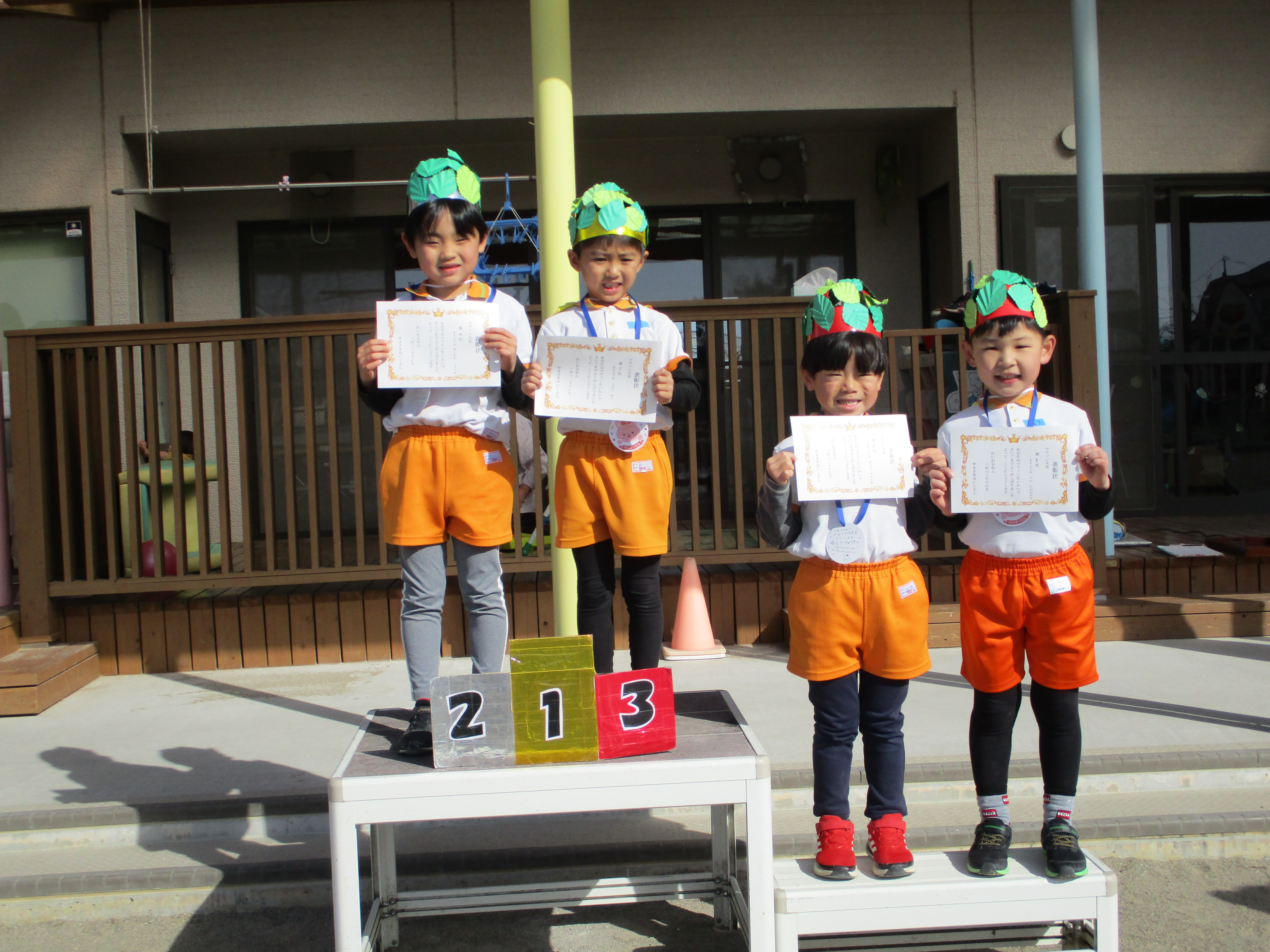家族に応援してもらいながら走ると、いつも以上に力が発揮できるようで、年長組は3位が二人!ゴール間際に全力を出し切る姿がかっこ良かったです。