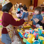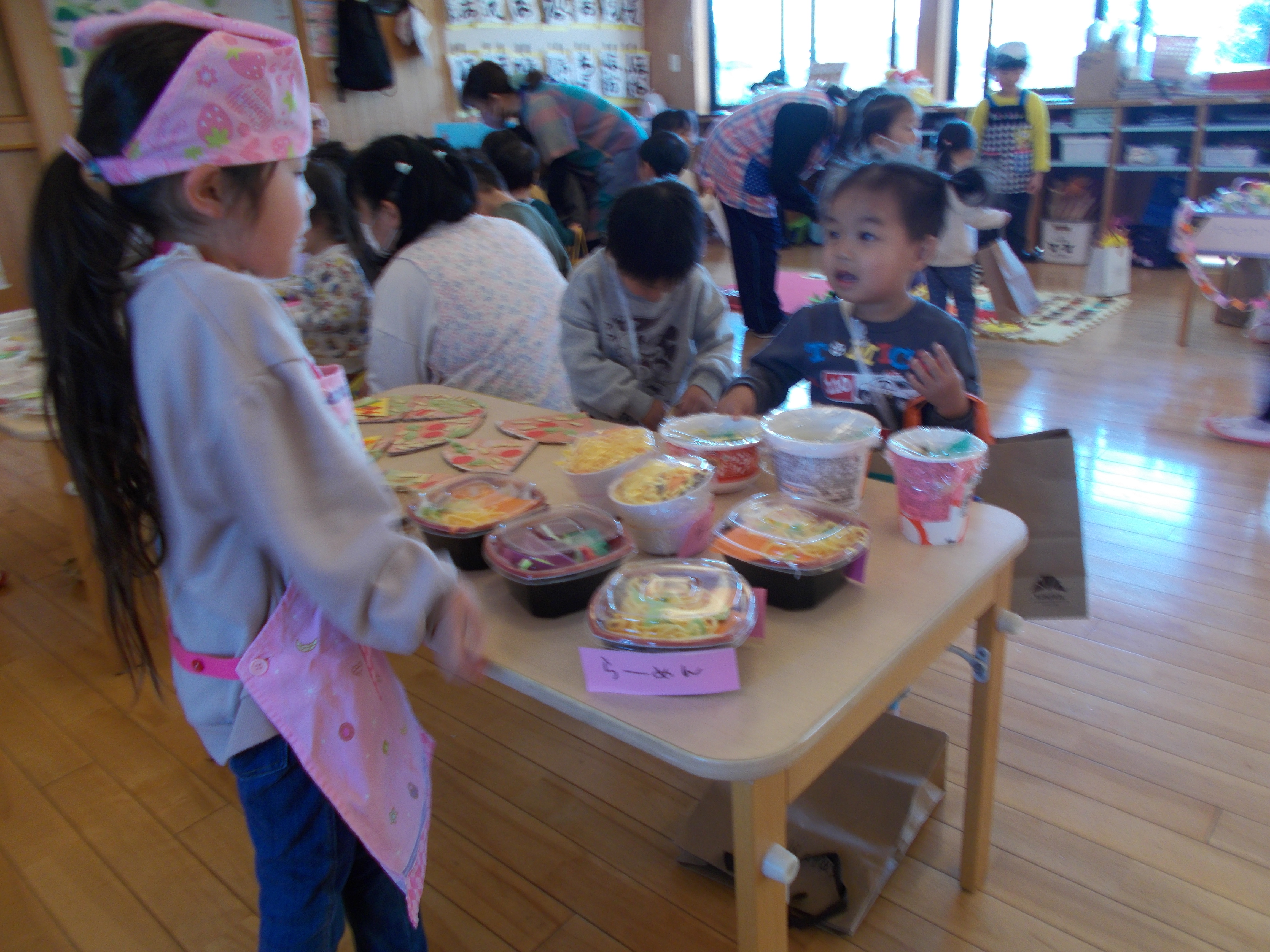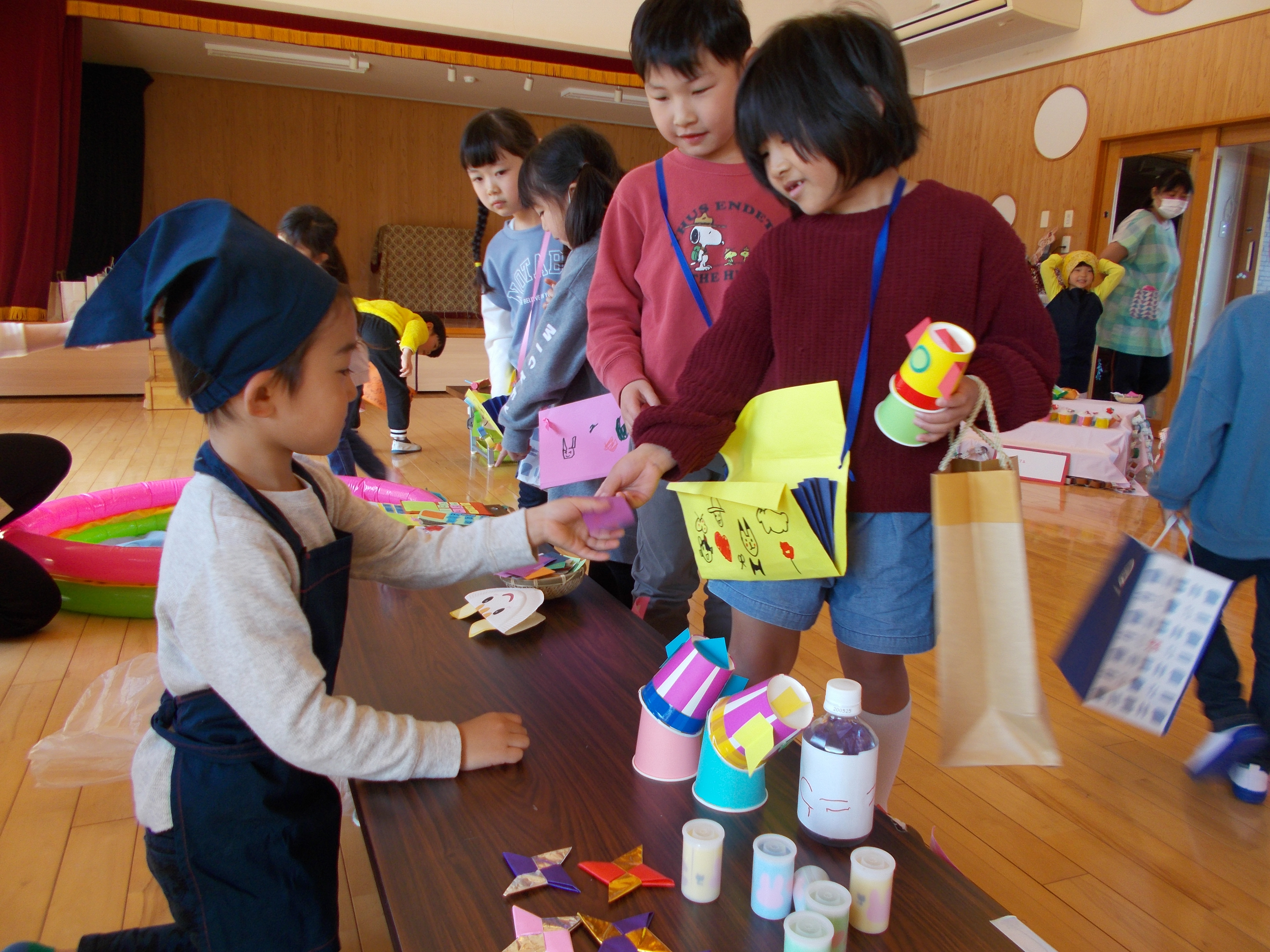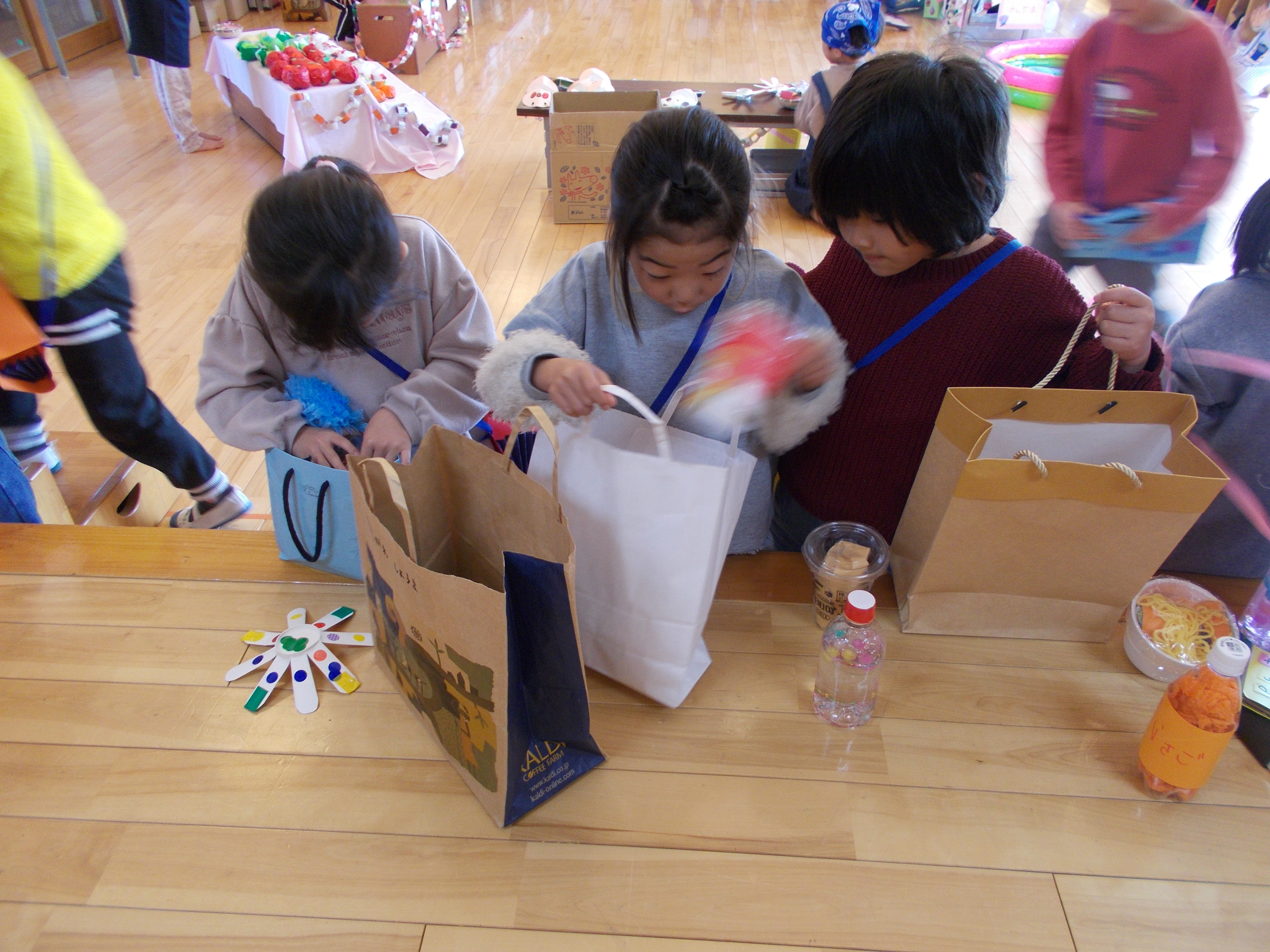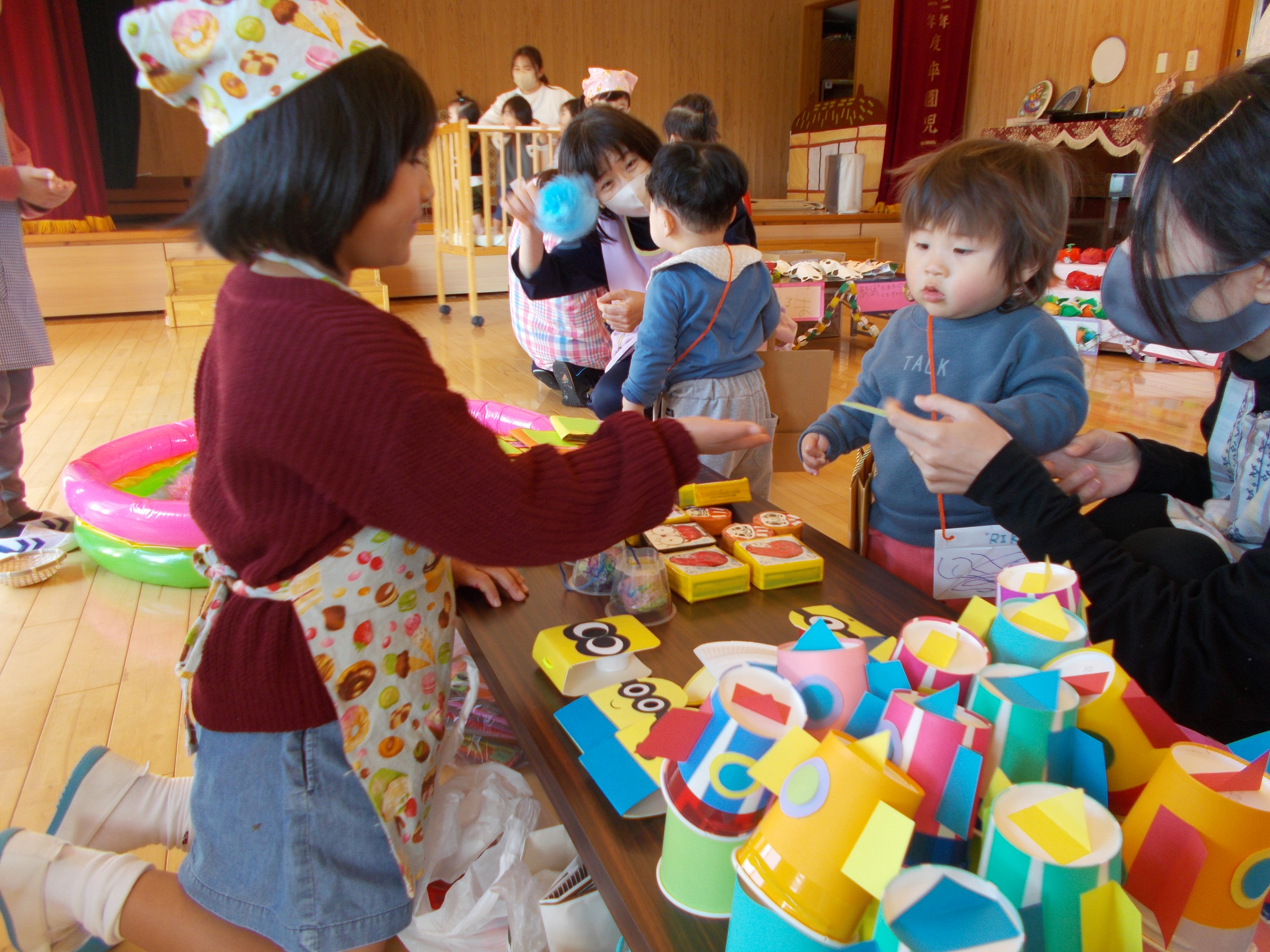 おかいものごっこ 3月8日(水) 保育士や子ども達と、少しずつ作ってきた商品でおかいものごっこをしました。 アクセサリーやケーキ、お弁当におもちゃと、お店にやってきた子ども達は、目をキラキラ輝かせてお買い物を楽しんでいました。 買った物を友達と見せ合うのも楽しみのひとつ♡のようです。