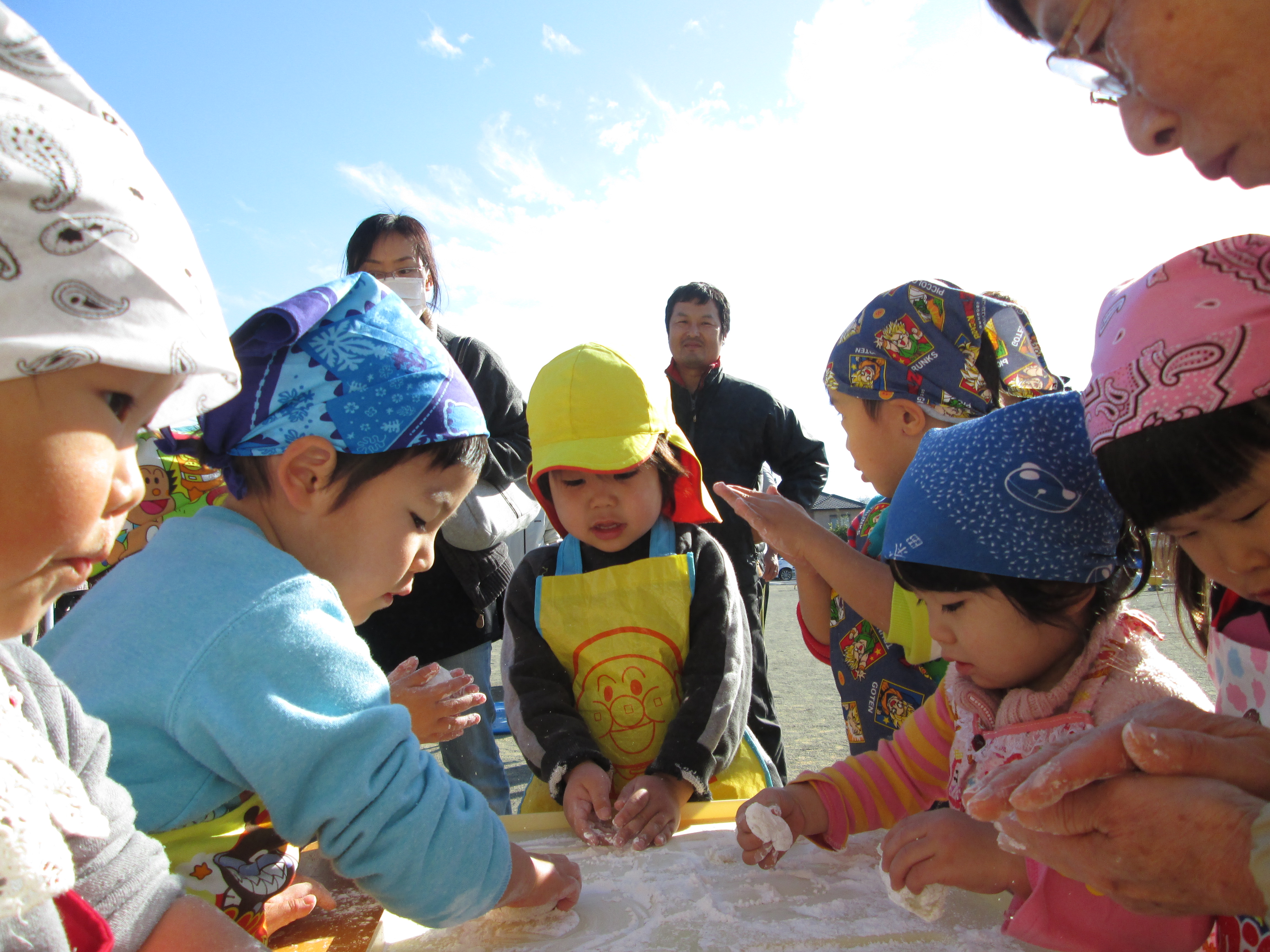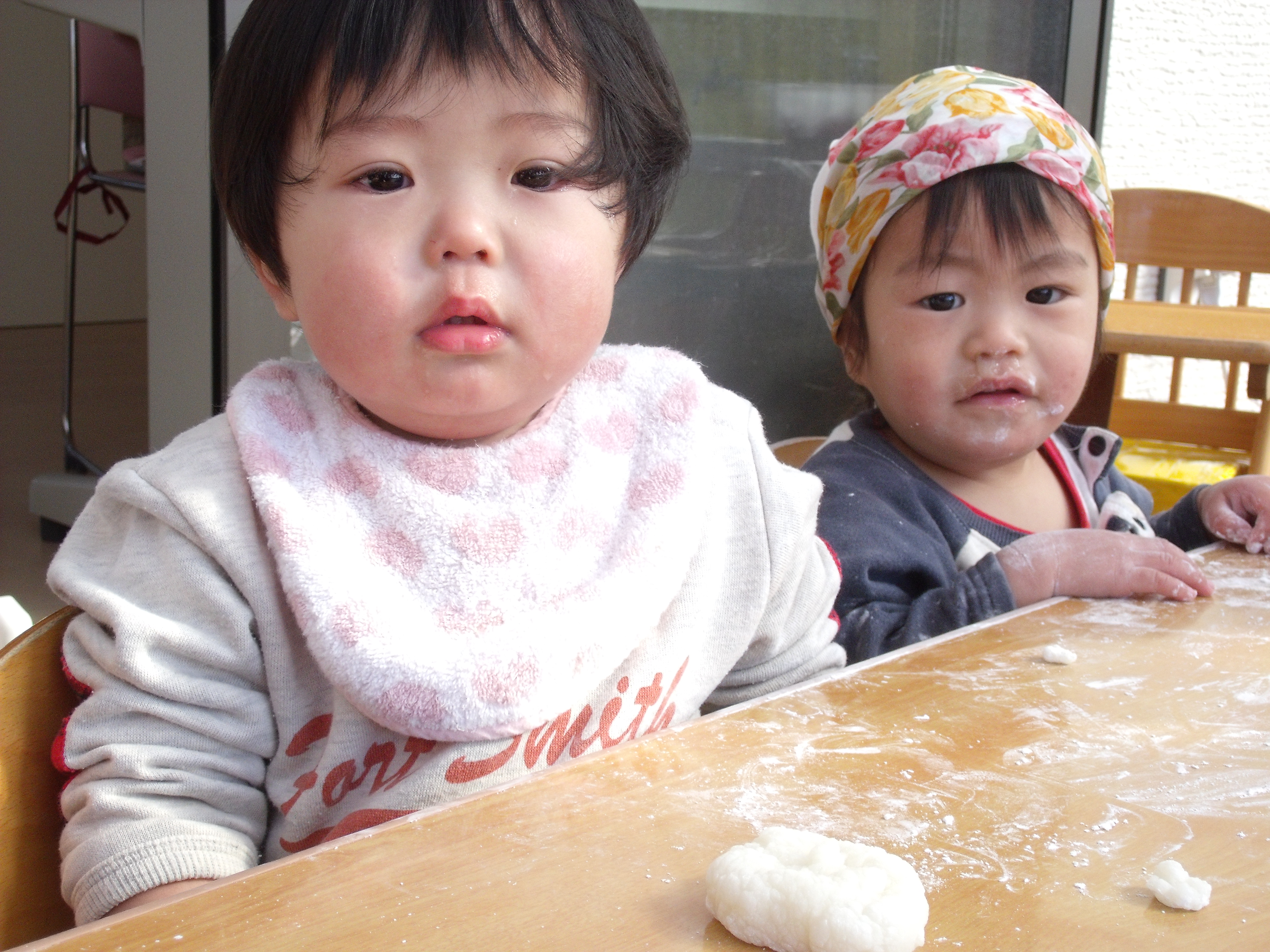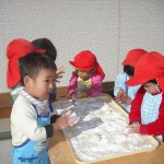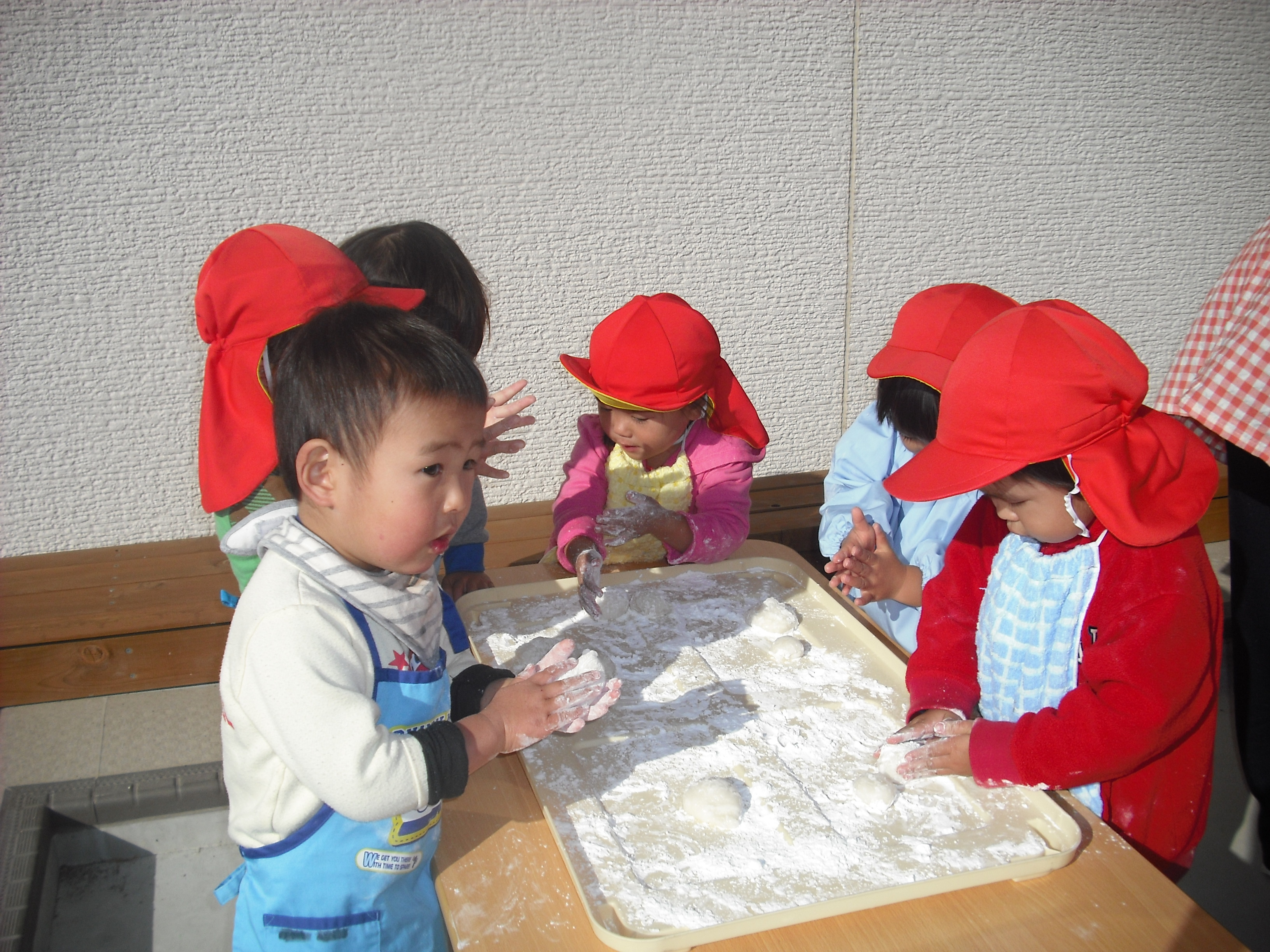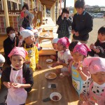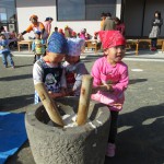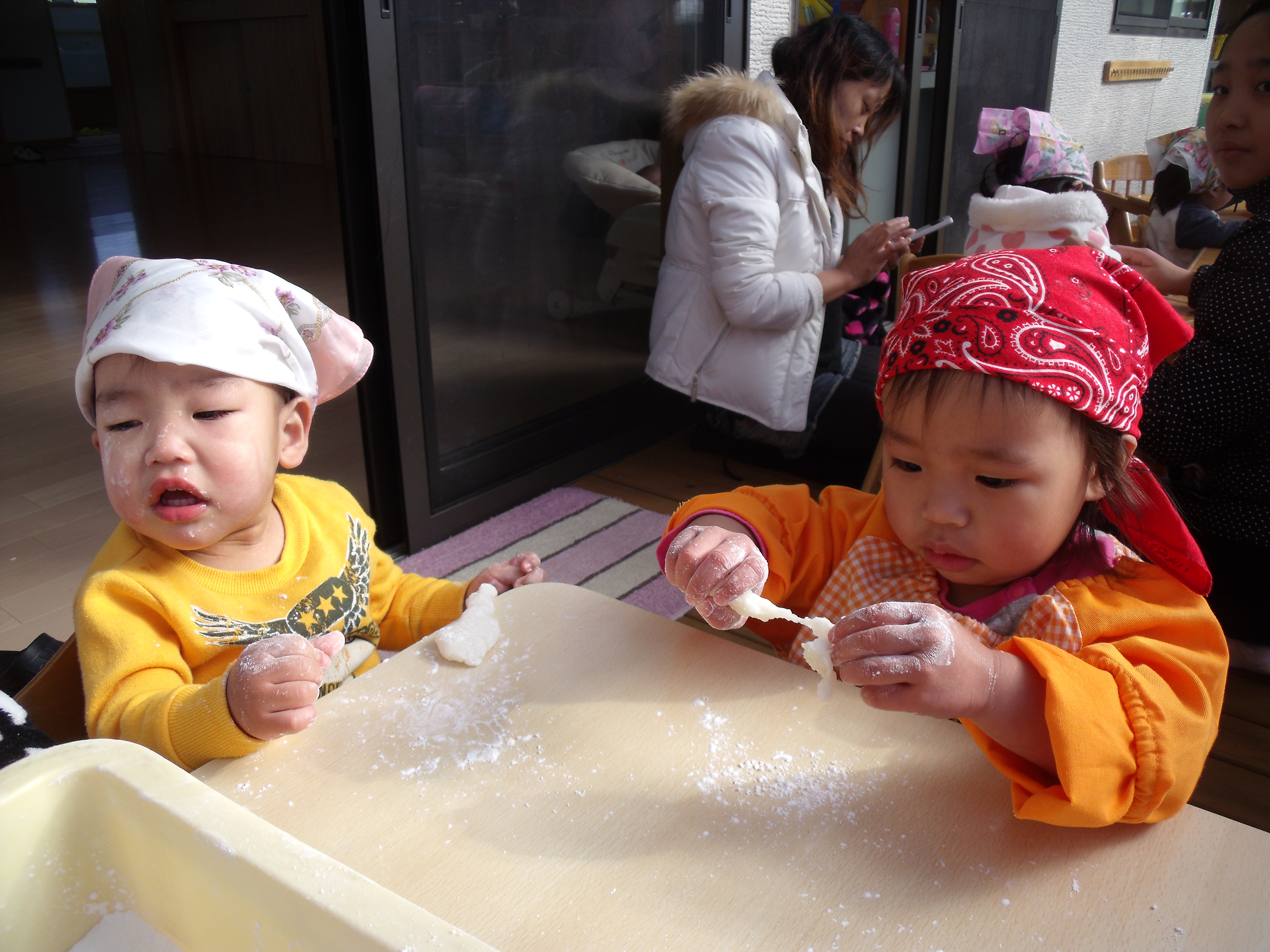 もちつき大会 12月14日(土) 餅つきを行いました。 ぺったんぺったん・・・杵を持ち上げ交互につきます。 蒸したもち米が、どんどん柔らかくなって大きなおもちができました。 つきたてのお餅は美味しいね~♪ きなこや醤油をつけて、お腹一杯食べましたよ。