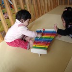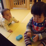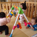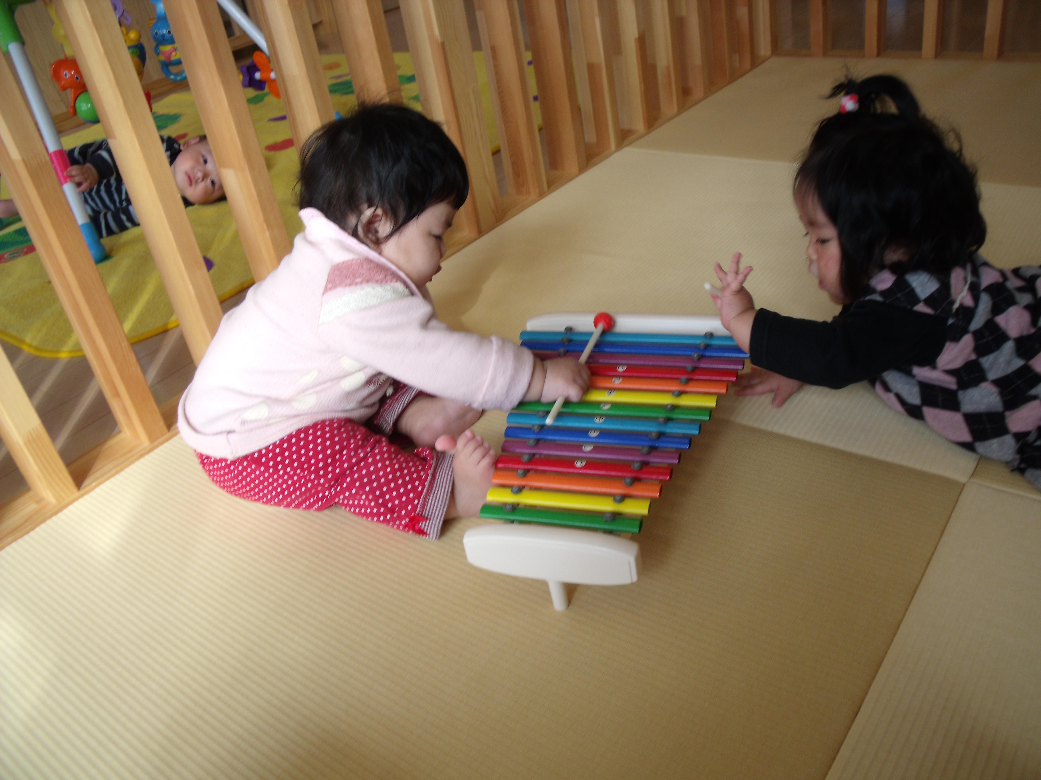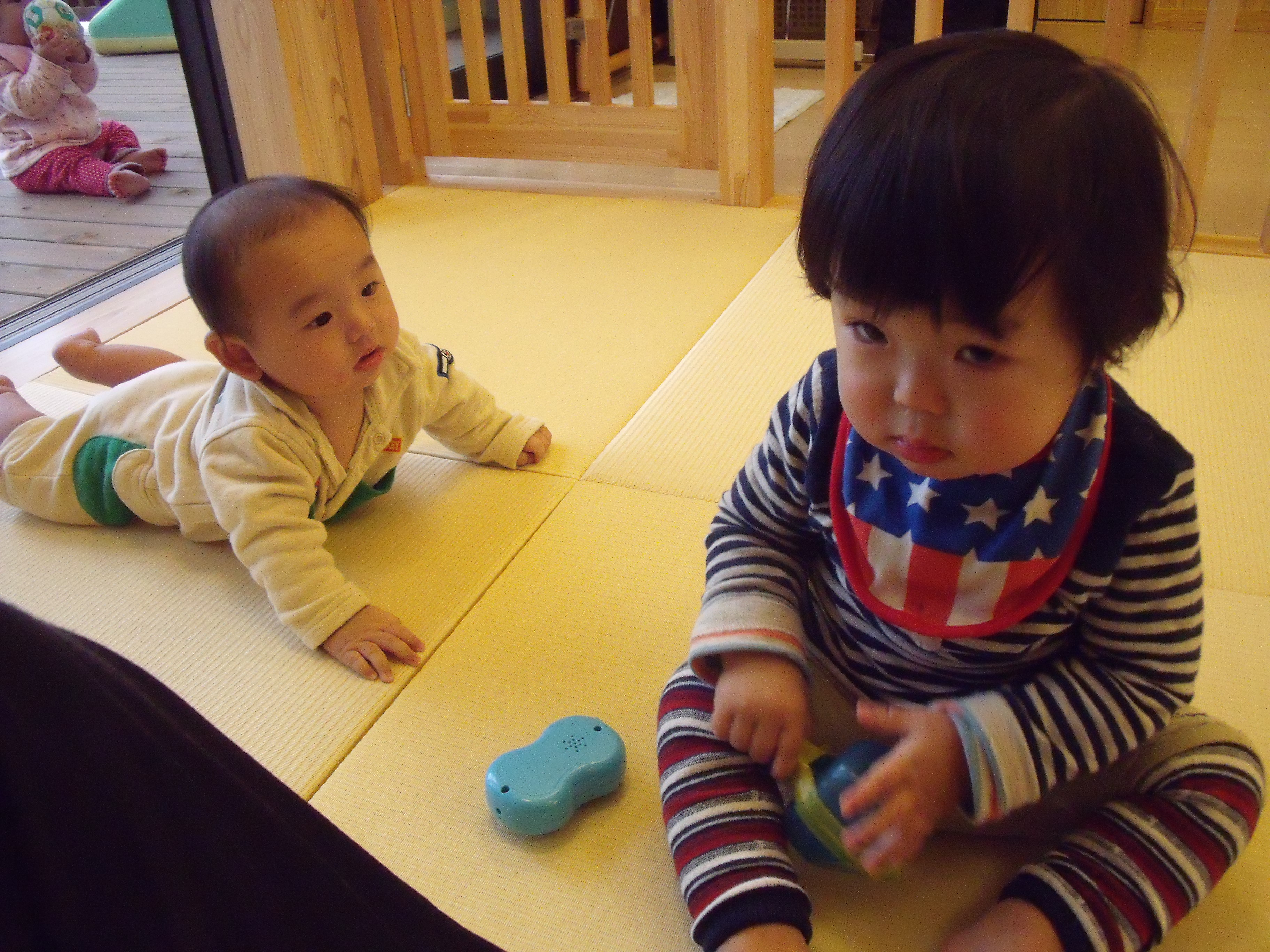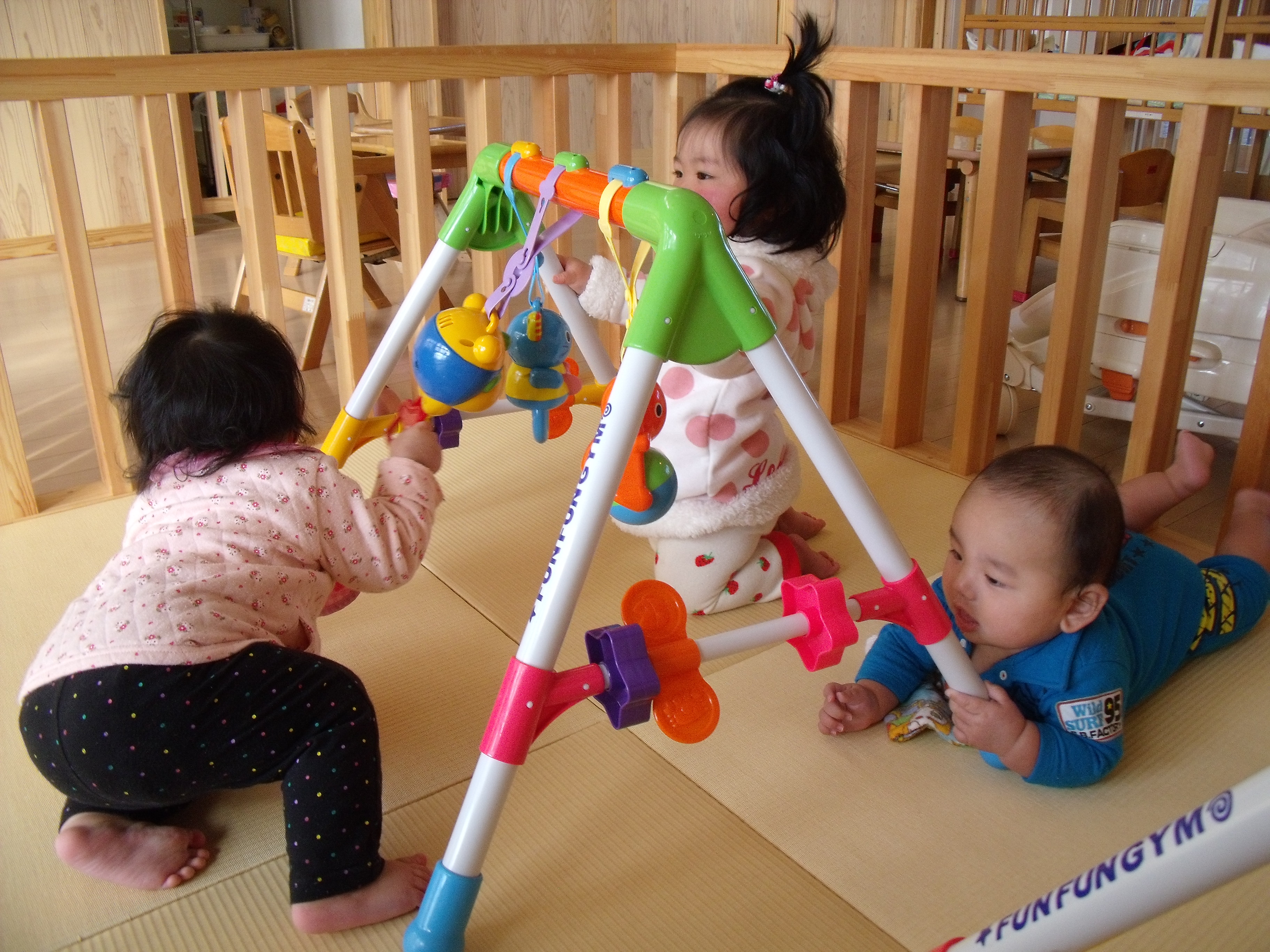 ひよこ組さんは、床暖房のきいた暖かいお部屋で仲良く室内遊び。