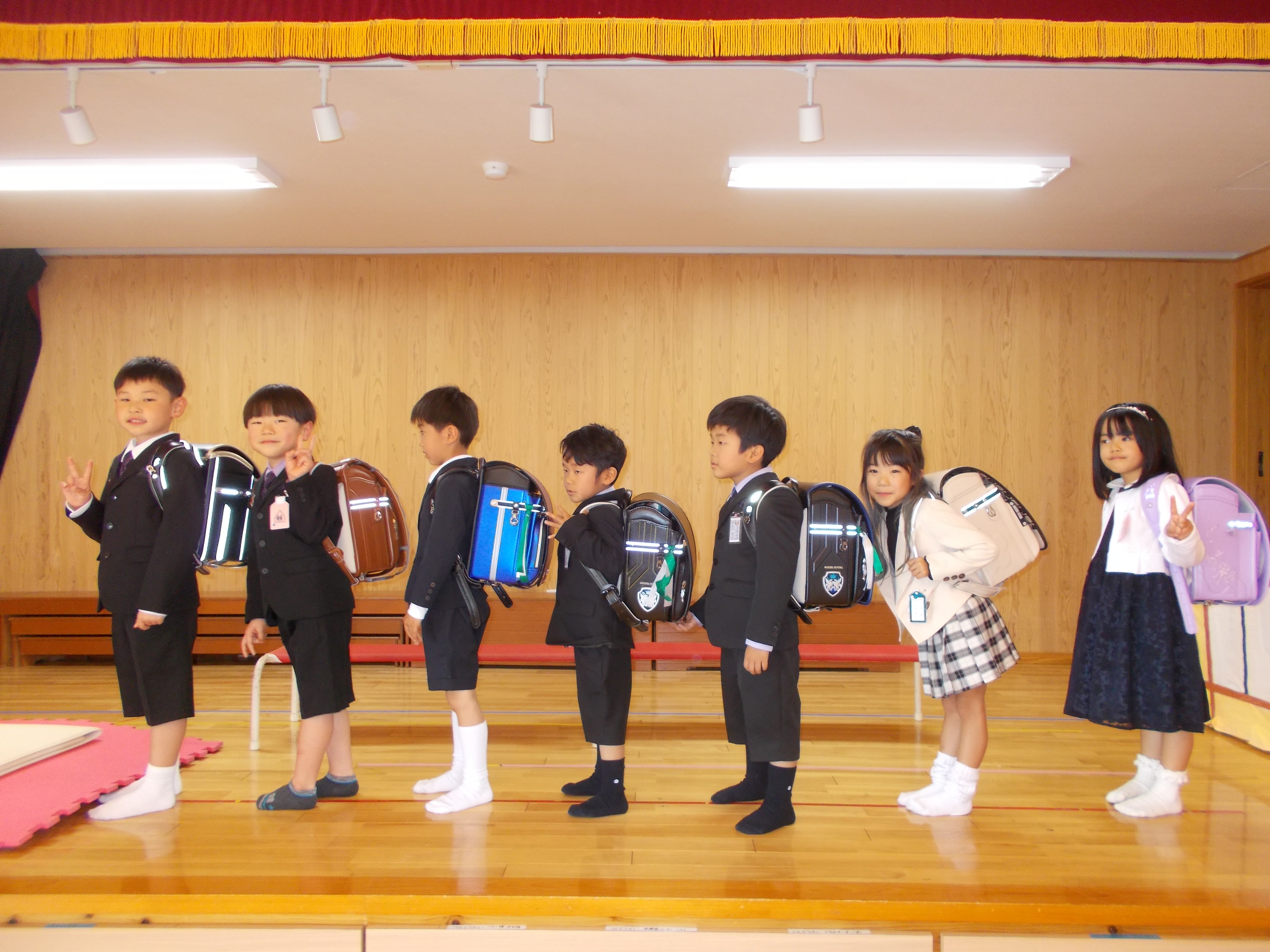 小学校入学おめでとう 4月12日(水) 小学校入学おめでとうございます。 3月に卒園した子ども達が、小学校の入学式を終えてランドセルを見せに来てくれました。 皆のランドセル姿、とてもキラキラ輝いていましたよ。 楽しい小学校生活を送って下さいね。