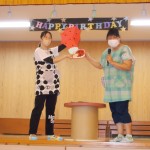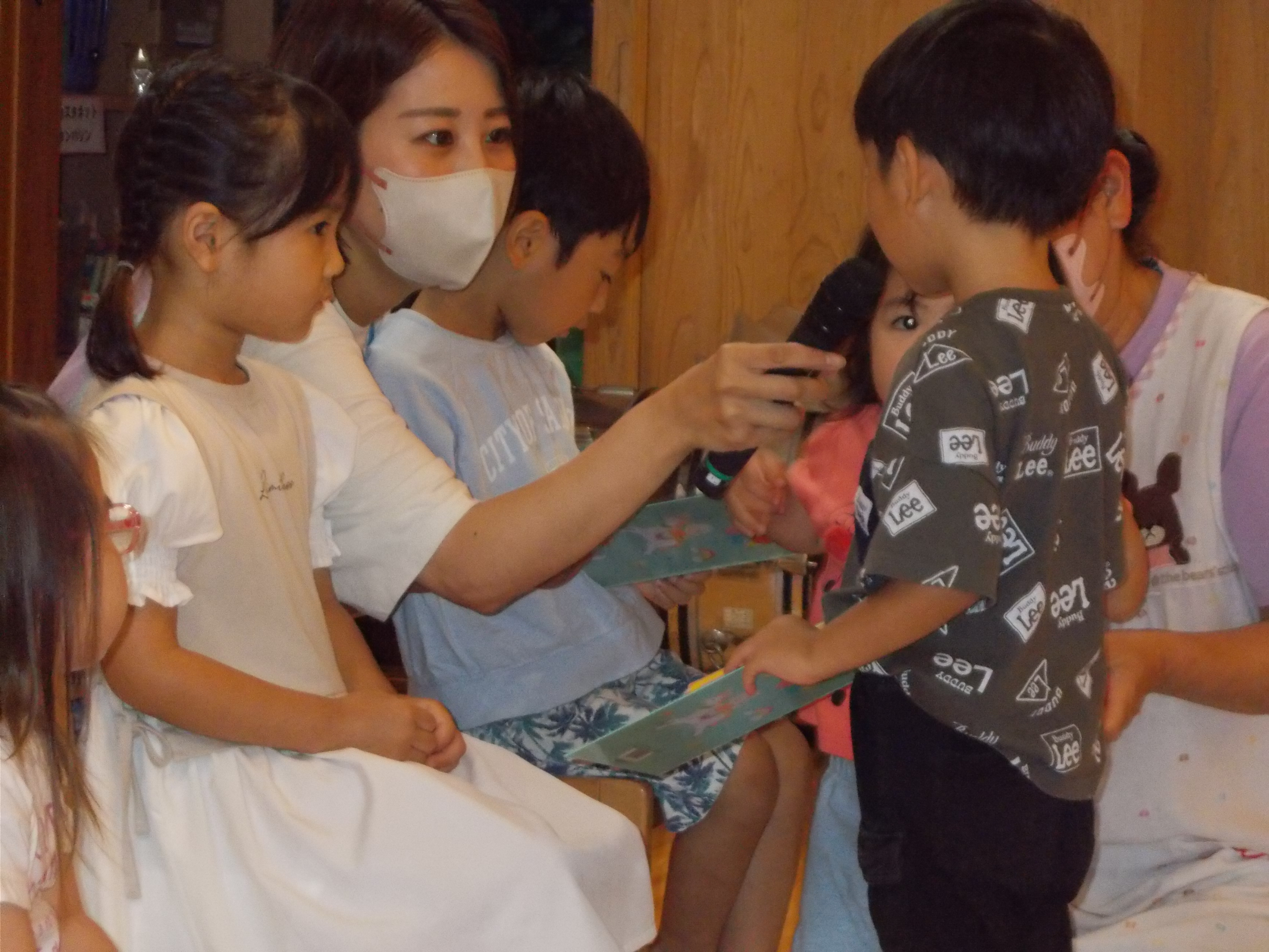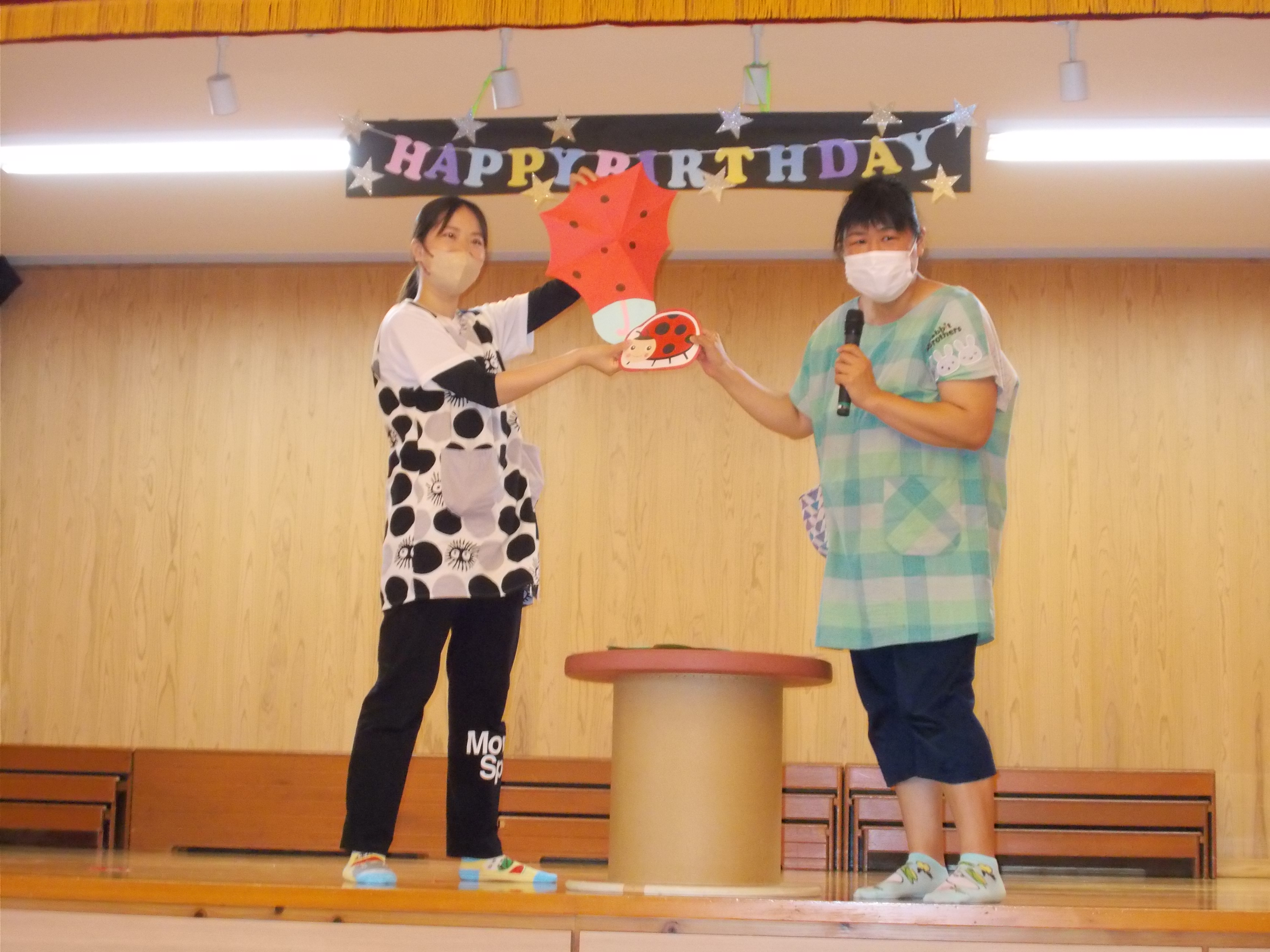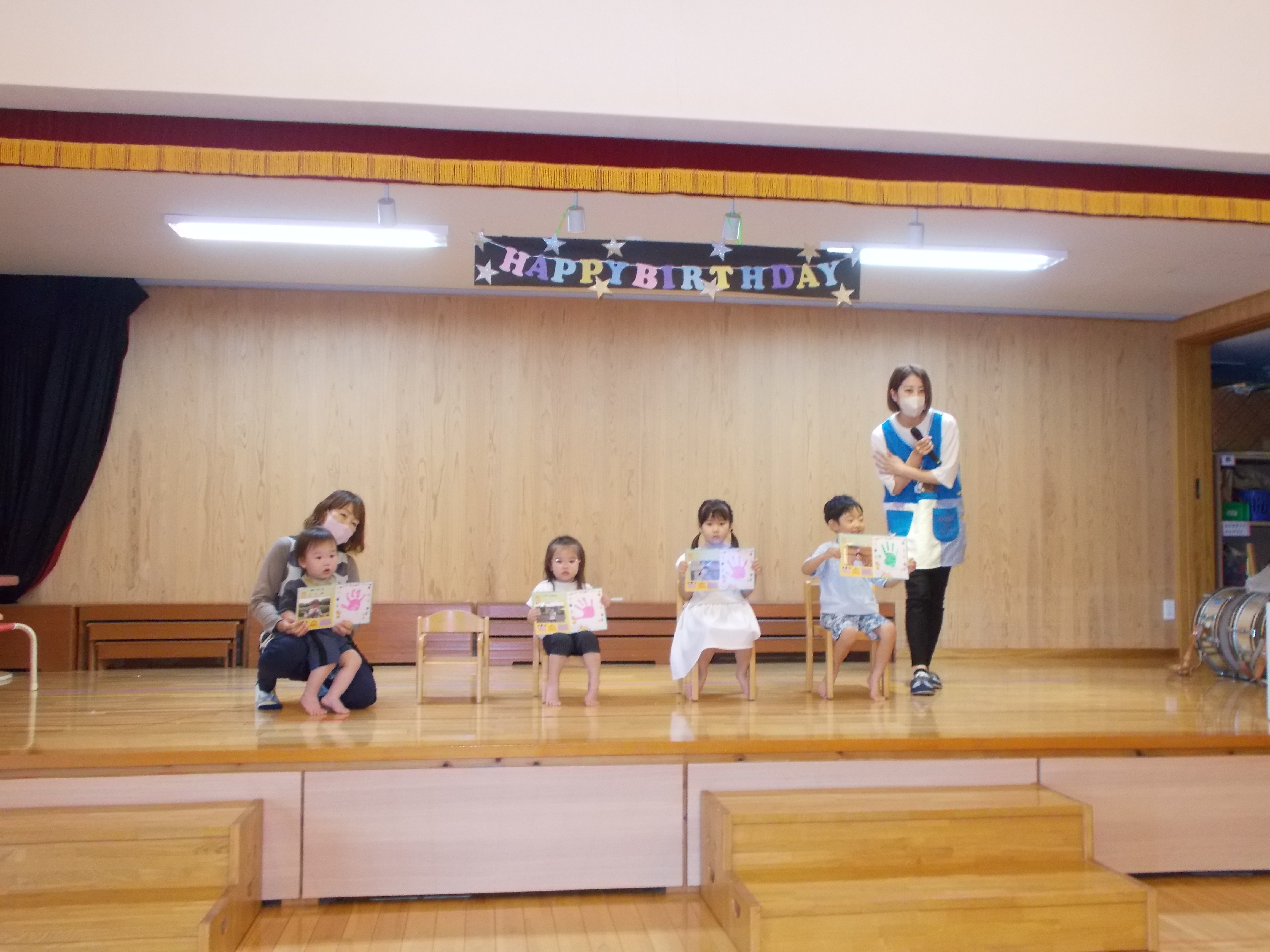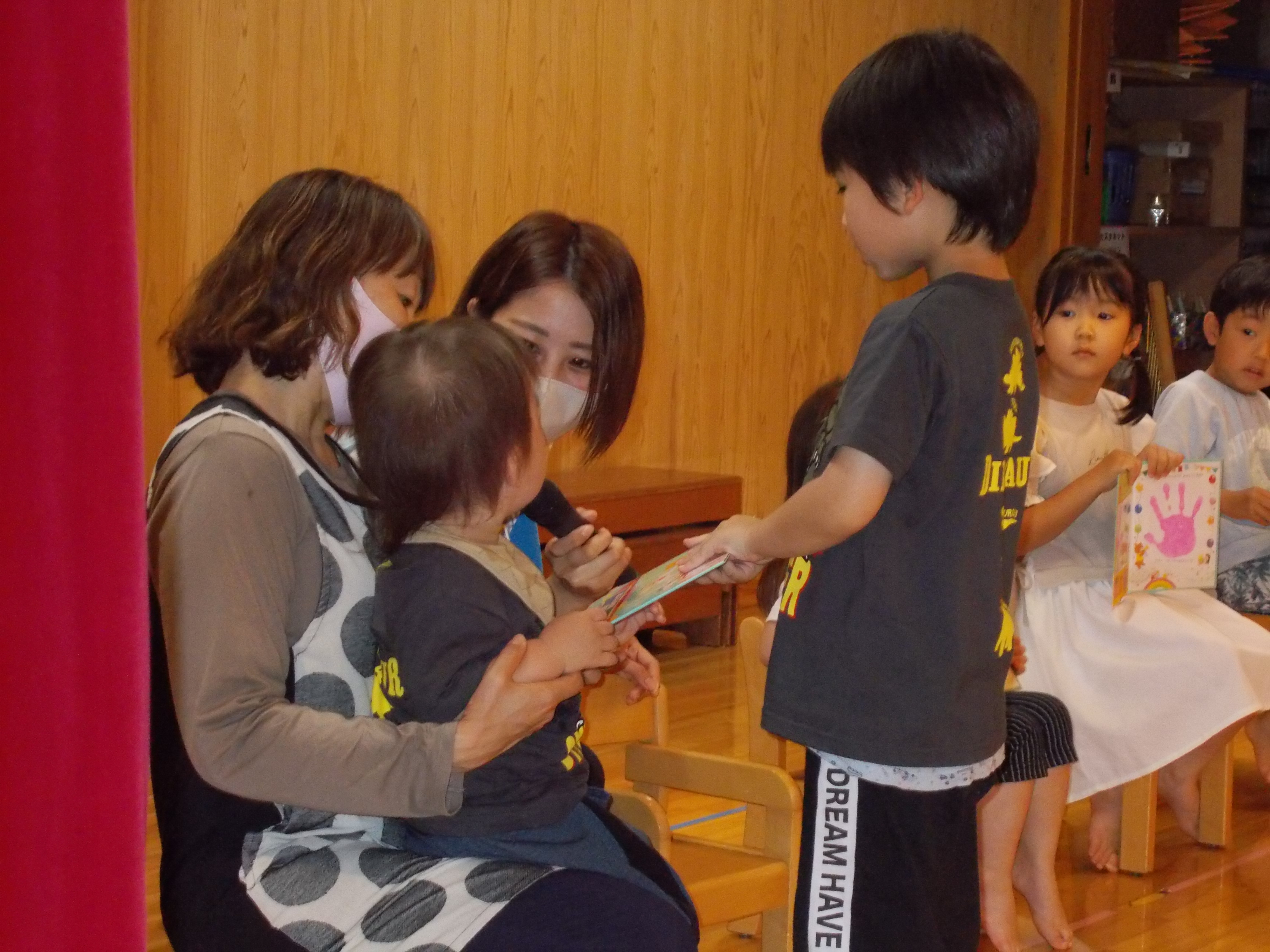 誕生カードのプレゼンターは、誕生者が決めています。兄弟姉妹の名前を呼び家族の微笑ましい姿や、大好きな友達からカードを渡されてとても嬉しそうな表情が見られました。