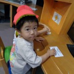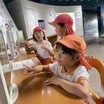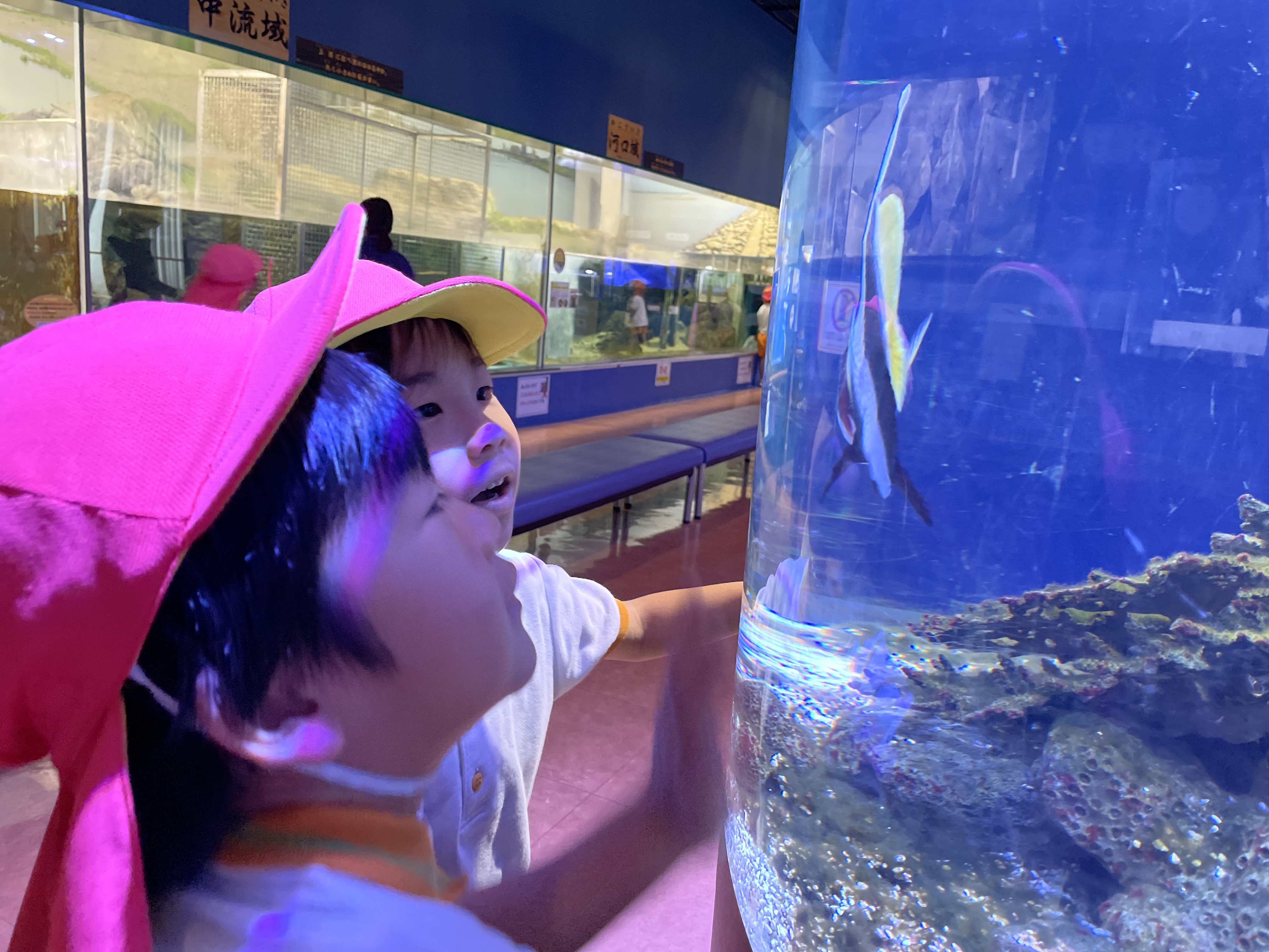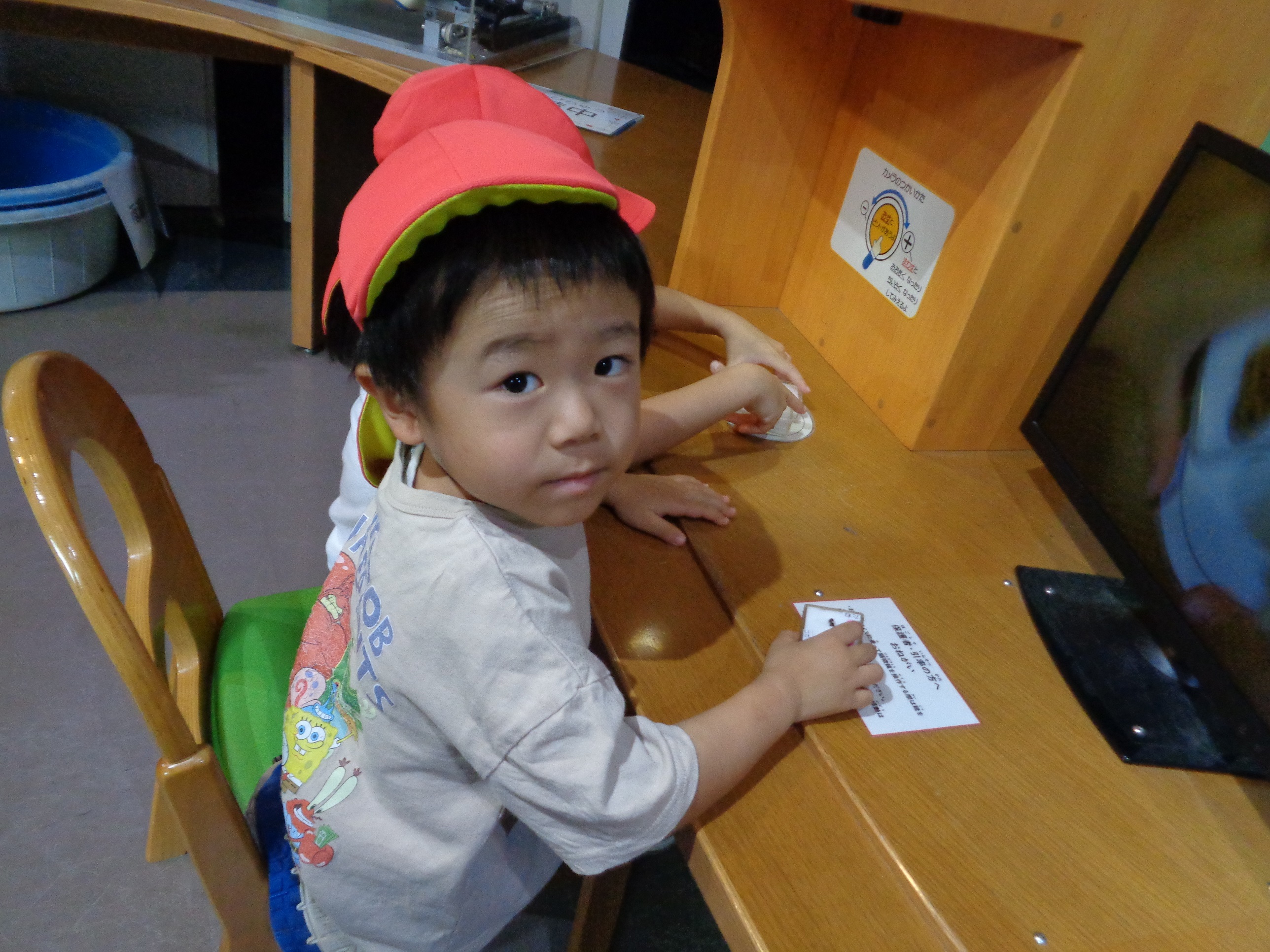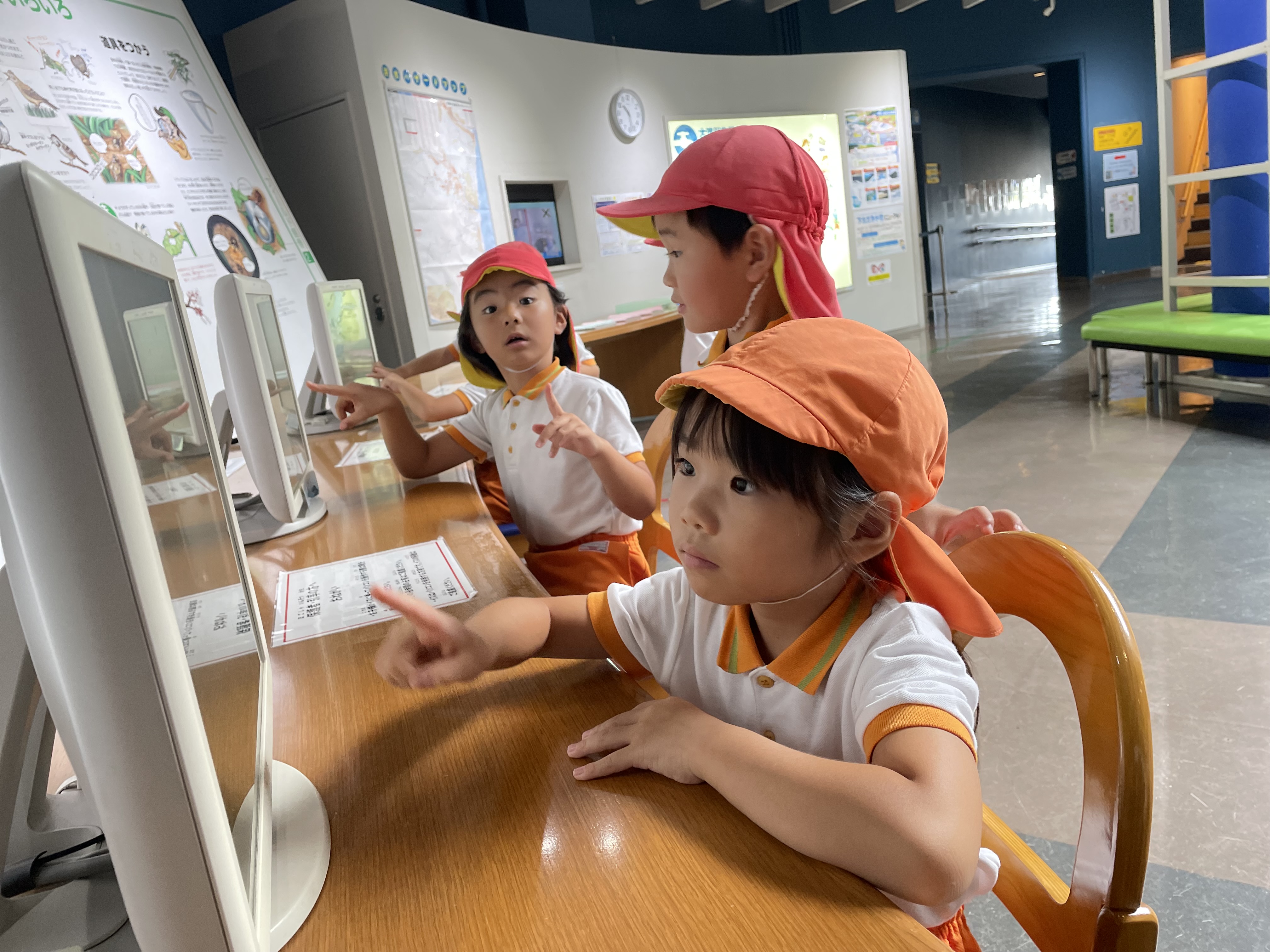 大淀川の生き物についてパソコンの画面を興味津々見つめる様子は、まるで研究者のよう…。