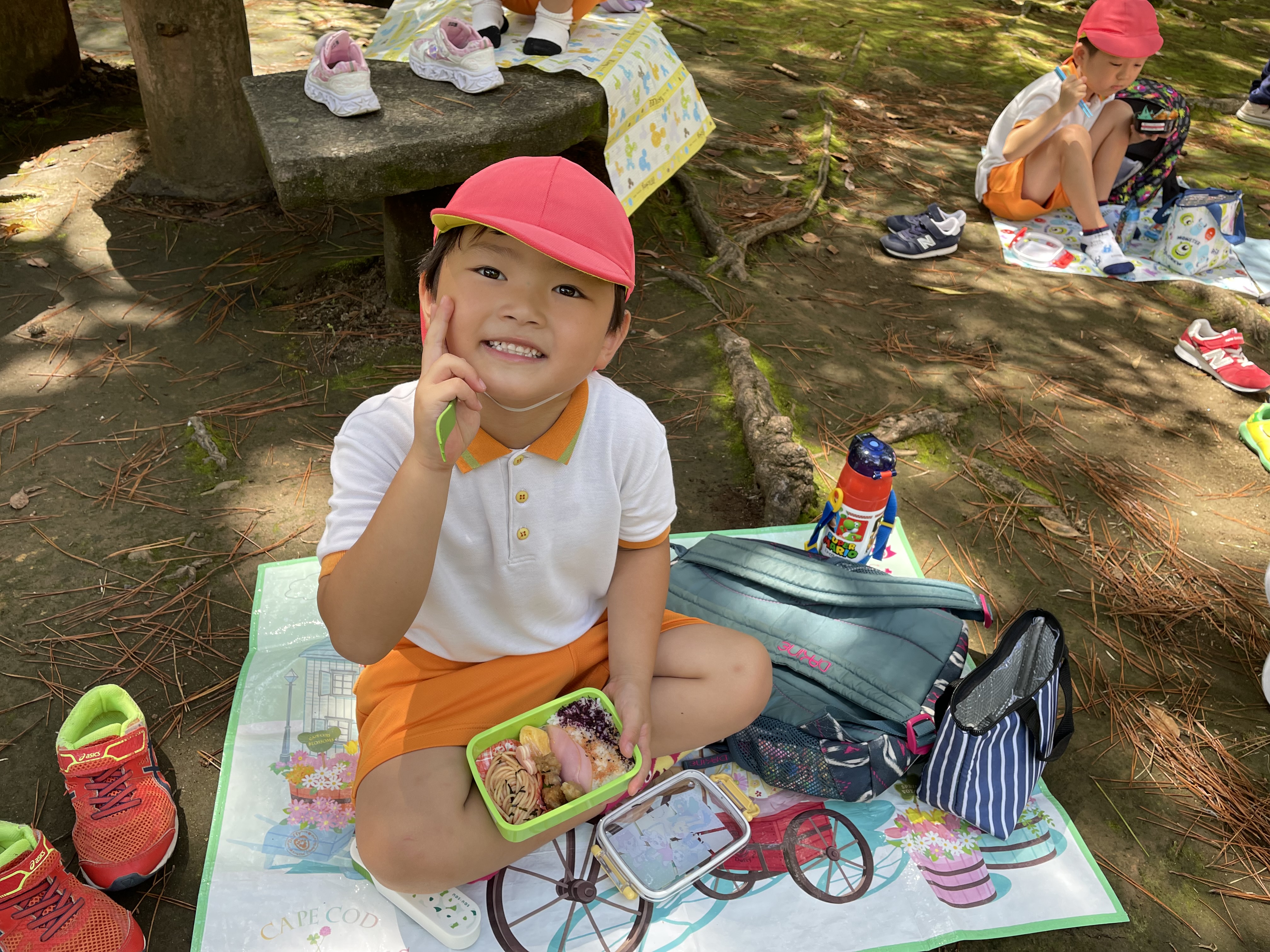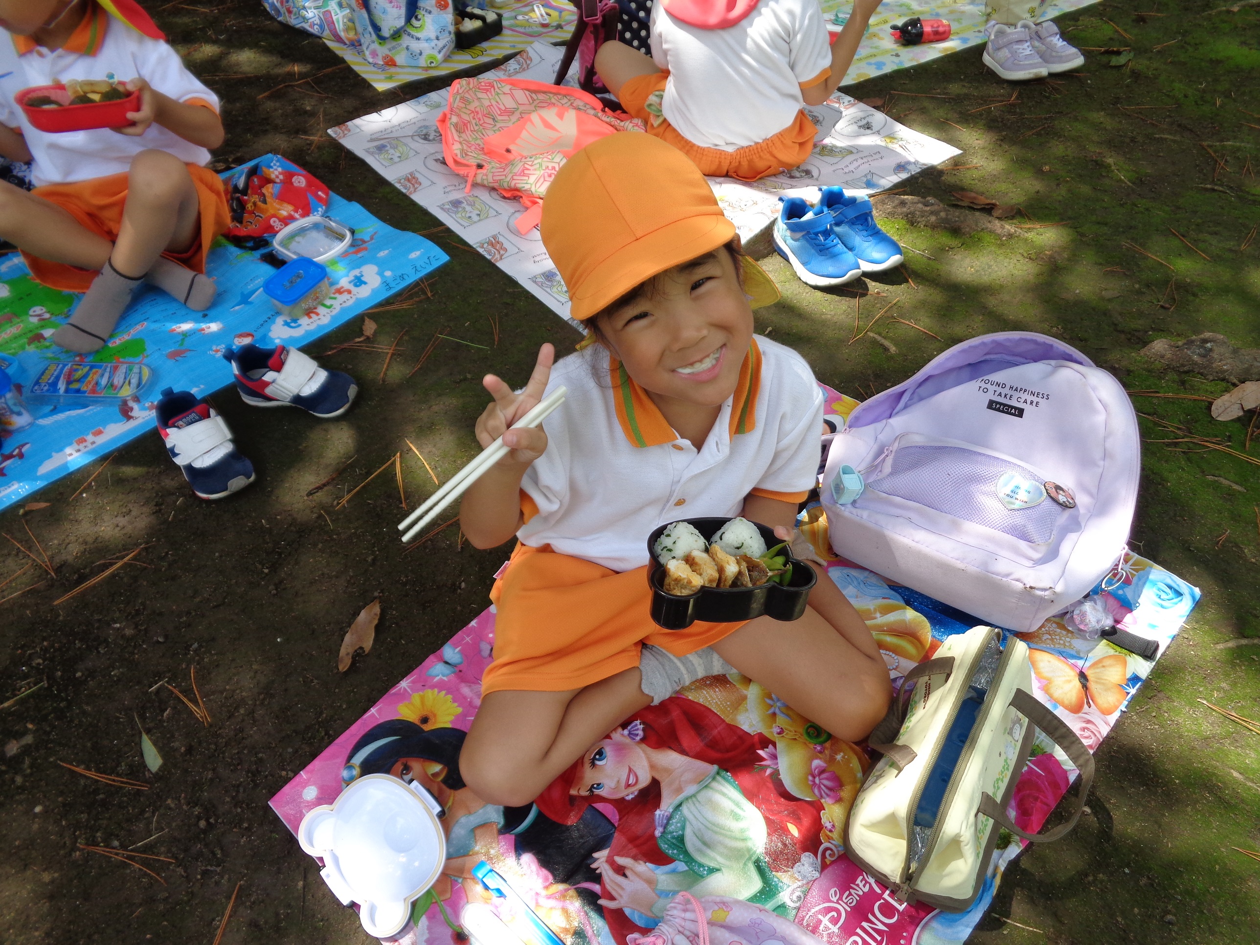 でも、愛情たっぷりのお弁当を目の前にして、口いっぱいにおにぎりを頬張る姿は、いつもの元気いっぱいのお友達でした。