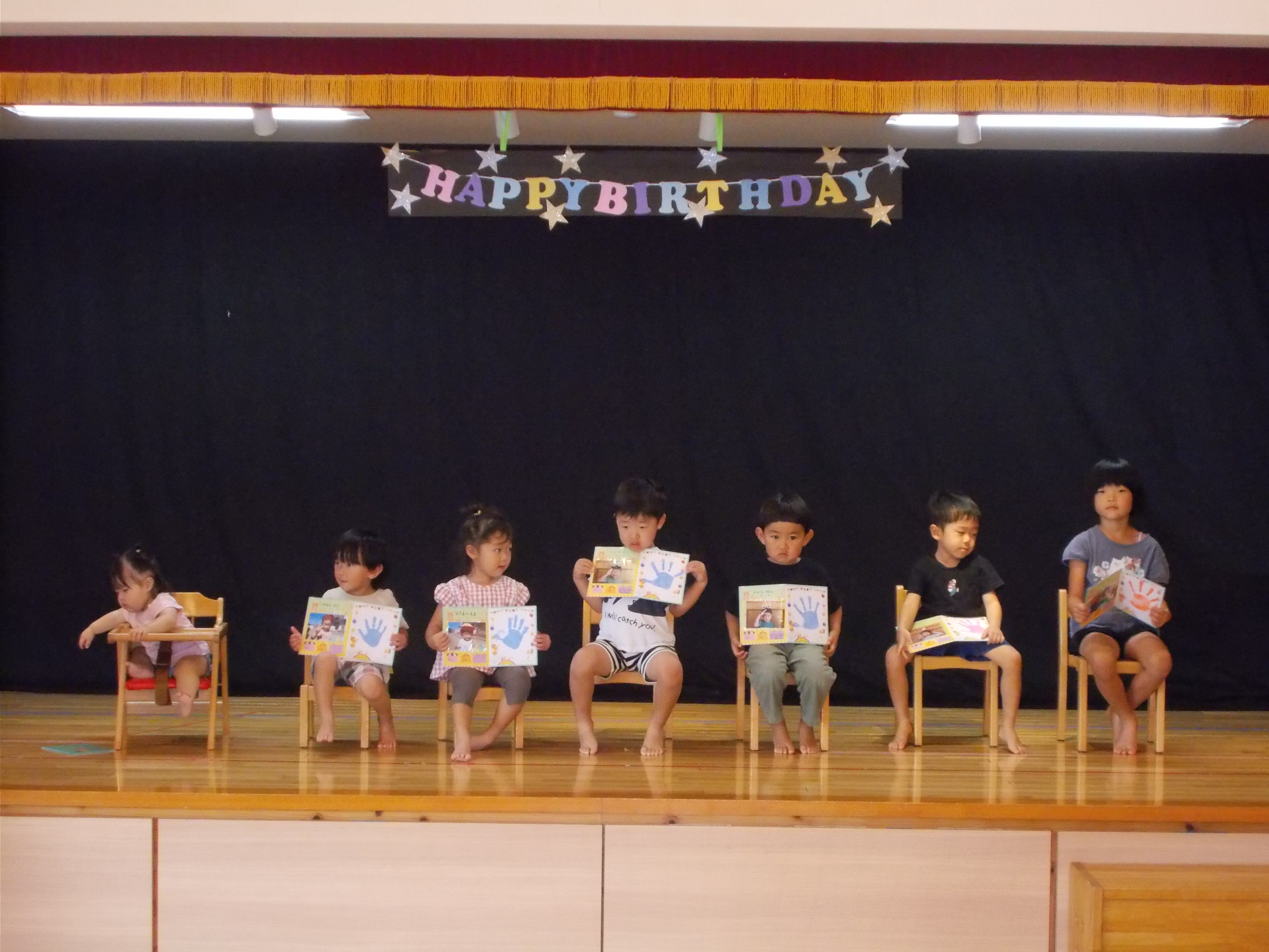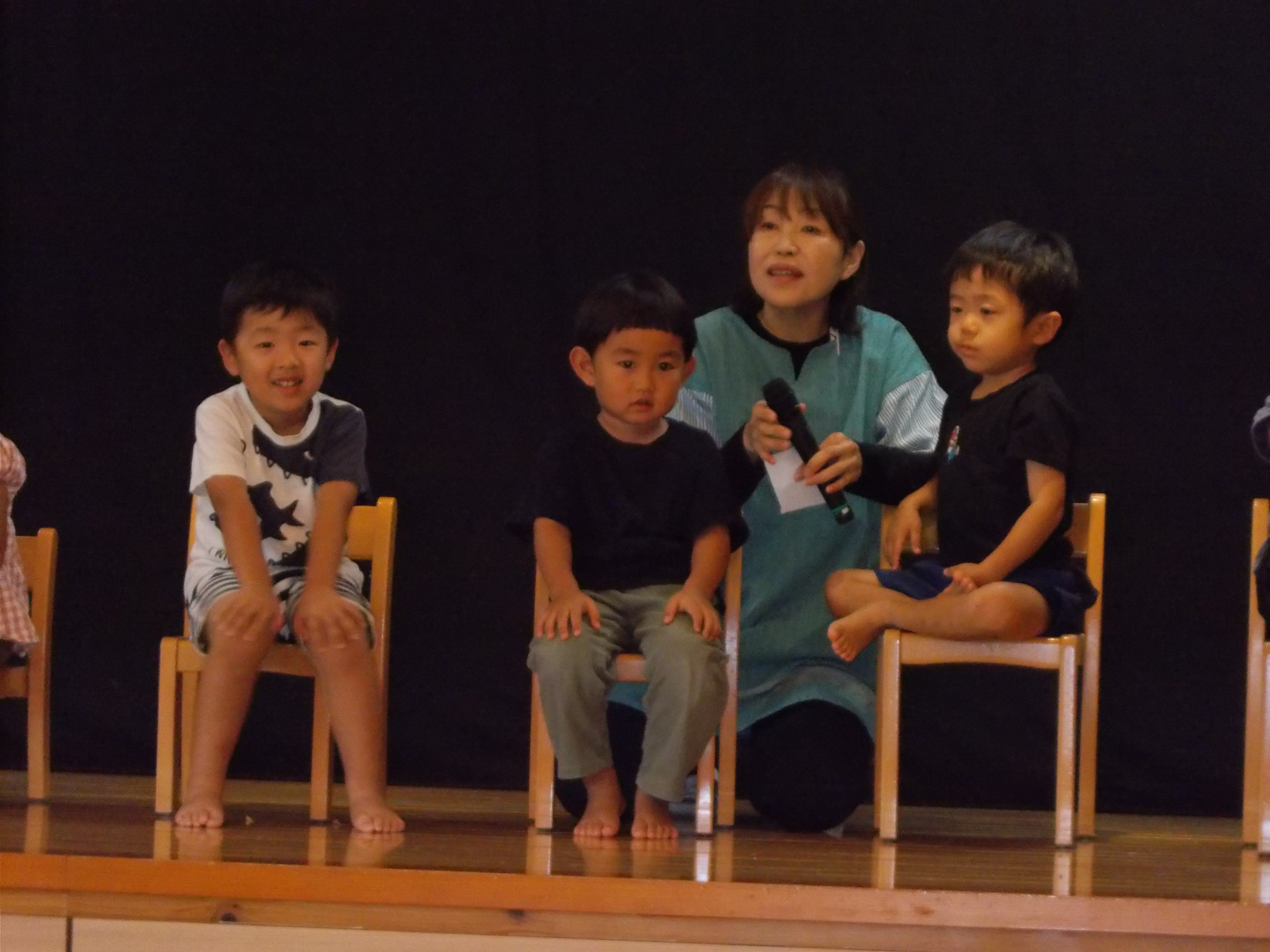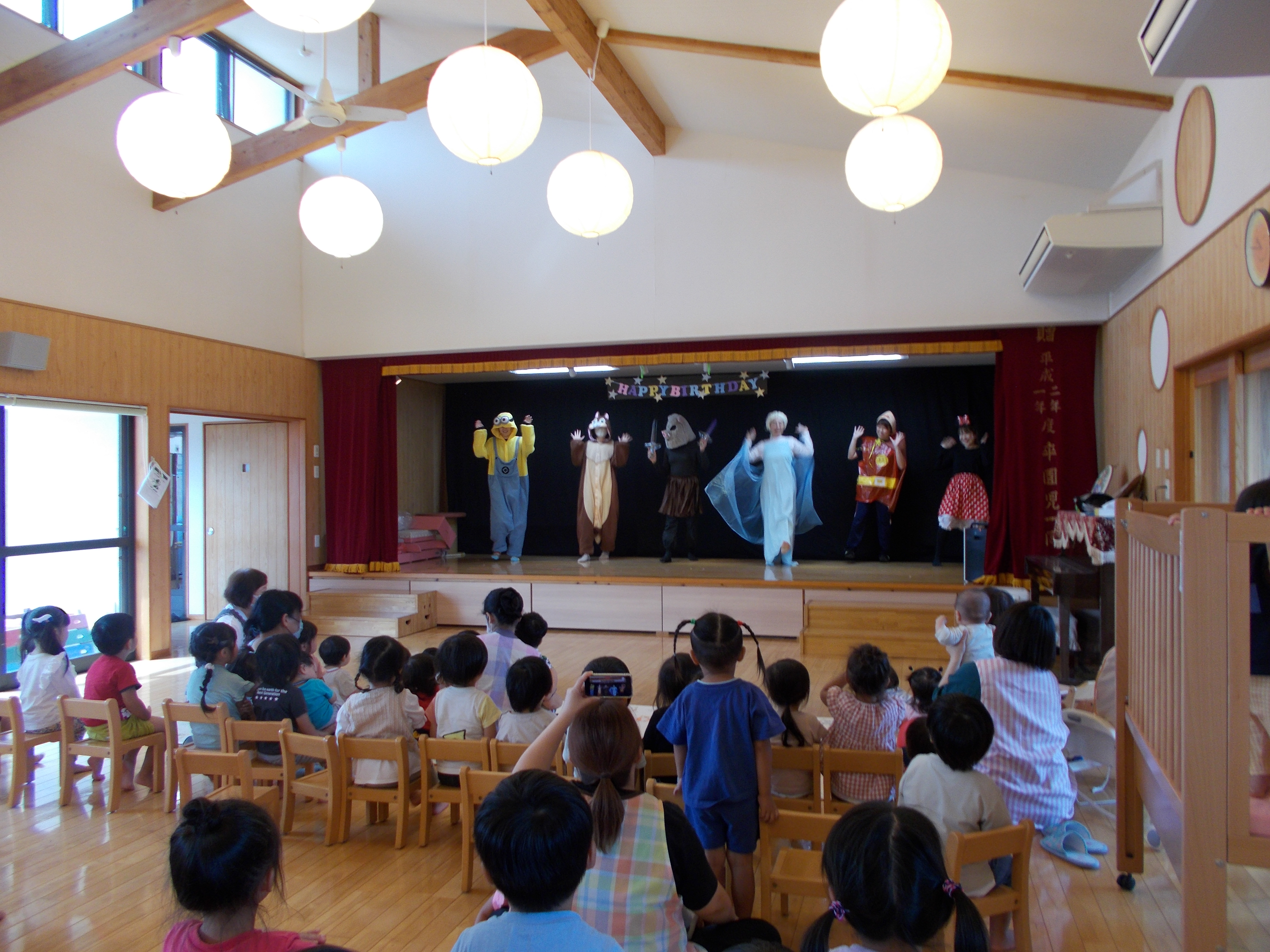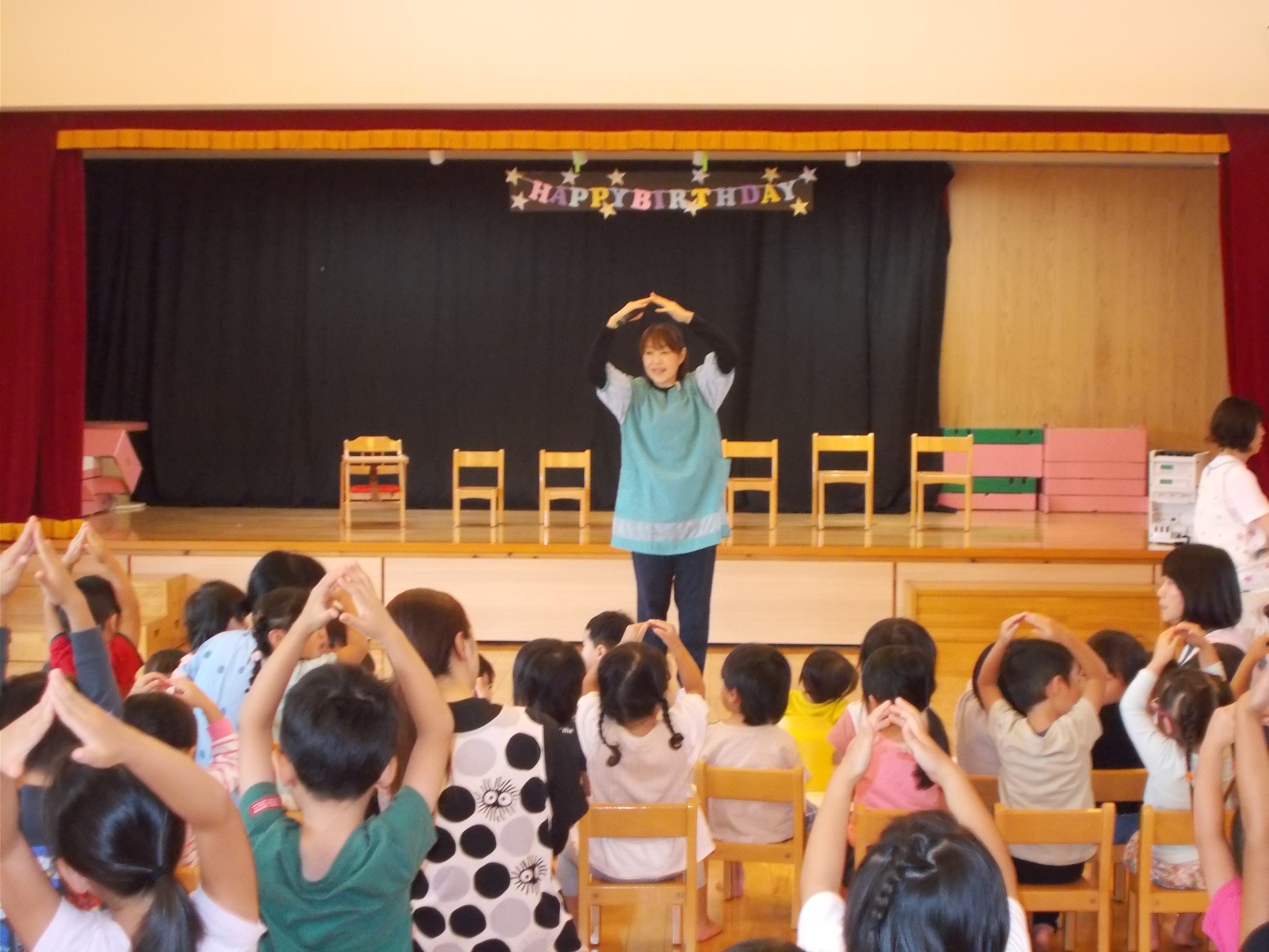 10月 誕生会 10月11日(水) 自分の名前をハッキリ言えて、インタビューにもしっかり答える姿に「オー凄い」や「さすが!」の声があがっていました。これからの成長を楽しみにしていますね。 ハロウィンにちなんで、ミニオンズやアナと雪の女王のエルサに変身した保育士がファションショーを開催してくれました。 かわいい姿に子ども達も大興奮!でした(^^♪